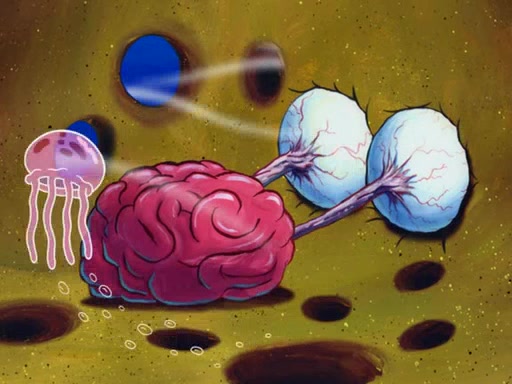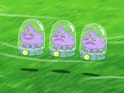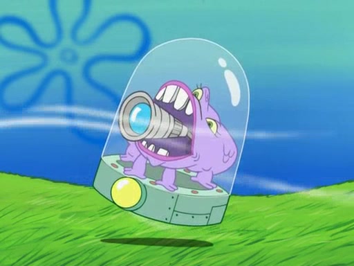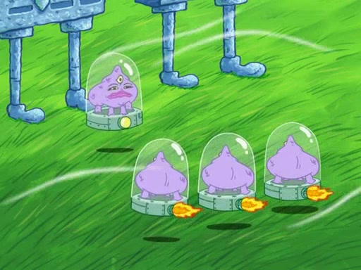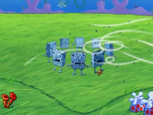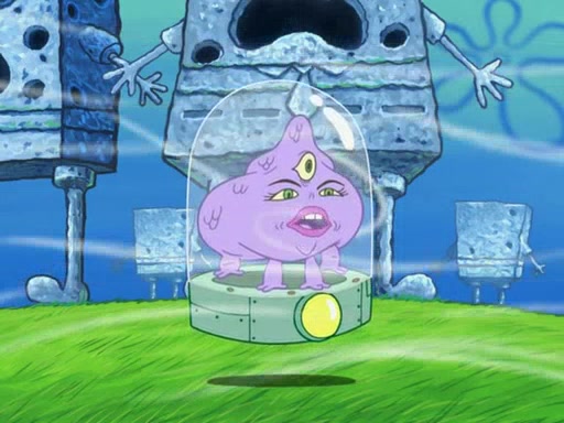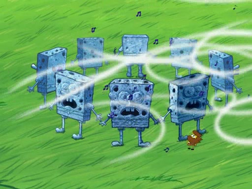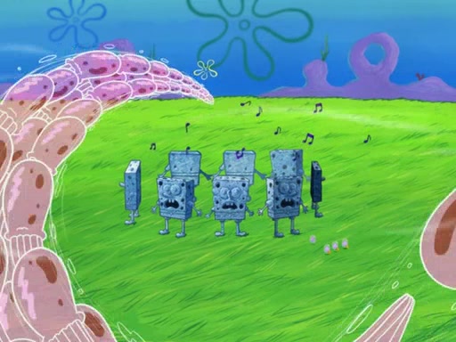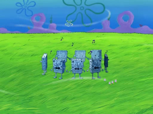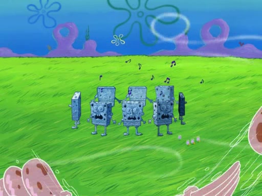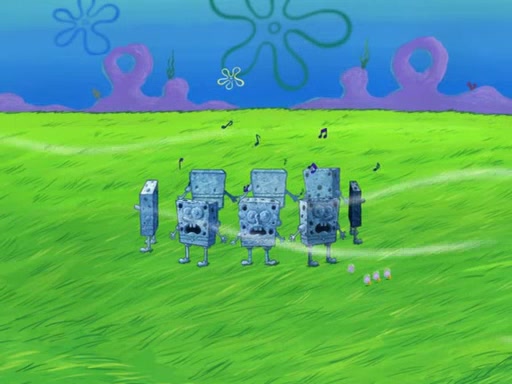 In the Future, three thousand years from now, a race of strange cyborgs (presumably of alien origin) have appeared in Jellyfish Fields. "SpongeHenge" has become a major tourist attraction with many tourists taking pictures of the sight. The cyborgs wonder who made the statues and why they were made. The only clue was that the melodious sound the wind makes as it enters the giant pores of the statues entertains and attracts jellyfish. Then SpongeBob's laugh can be heard, ending the episode.
