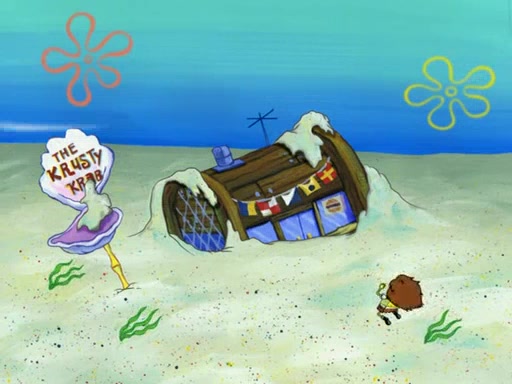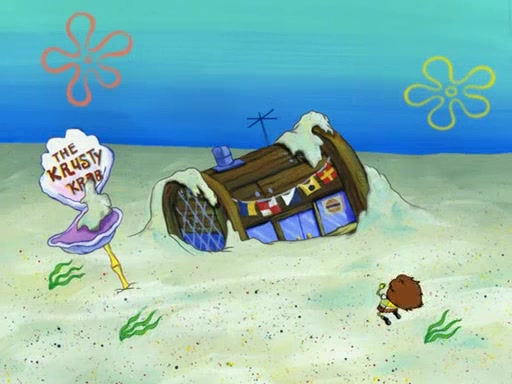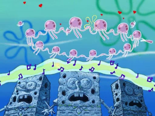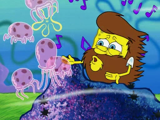 The legendary story starts with a harsh and powerful windstorm in Bikini Bottom. Nat and Shubie were leaving the Diner, and their bag of leftovers flew and hit SpongeBob in the face, causing him to look out the window. As he looks out of the window, the wind gets into his pores and makes music, attracting jellyfish.
