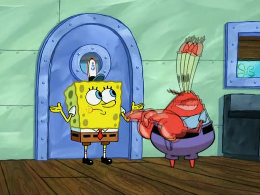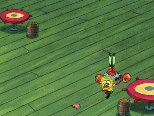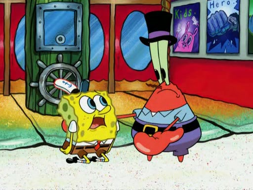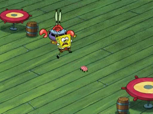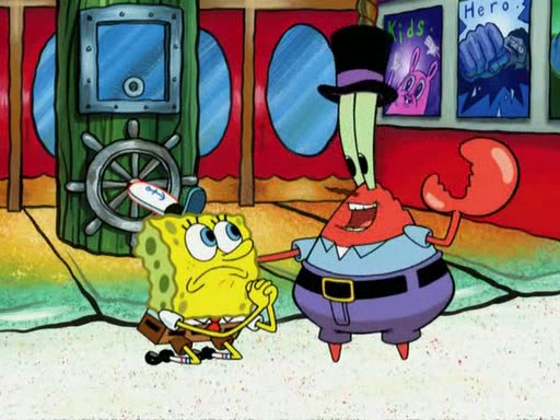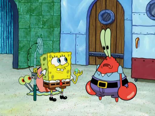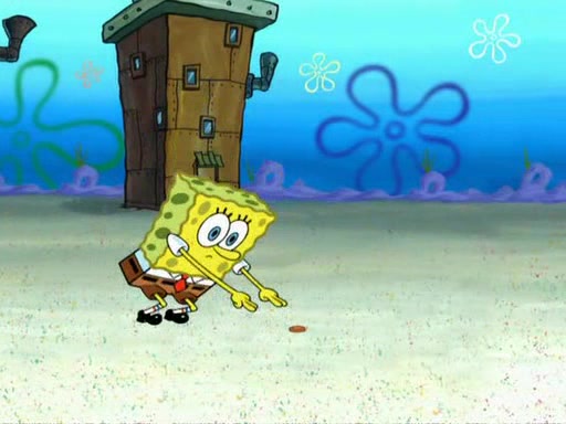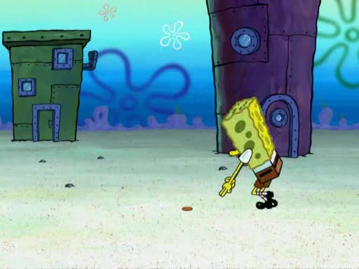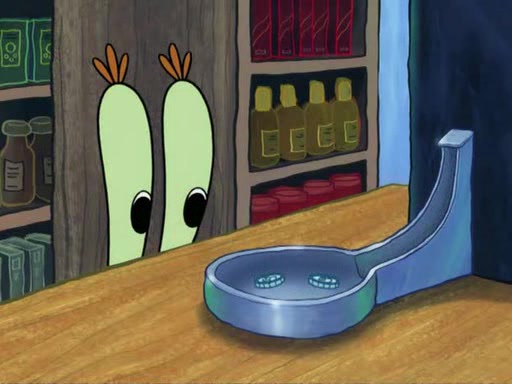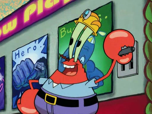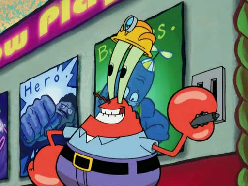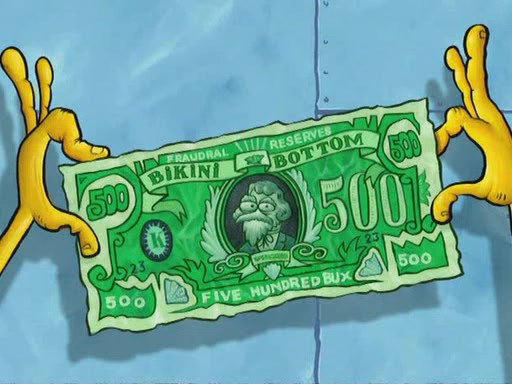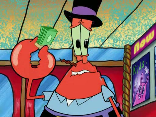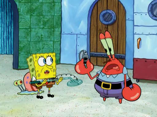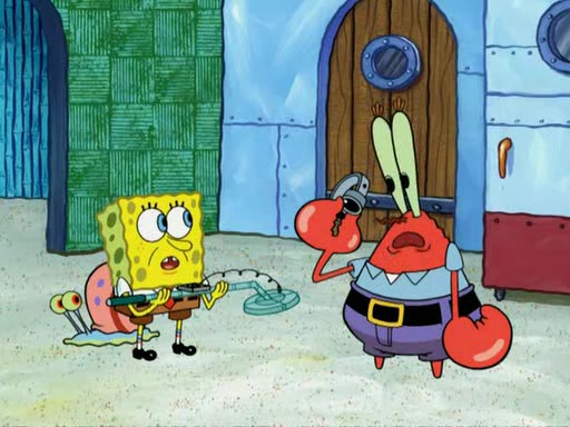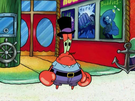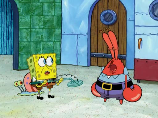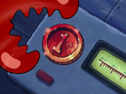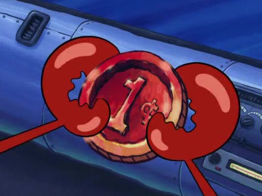 While at a discount store one day, Mr. Krabs spots SpongeBob picking something up, and Mr. Krabs thinks it is a perfectly good penny, but he decides it was just a penny, so he forces himself to forget about it. But on the way home from town, every time he sees something circular, he keeps having visions of pennies, and becomes obsessed. The next day, he asks SpongeBob if he found anything, only for SpongeBob to reply that he found a brand new day, not a penny. Time and time again he tries to crack SpongeBob to give him the penny, like having him check all his pockets, and shaking him upside down but instead gets SpongeBob's brain out, until he finally builds a theater behind the Krusty Krab, and he makes admission a penny, so he will get SpongeBob's penny, but he does not have one, so in frustration, he destroys the theater. Mr. Krabs decides he will have a show at the Krusty Krab, to show how he does not have a penny, but SpongeBob still does not have one, so Mr. Krabs breaks. Later, he breaks into SpongeBob's house with a metal detector to find the penny, and when SpongeBob comes in, he shows him it was not a penny, but a chewed up piece of gum, for his gum collection. Mr. Krabs leaves and SpongeBob discovers that it is a five hundred dollar bill. Meanwhile, Mr. Krabs is still digging for the penny, all over Bikini Bottom.