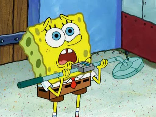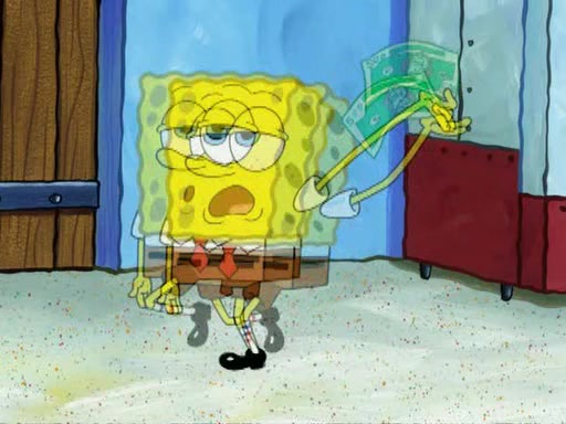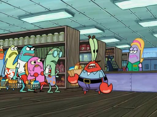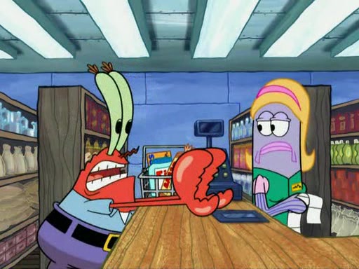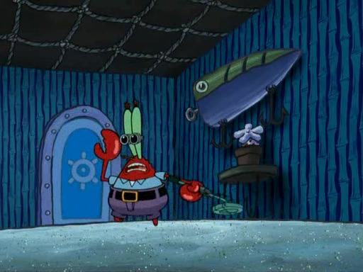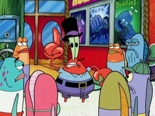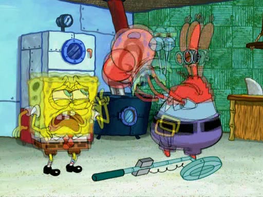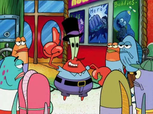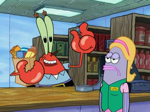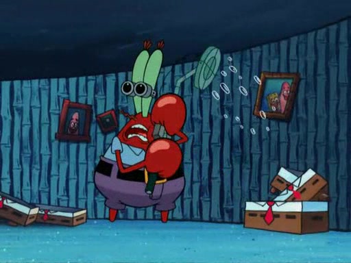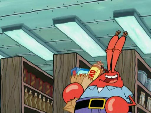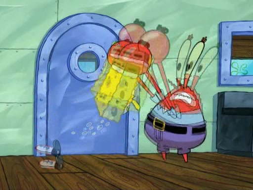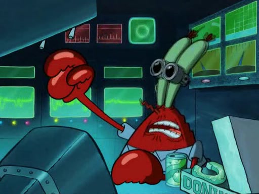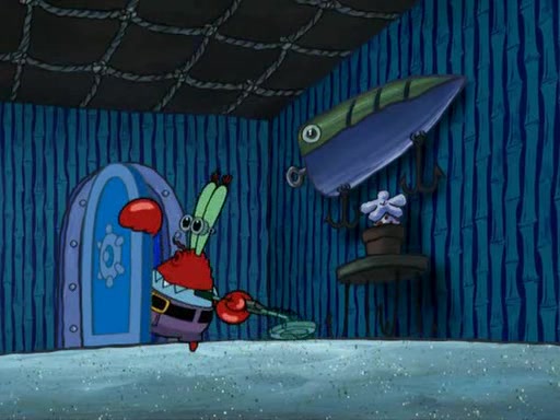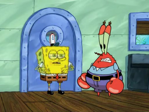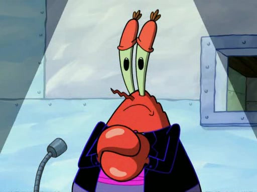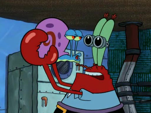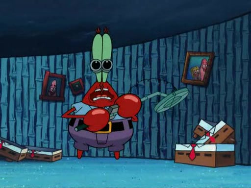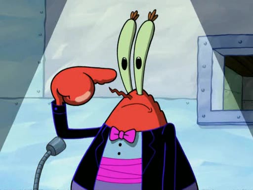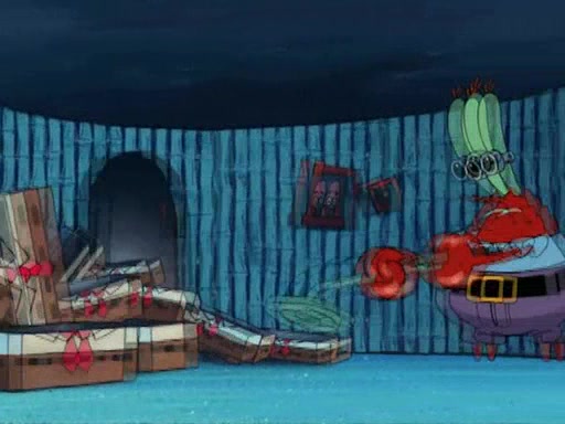 While at a discount store one day, Mr. Krabs spots SpongeBob picking something up, and Mr. Krabs thinks it is a perfectly good penny, but he decides it was just a penny, so he forces himself to forget about it. But on the way home from town, every time he sees something circular, he keeps having visions of pennies, and becomes obsessed. The next day, he asks SpongeBob if he found anything, only for SpongeBob to reply that he found a brand new day, not a penny. Time and time again he tries to crack SpongeBob to give him the penny, like having him check all his pockets, and shaking him upside down but instead gets SpongeBob's brain out, until he finally builds a theater behind the Krusty Krab, and he makes admission a penny, so he will get SpongeBob's penny, but he does not have one, so in frustration, he destroys the theater. Mr. Krabs decides he will have a show at the Krusty Krab, to show how he does not have a penny, but SpongeBob still does not have one, so Mr. Krabs breaks. Later, he breaks into SpongeBob's house with a metal detector to find the penny, and when SpongeBob comes in, he shows him it was not a penny, but a chewed up piece of gum, for his gum collection. Mr. Krabs leaves and SpongeBob discovers that it is a five hundred dollar bill. Meanwhile, Mr. Krabs is still digging for the penny, all over Bikini Bottom.
