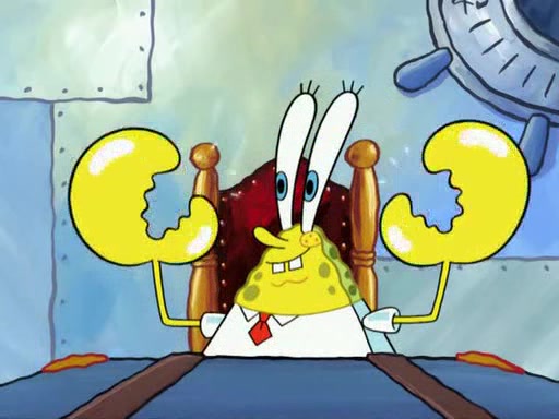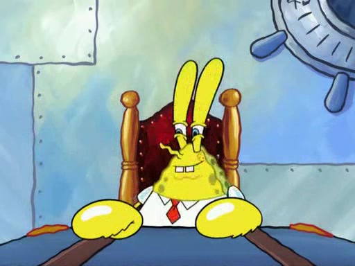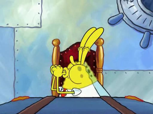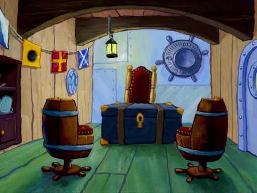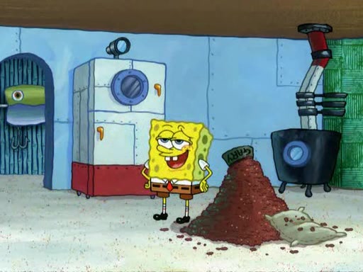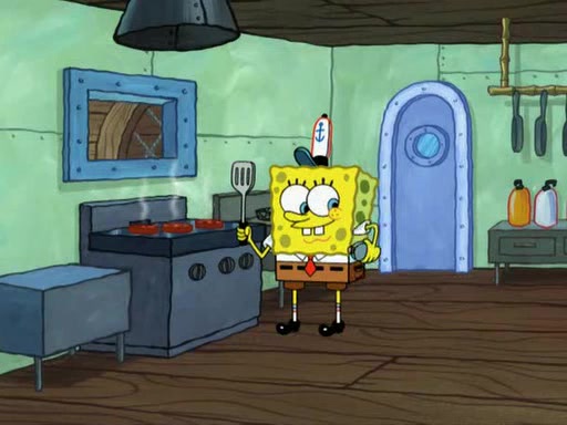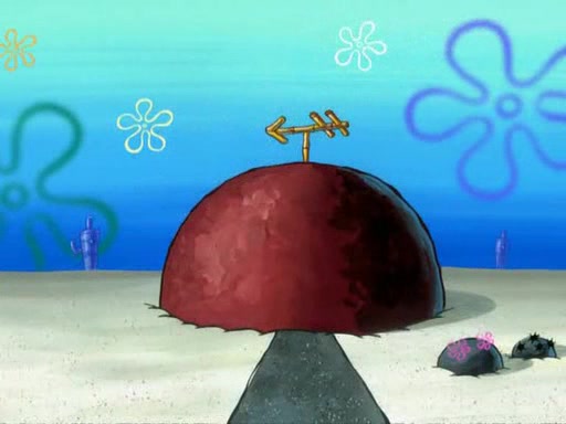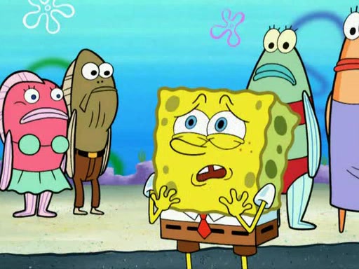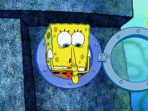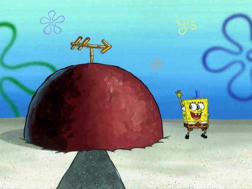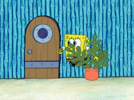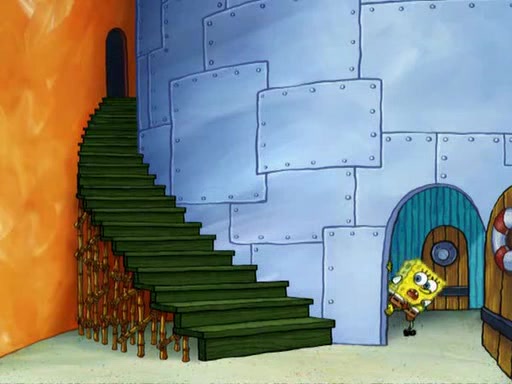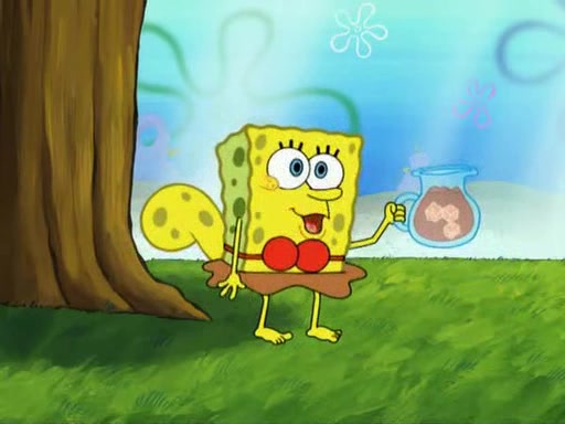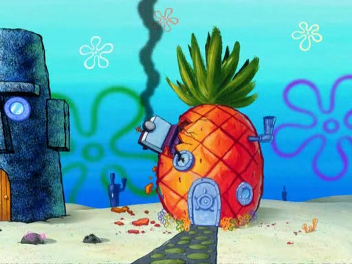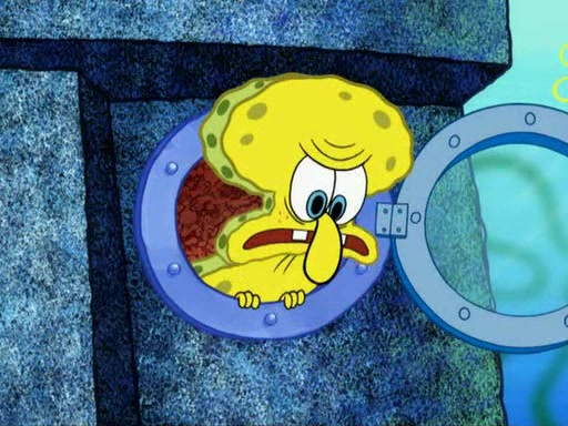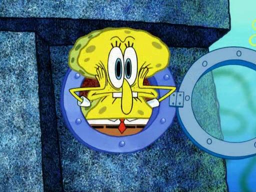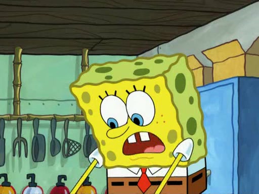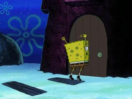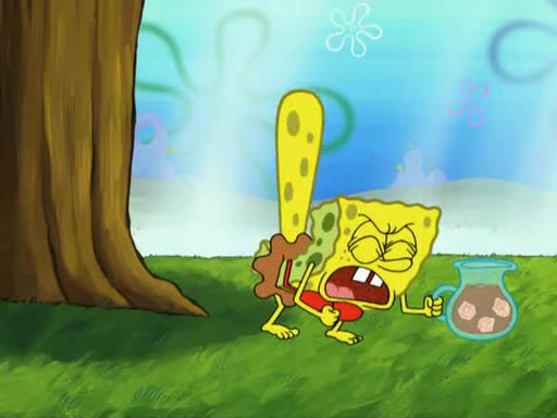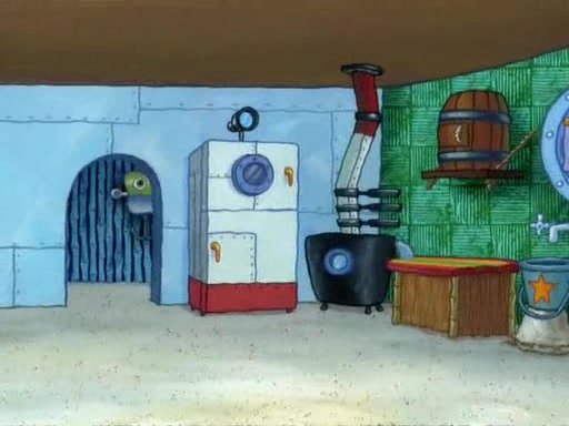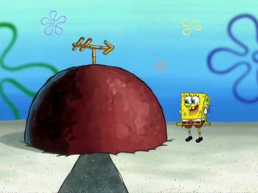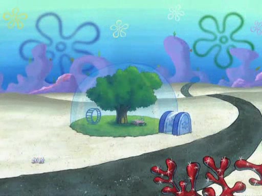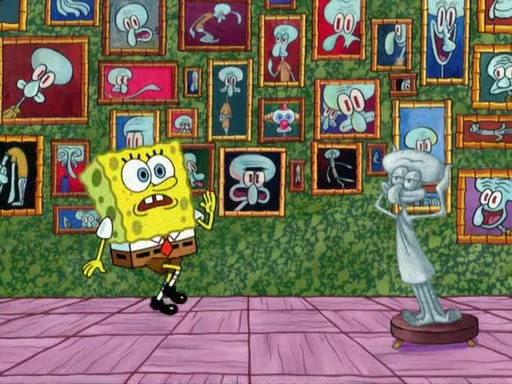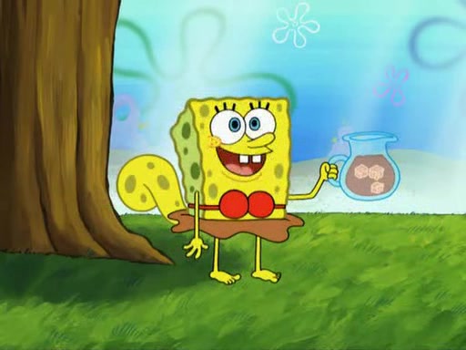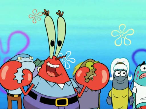 When the others don't return, SpongeBob then decides to live out everyone's lives for them. He makes a bubble version of himself in his front yard, then runs to the top floor of Squidward's house, pretending to be Squidward yelling at SpongeBob for making too much noise. SpongeBob then runs to the Krusty Krab, imitating Squidward and Mr. Krabs. He imitates Sandy at the Treedome and Patrick at the Rock respectively before running to the boating school and pretending to be Mrs. Puff.