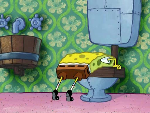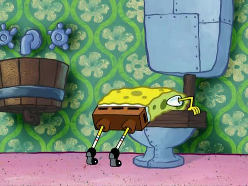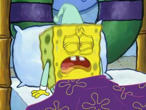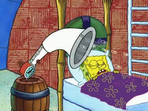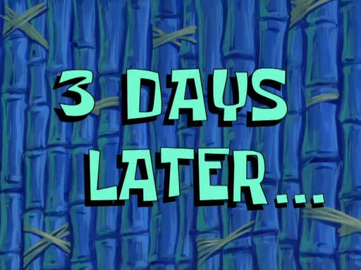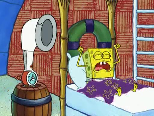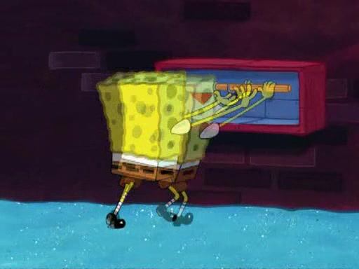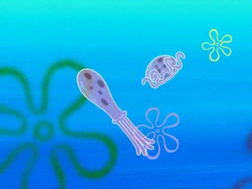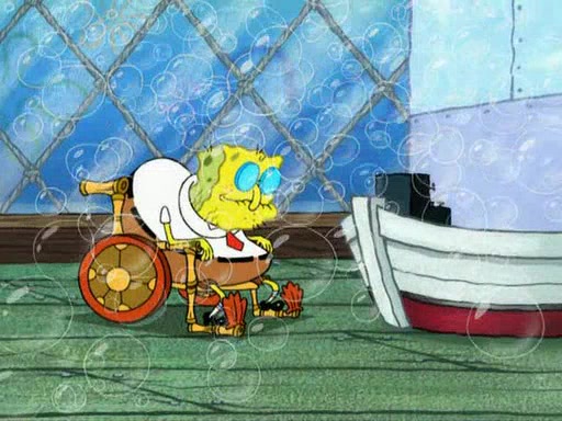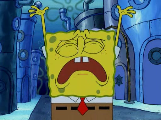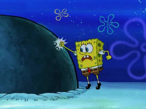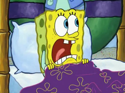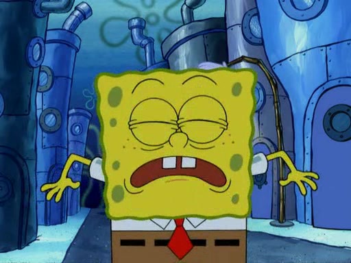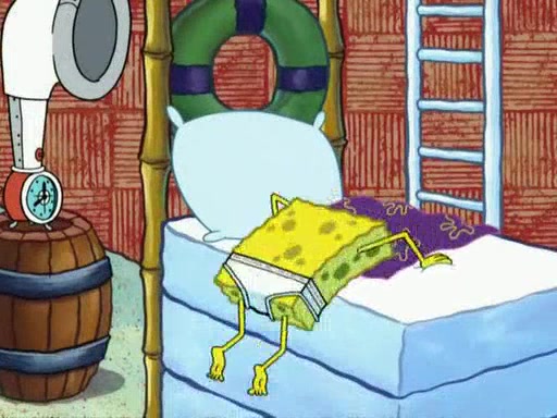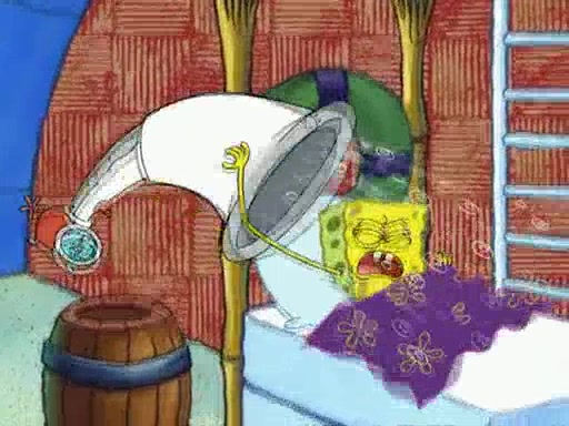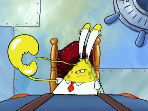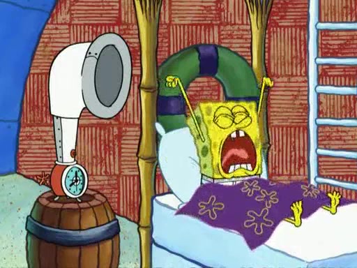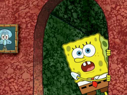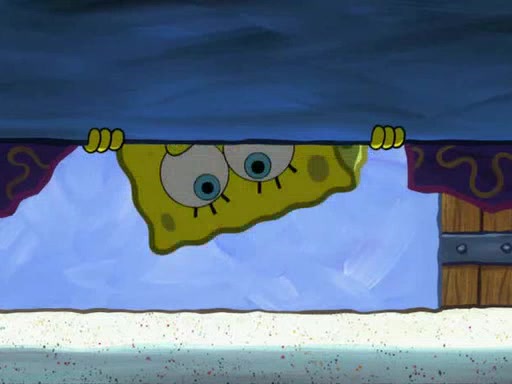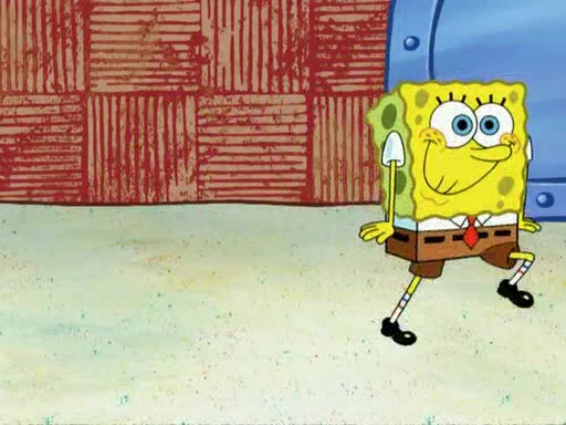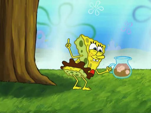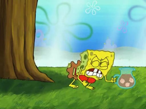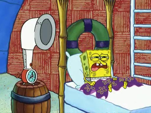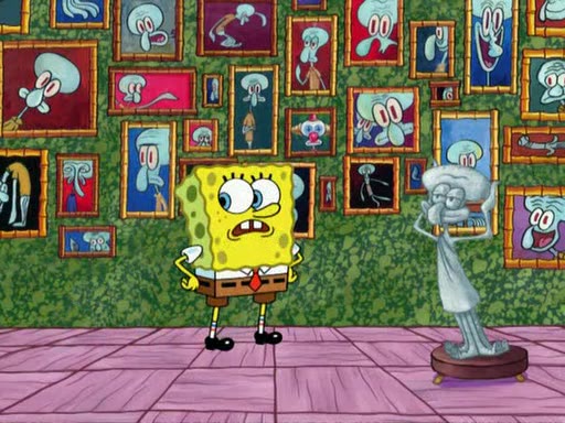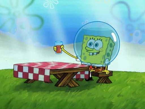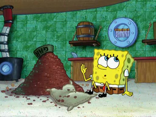 When the others don't return, SpongeBob then decides to live out everyone's lives for them. He makes a bubble version of himself in his front yard, then runs to the top floor of Squidward's house, pretending to be Squidward yelling at SpongeBob for making too much noise. SpongeBob then runs to the Krusty Krab, imitating Squidward and Mr. Krabs. He imitates Sandy at the Treedome and Patrick at the Rock respectively before running to the boating school and pretending to be Mrs. Puff.