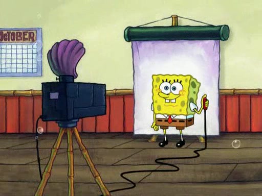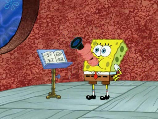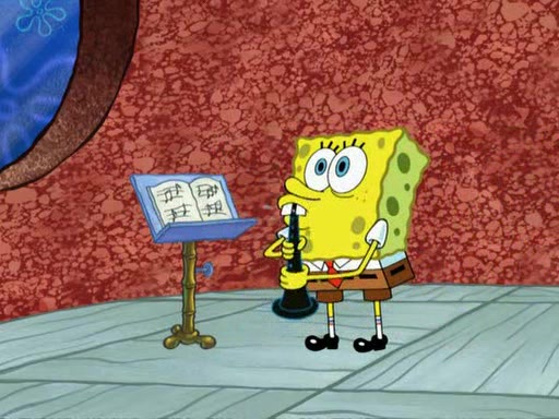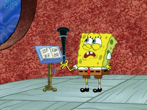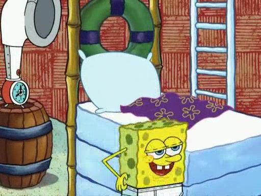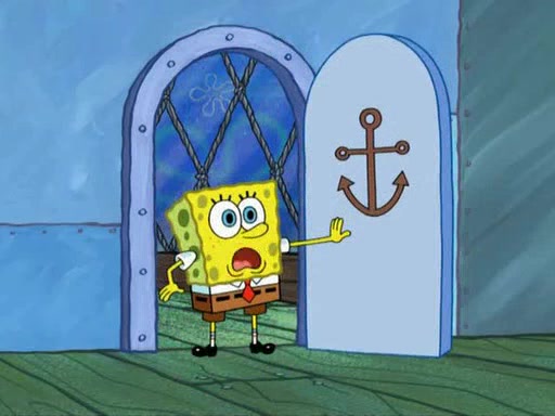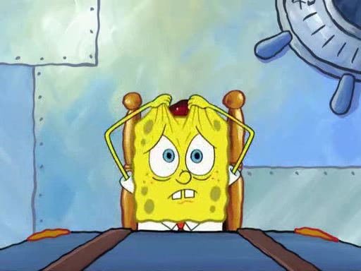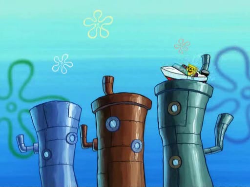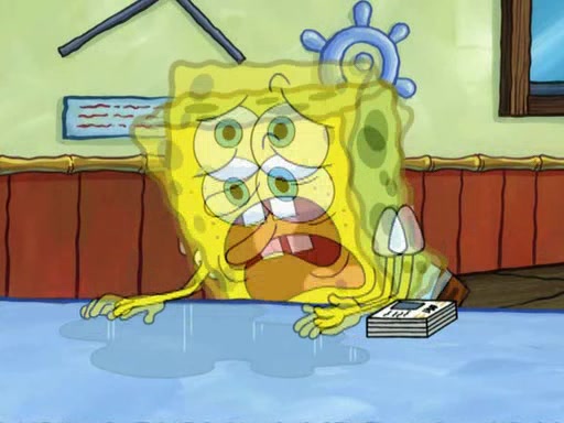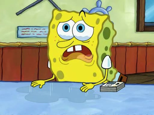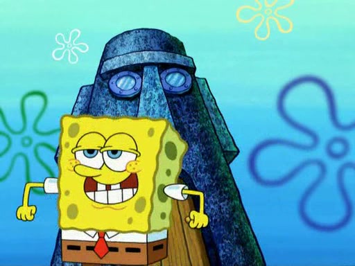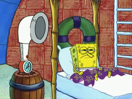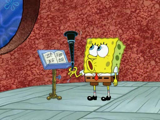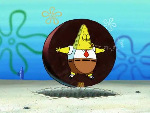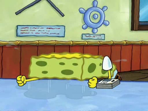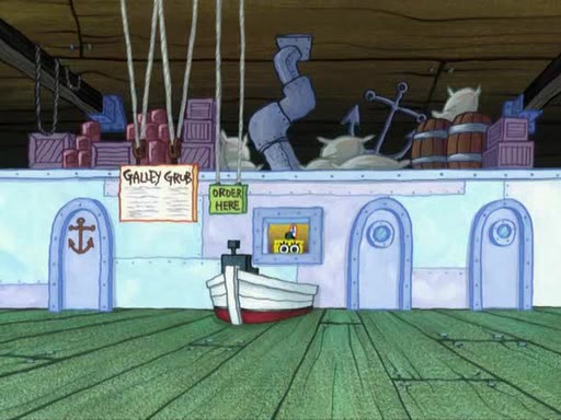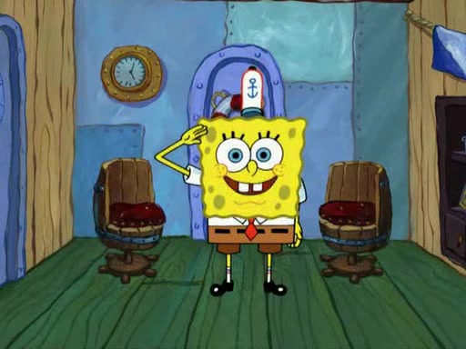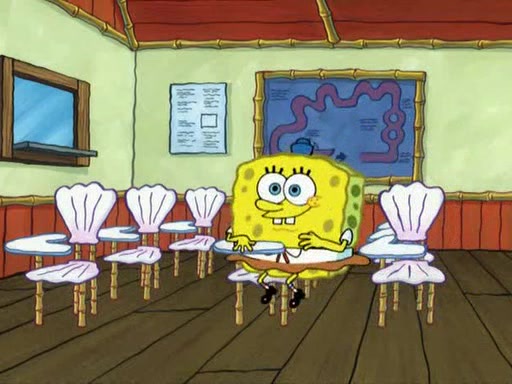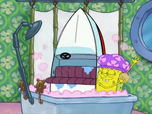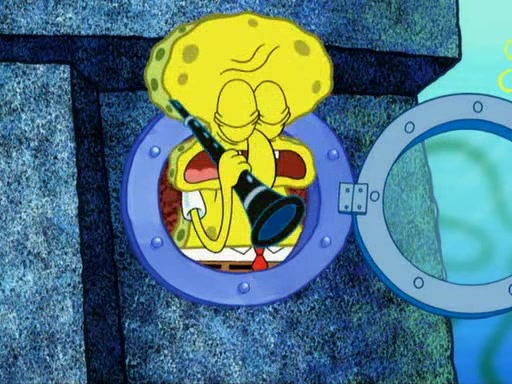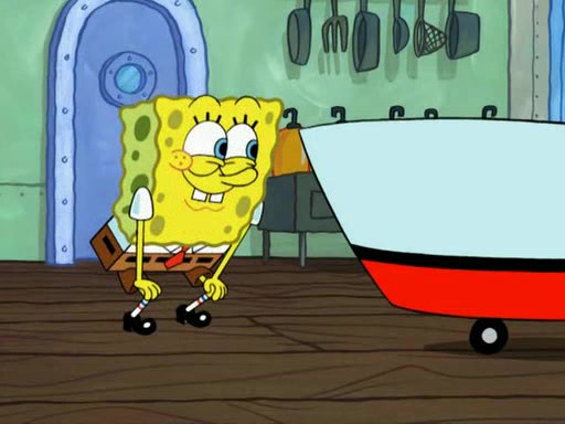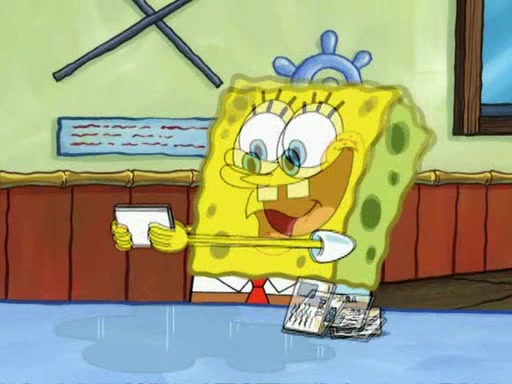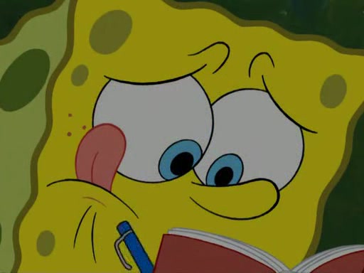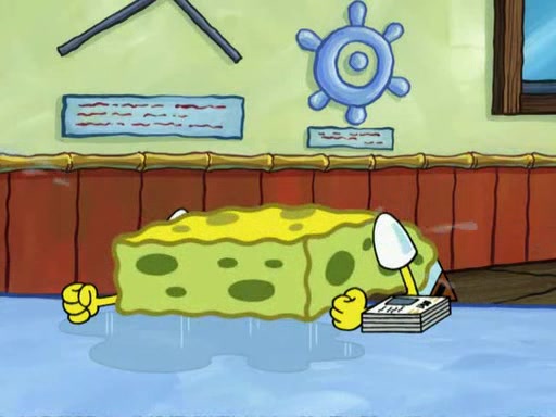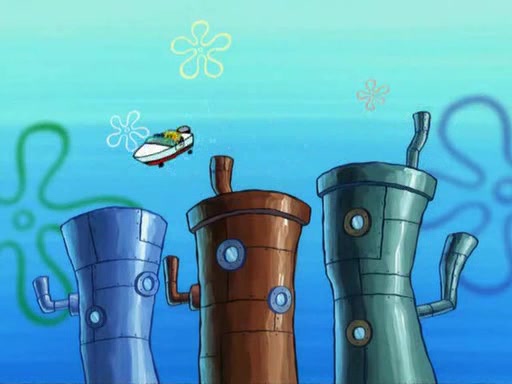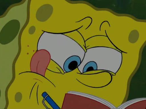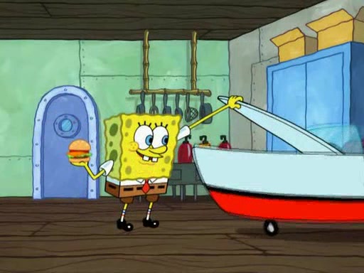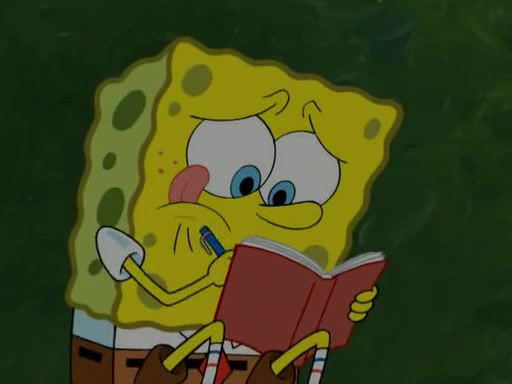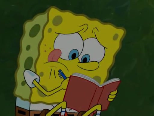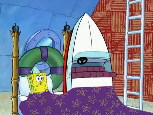 In the classroom, he realizes that living out everyone's lives won't work, and he breaks down crying on Mrs. Puff's desk. SpongeBob's mood quickly changes when he discovers a stack of blank driver's licenses. He takes a picture of himself, and prints out his own license. He then takes off with the student driver boat, naming it "Boaty," and joyriding throughout the city.