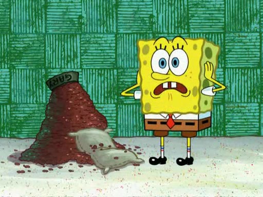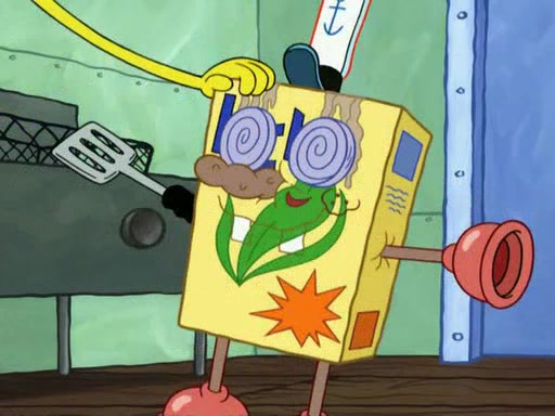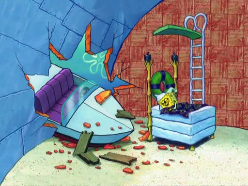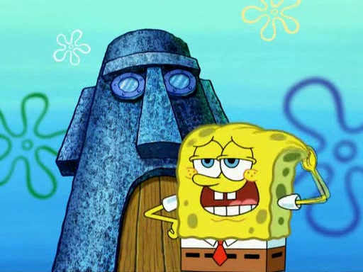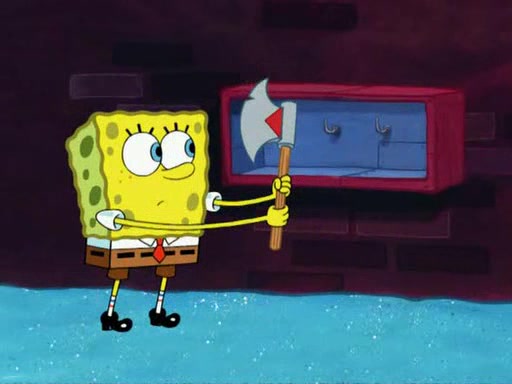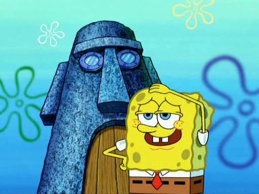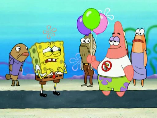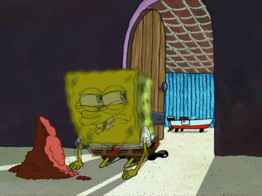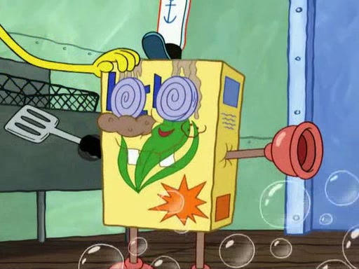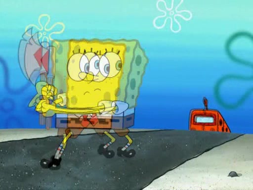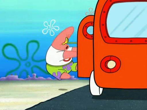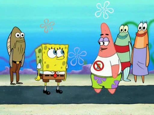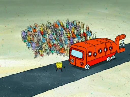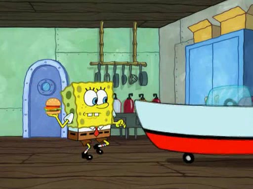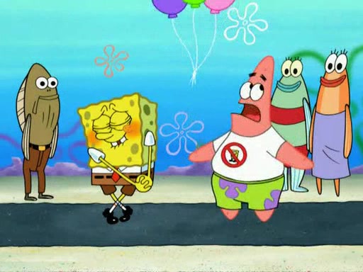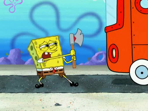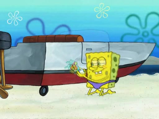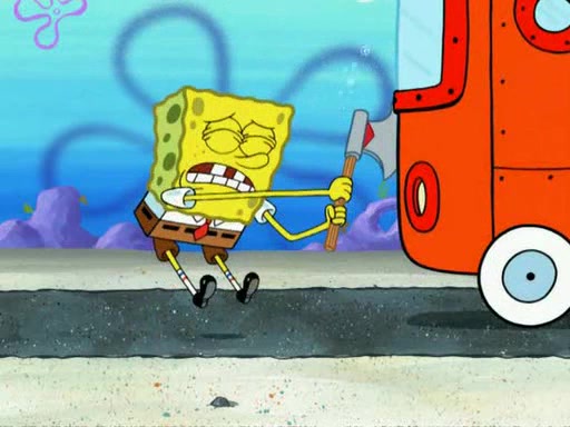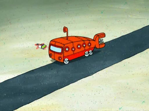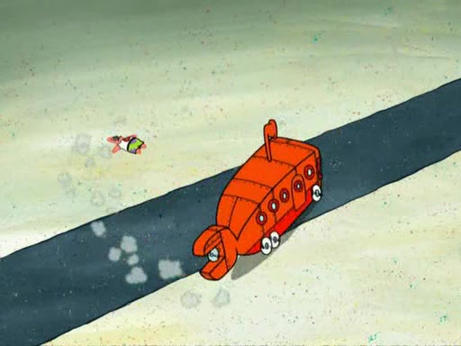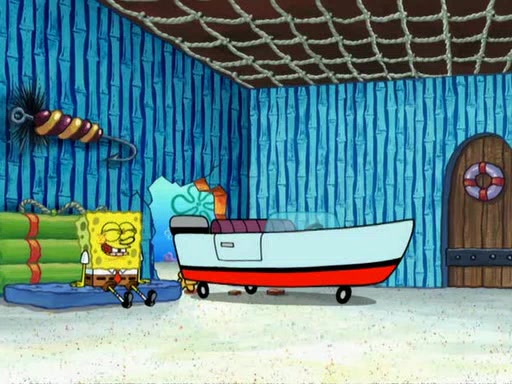 SpongeBob and Boaty become inseparable best friends. SpongeBob sleeps with the boat, and parks it inside both his house and the Krusty Krab. Spongebob is going insane without people to talk to, and Boaty realizes this. In his closet, SpongeBob has erected a statue of Patrick out of raw Krabby Patty meat, which he carries out a conversation with. The "Patty-Patrick" warns that he cannot talk because Boaty is listening. He goes crazy from the sight of any motor vehicle, and when a bus comes, he grabs a fire axe from the cinema to chop at a bus that approaches him.