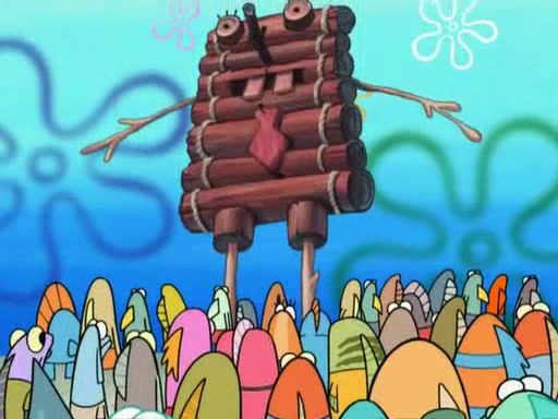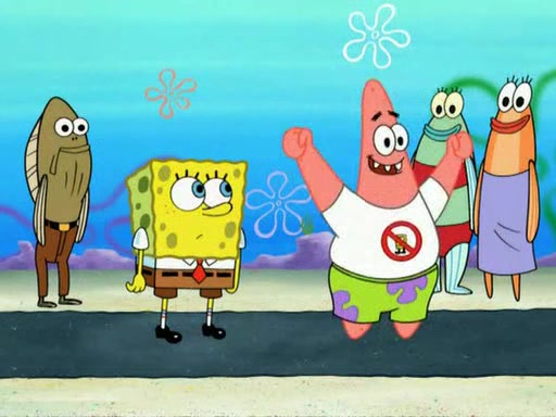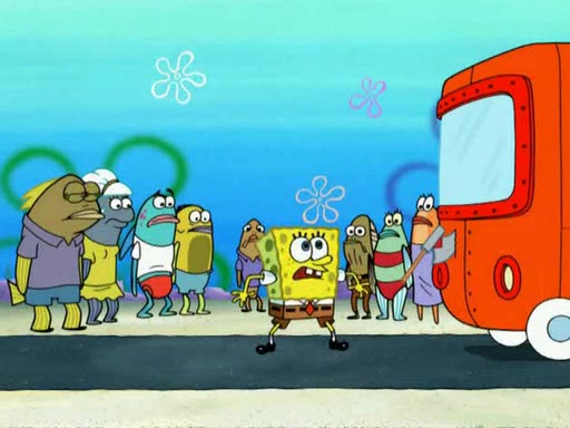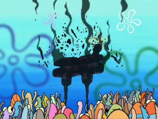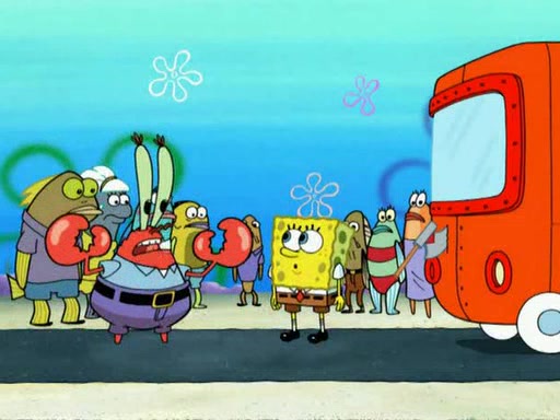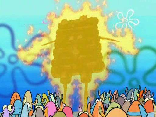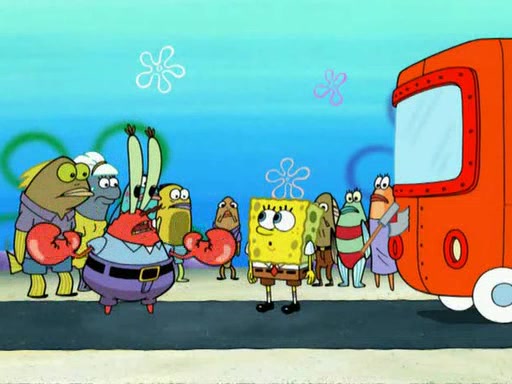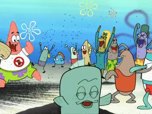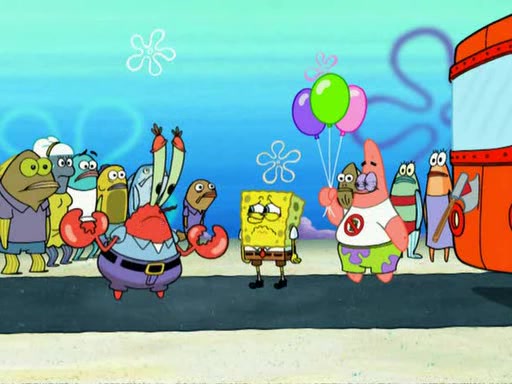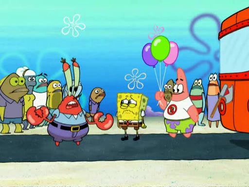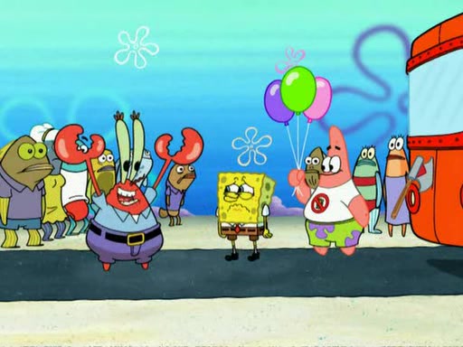 To his surprise everyone in Bikini Bottom comes out of it. Mr. Krabs tells SpongeBob that everyone's mysterious disappearance was really a holiday to celebrate being away from SpongeBob for a day (according to SpongeBob, they were gone for weeks). Before venturing off, a giant effigy of SpongeBob is erected, then burned. Everyone then dances on the ashes to celebrate. Spongebob doesn't understand but soon realizes it is an honor. Patrick reccomends a "No-Patrick-Day". Everyone boards the bus except for Patrick, obviously forgetting what he just said.