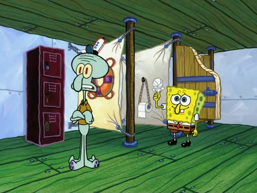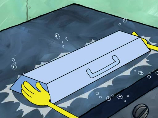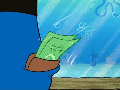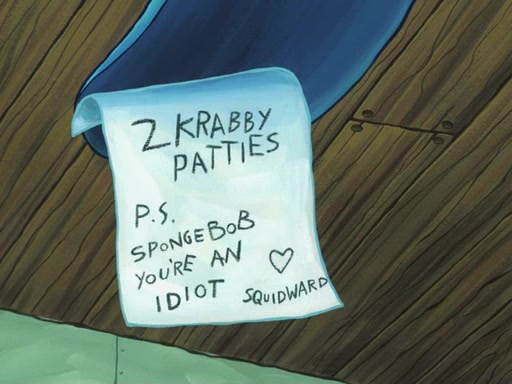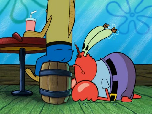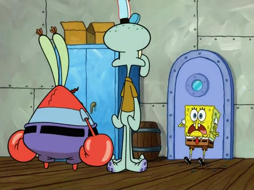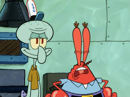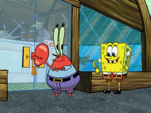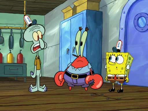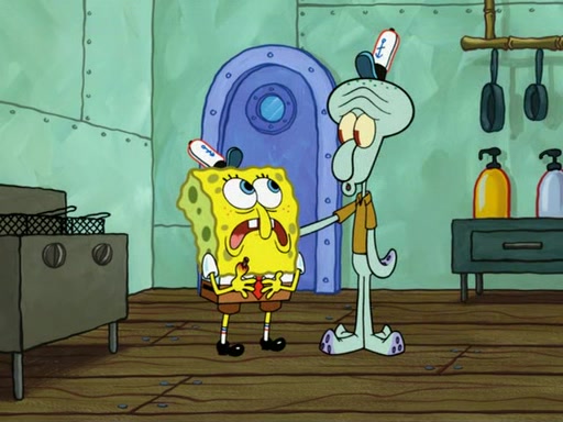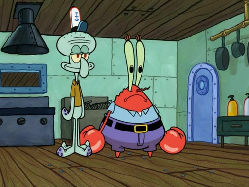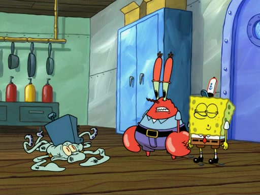 Squidward then convinces SpongeBob that he will get sent home by Mr. Krabs if he sees the splinter and flushes his hat and spatula down the toilet. SpongeBob begs Squidward not to get him sent home, but is unsuccessful. Squidward also hints that he'll tell Mr. Krabs about the splinter. After Squidward gets his full enjoyment about the situation, Mr. Krabs drives a customer away with his cheap behavior.
