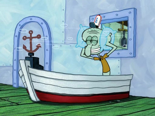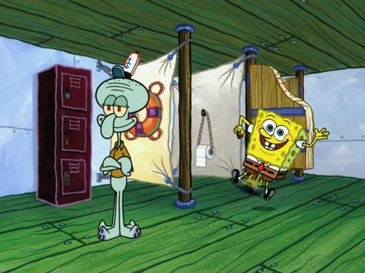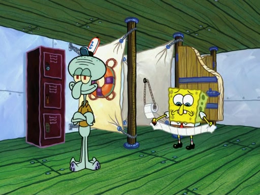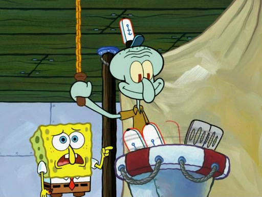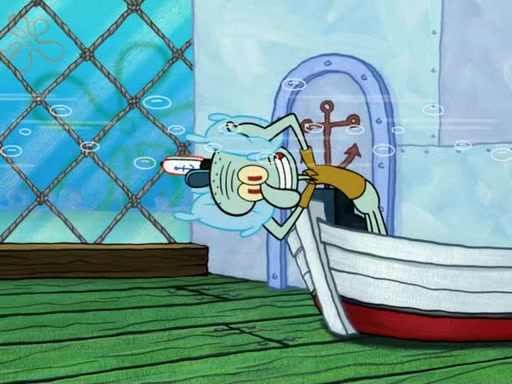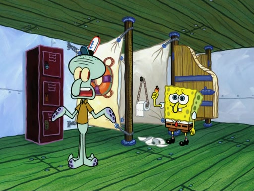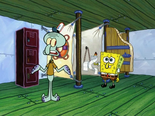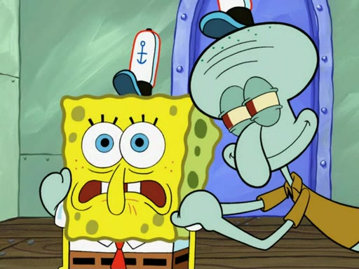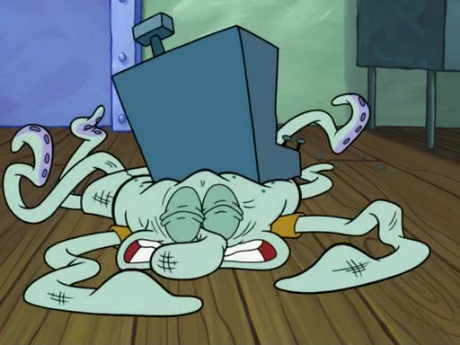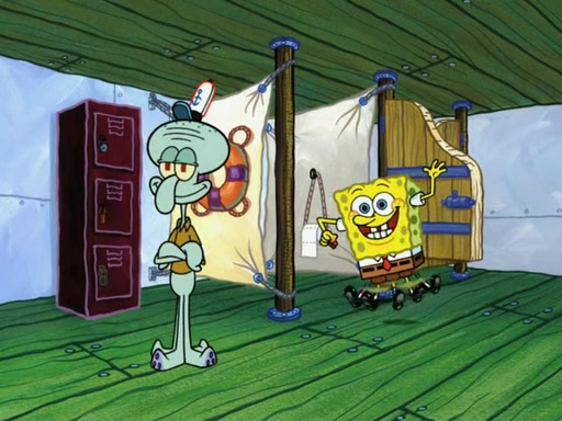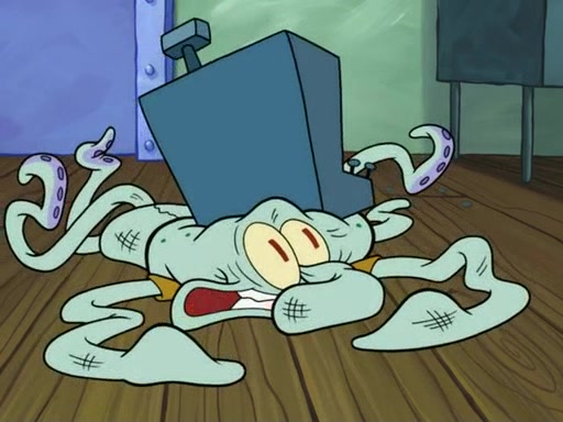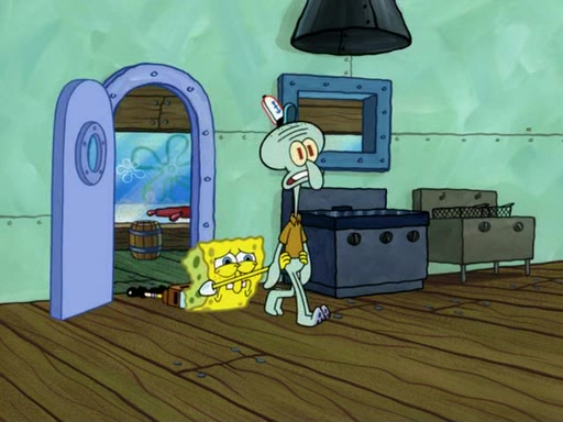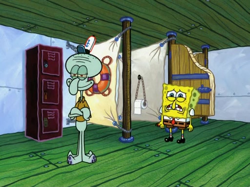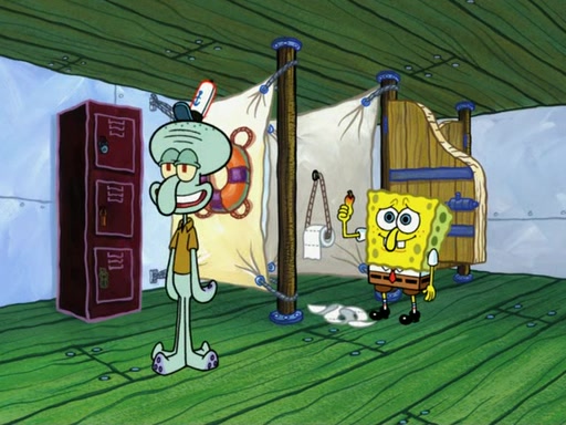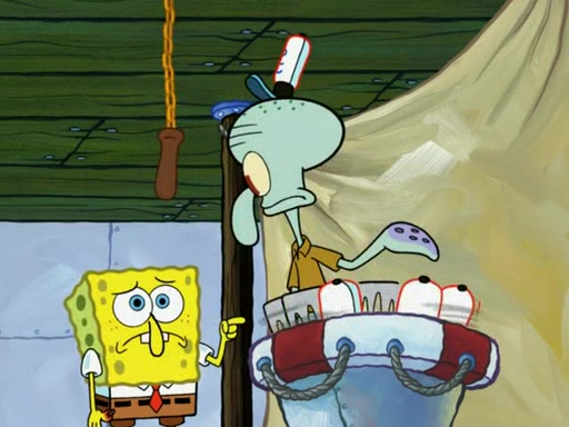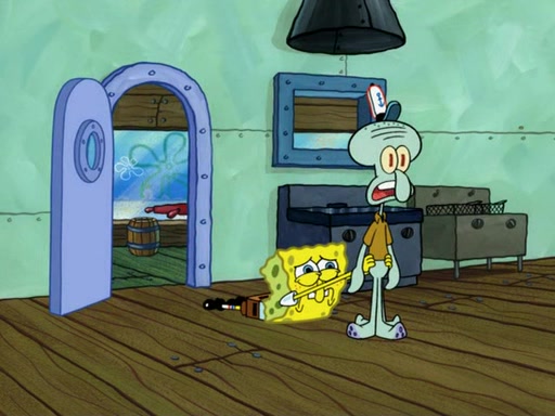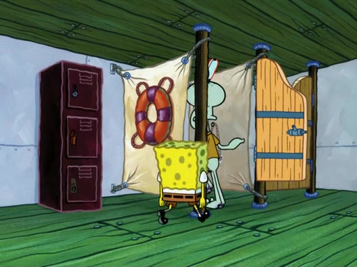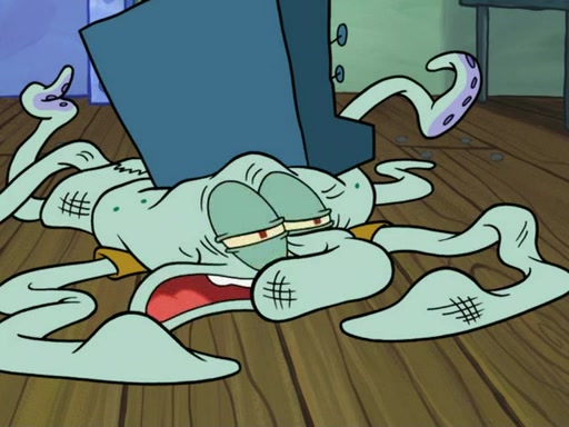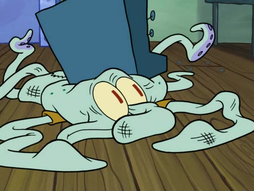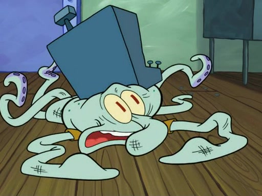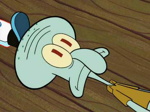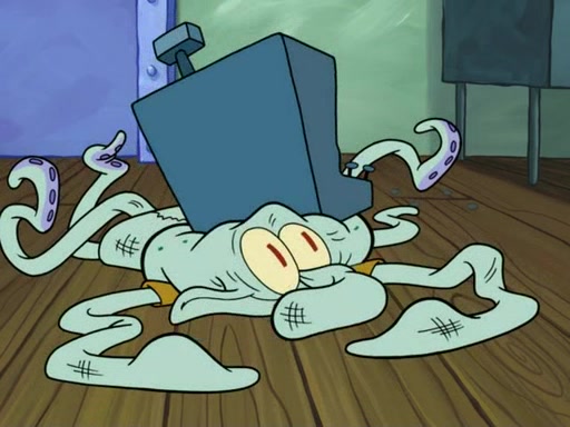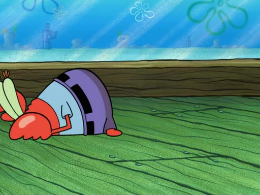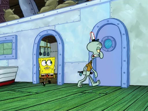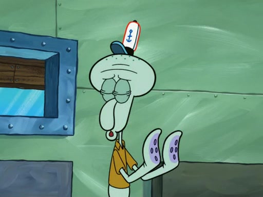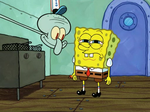 Squidward discovers that he could get sent home early and still get paid by getting injured, called worker's compensation, so he tries to injure himself, only to find out that his shift had ended two minutes ago.