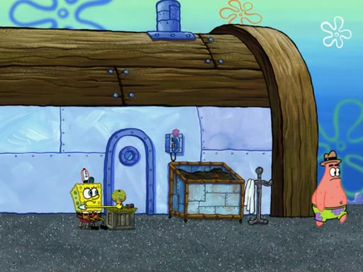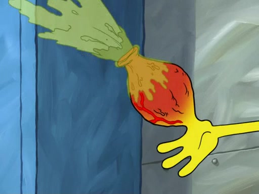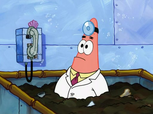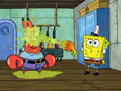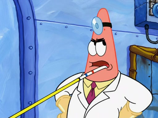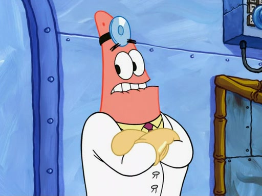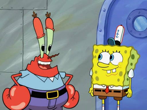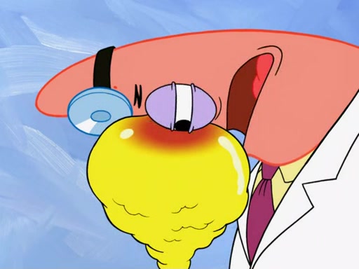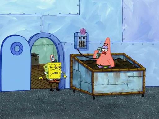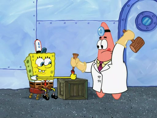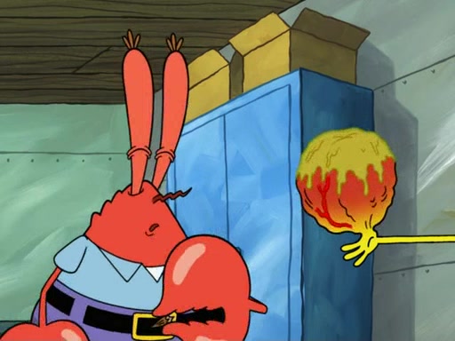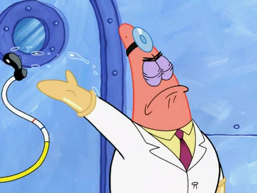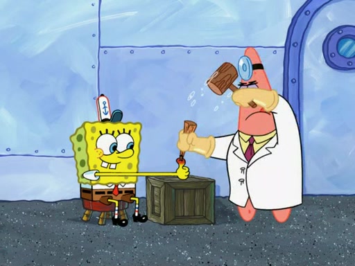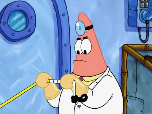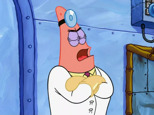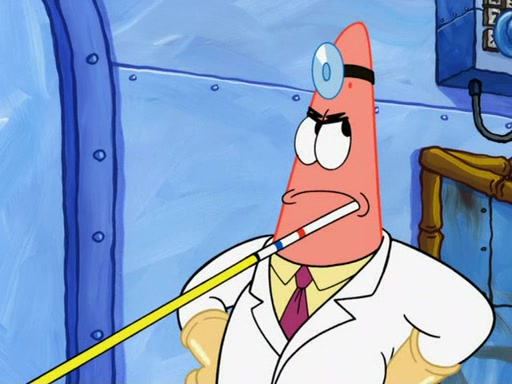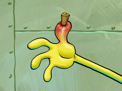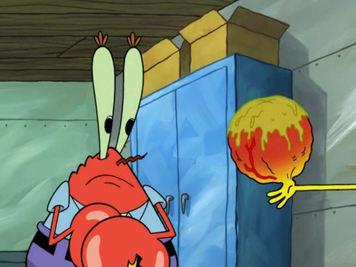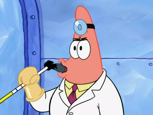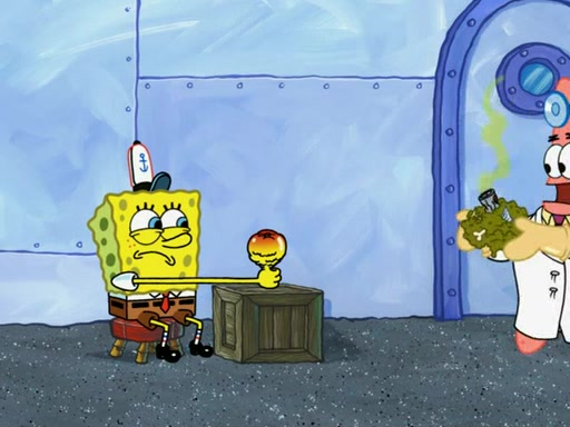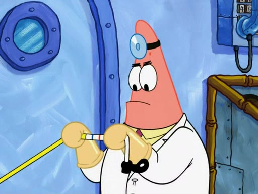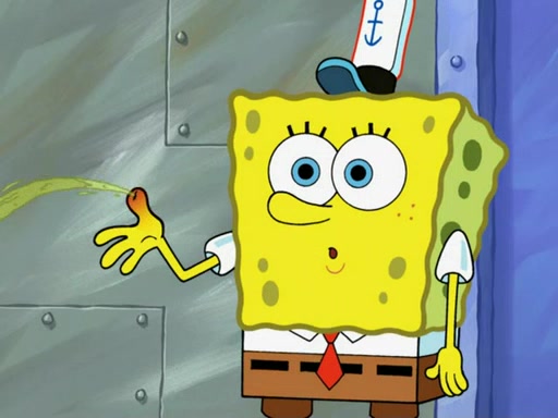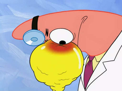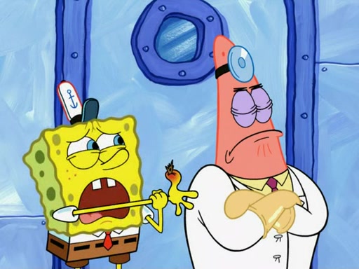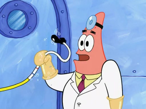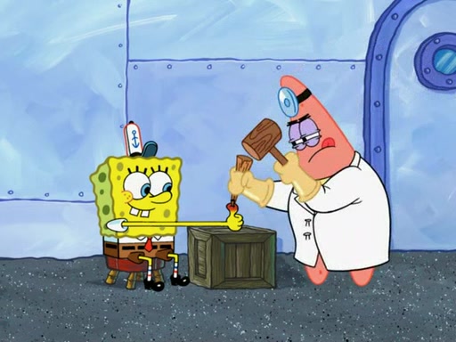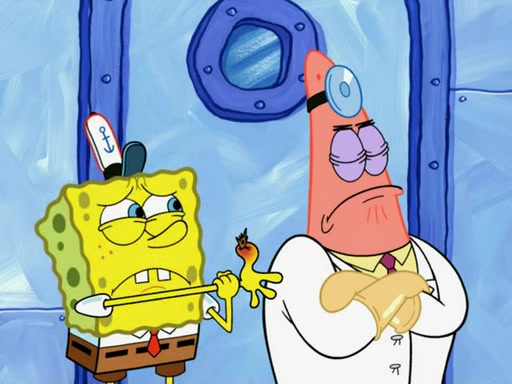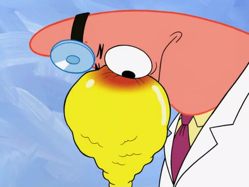 SpongeBob calls Patrick to get treated for it, but the treatment only ends up with his splinter further into his thumb, making it swell more and even infecting it. SpongeBob soon runs into Mr. Krabs and Squidward. Mr. Krabs soon sees the splinter and takes it out, curing him and causing an eruption of pus to impact Mr. Krabs.