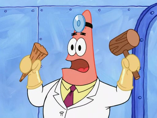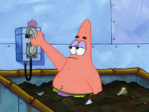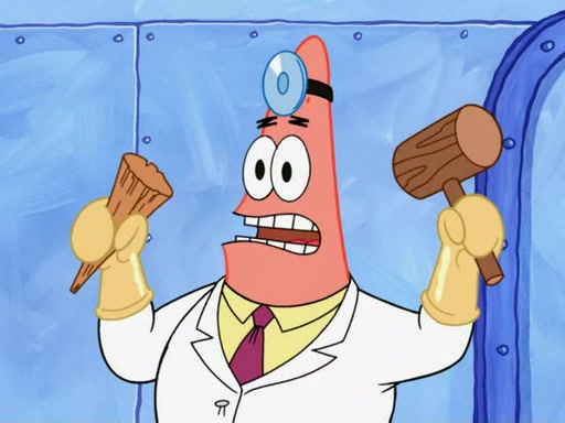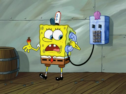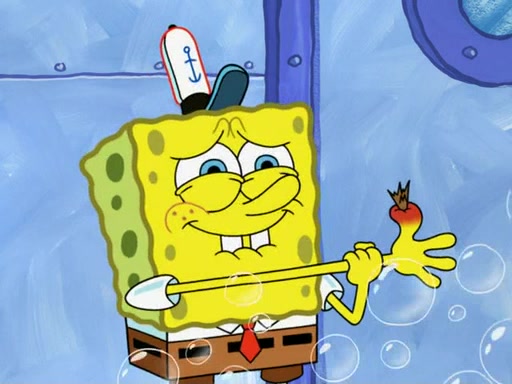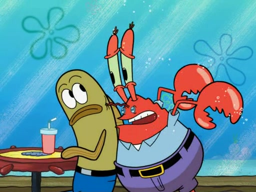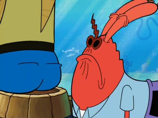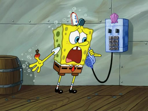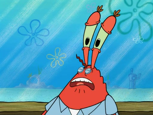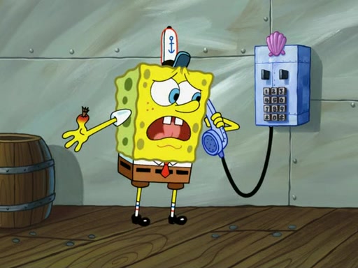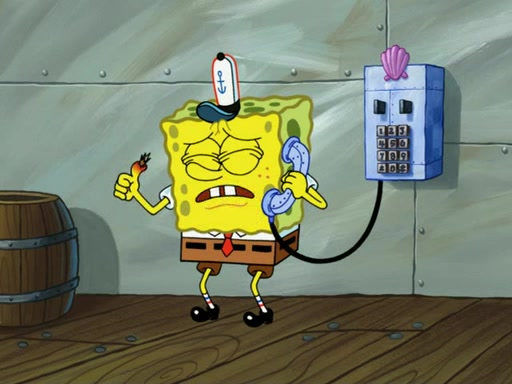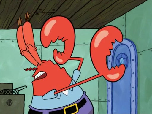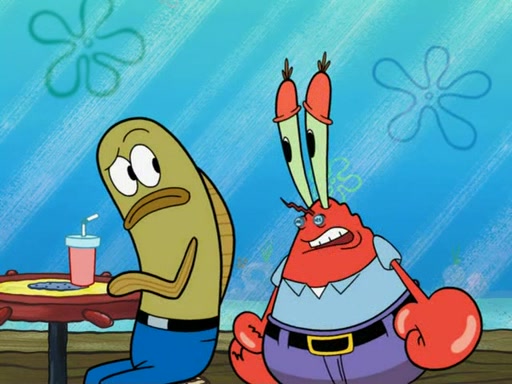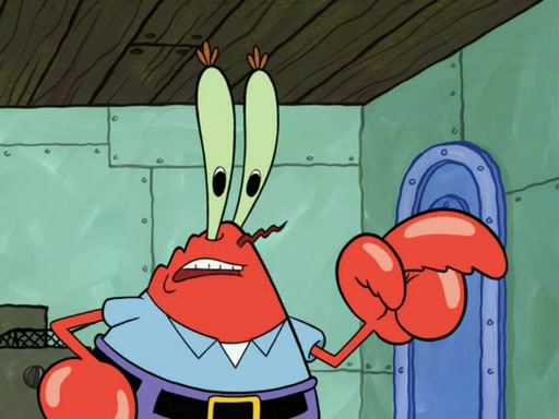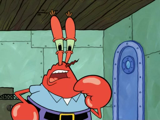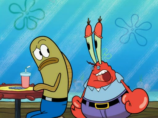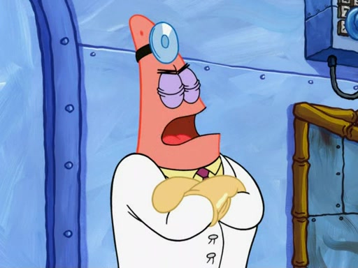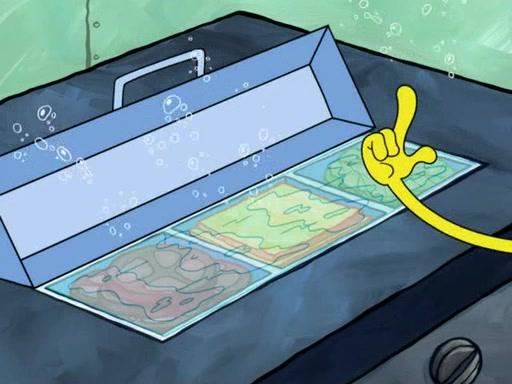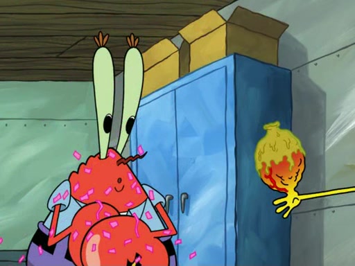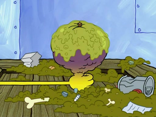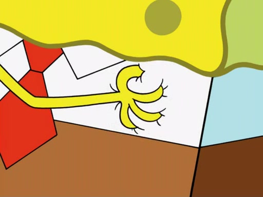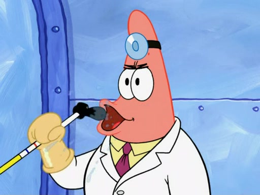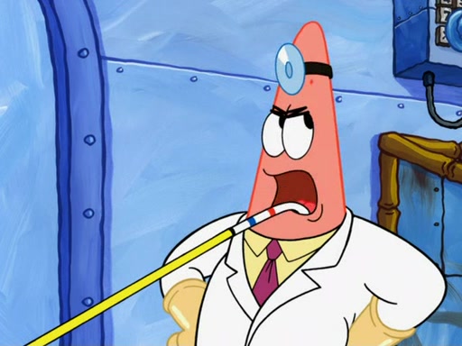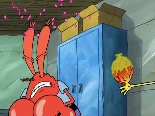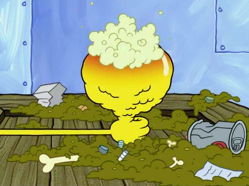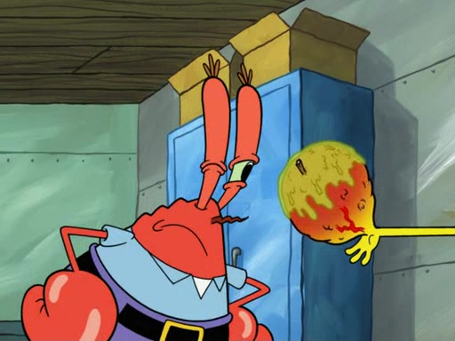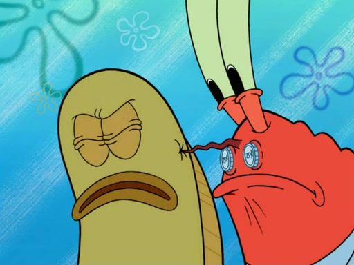 SpongeBob calls Patrick to get treated for it, but the treatment only ends up with his splinter further into his thumb, making it swell more and even infecting it. SpongeBob soon runs into Mr. Krabs and Squidward. Mr. Krabs soon sees the splinter and takes it out, curing him and causing an eruption of pus to impact Mr. Krabs.