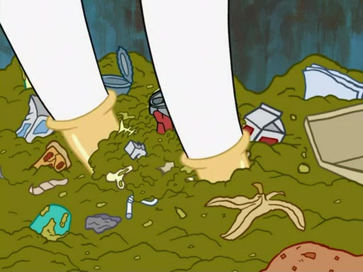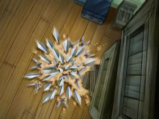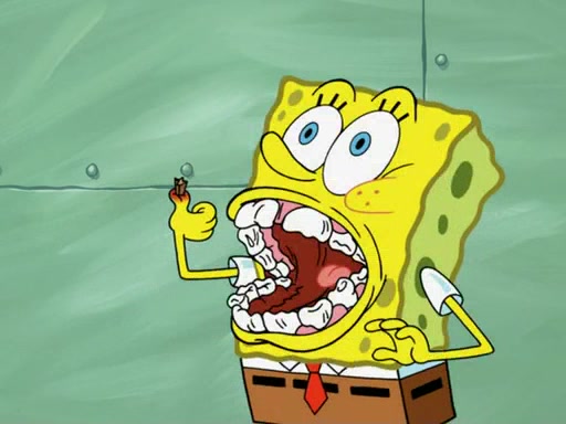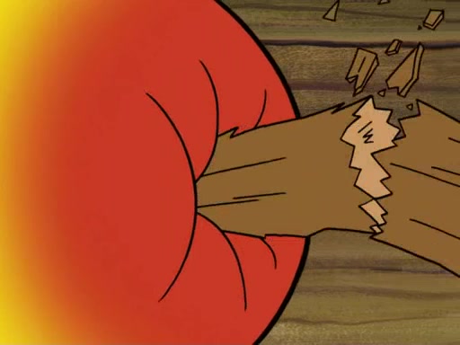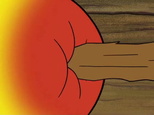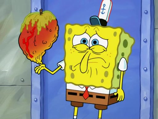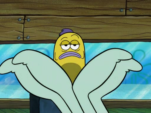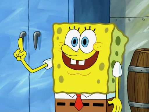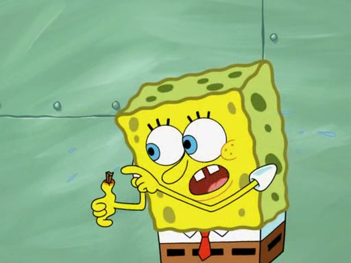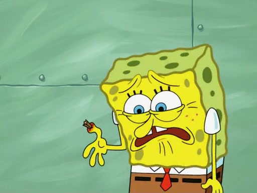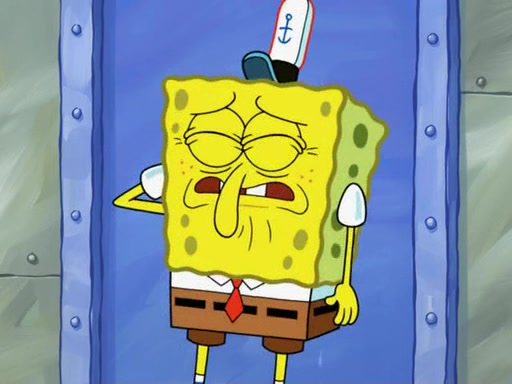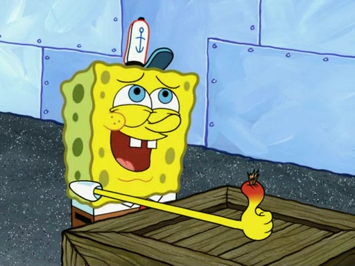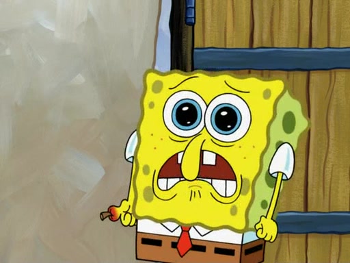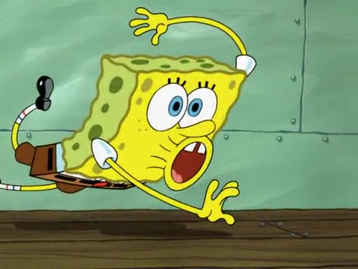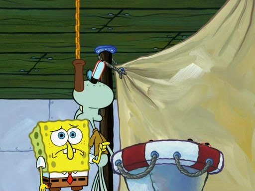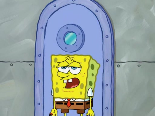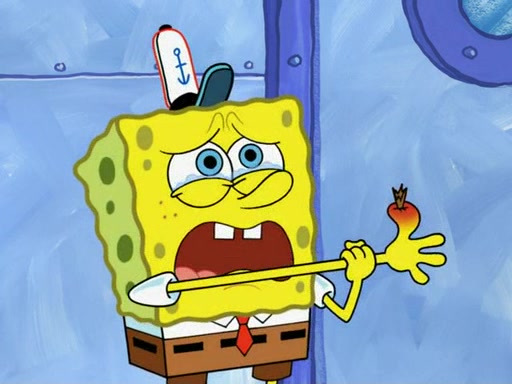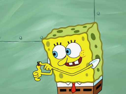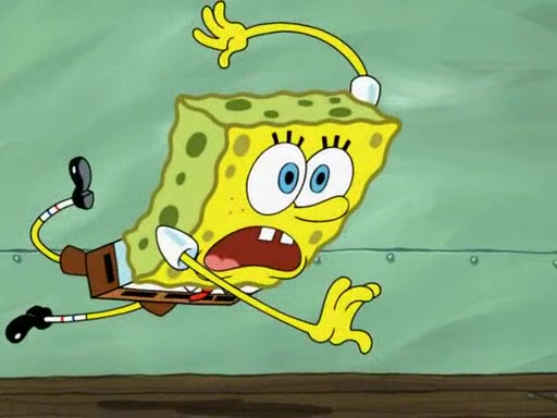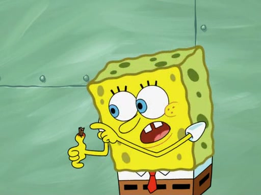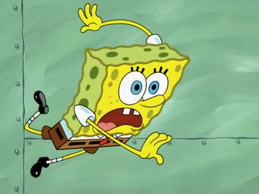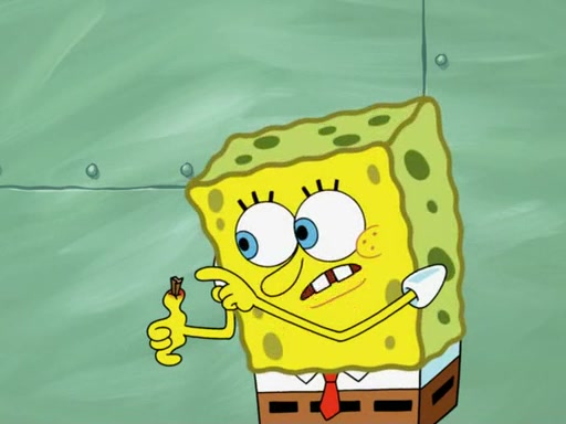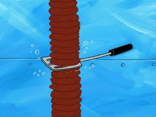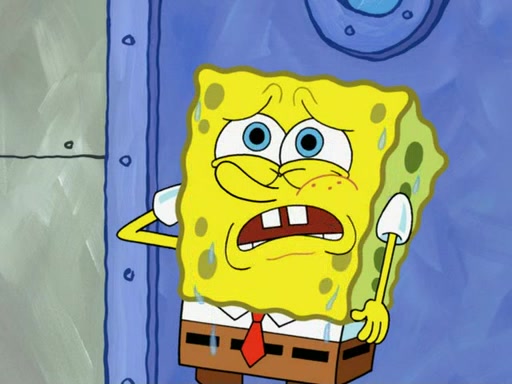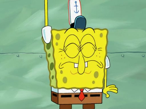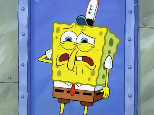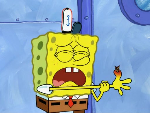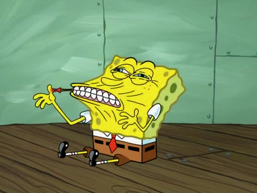 Upon landing, all is well but he trips on tartar sauce. His thumb drags across the wooden floor and rams into a small slab that breaks in half, giving him a splinter that immediately makes his thumb red and swollen. His weak arms keep him from getting it out and even biting it doesn't work. The customer that ordered earlier is turning impatient and the splinter keeps SpongeBob from holding the spatula needed to serve him. He decides to tie it on his nose and Squidward soon finds out about it.