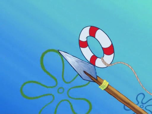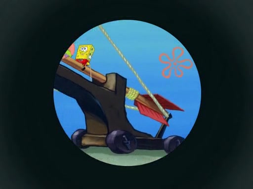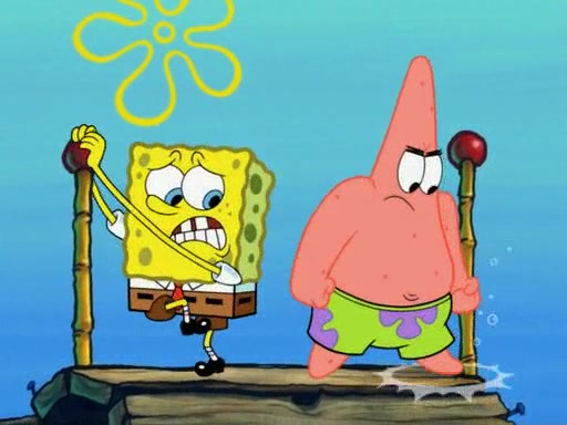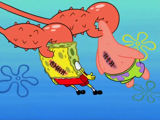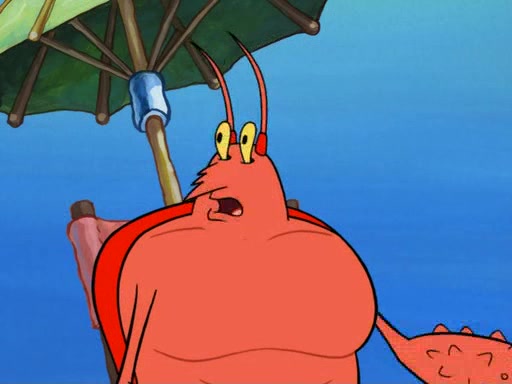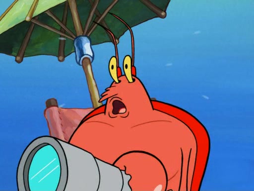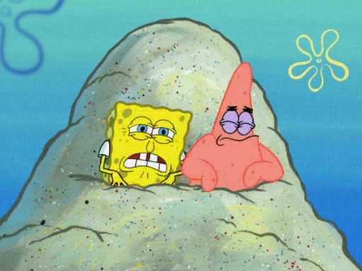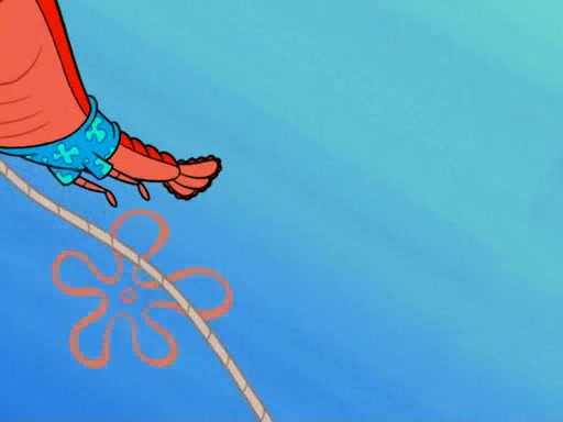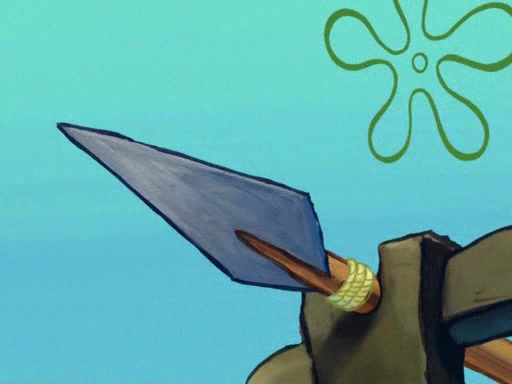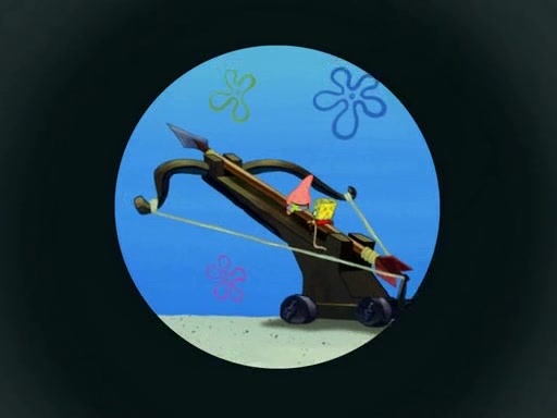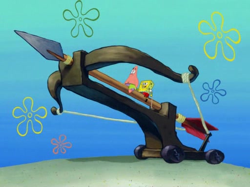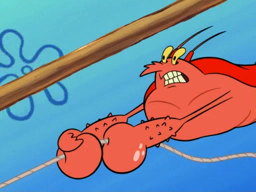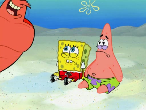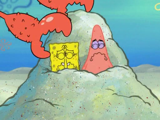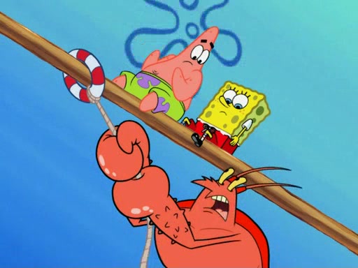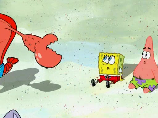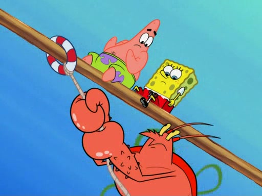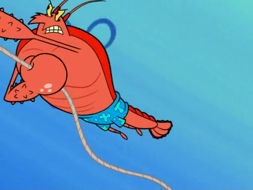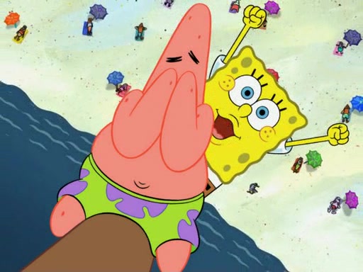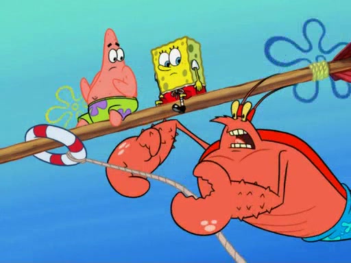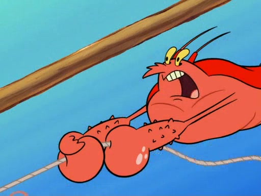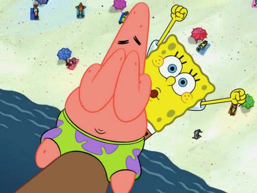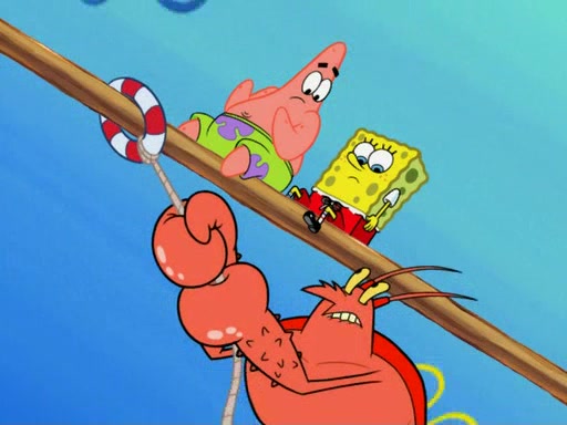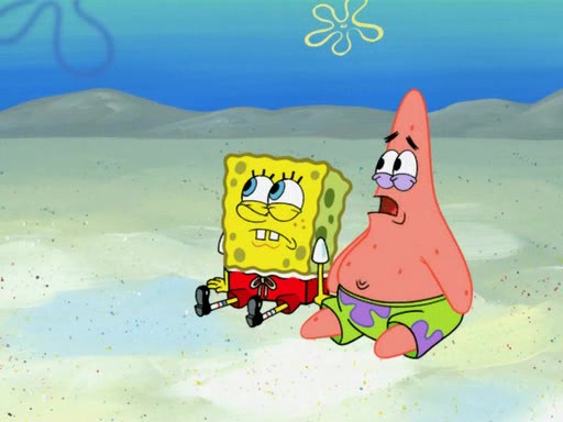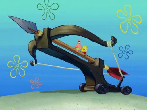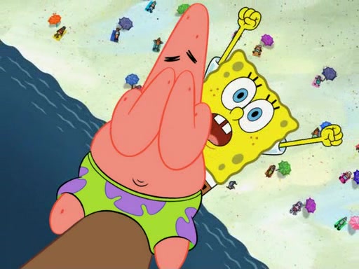 Later that day, SpongeBob and Patrick are on the beach again, but this time on a giant arrow aimed towards hundreds of sharp rocks (Ripper's Reef). Patrick worries that they will get hurt, but SpongeBob prepares to cut the rope anyway. Meanwhile, Larry notices what they are doing and races to stop them. But Larry is too late, SpongeBob cuts the rope and they fly towards Ripper's Reef. Larry hooks a rope on the arrow, and is pulled up too. SpongeBob shouts with glee, while Patrick and Larry scream. They slam into Ripper's Reef at full force, and all are impaled with the rocks.