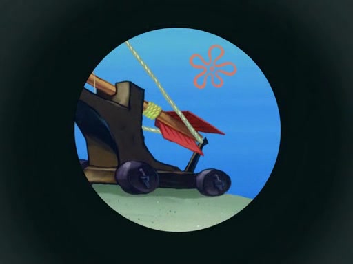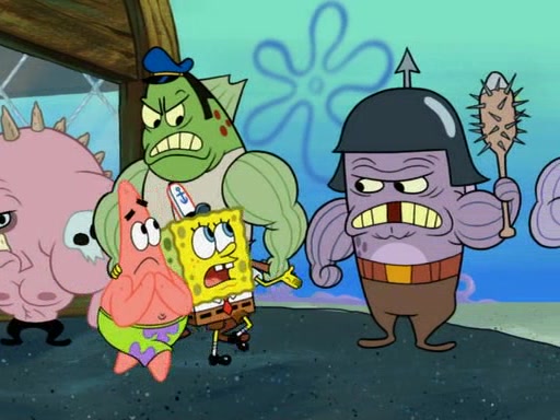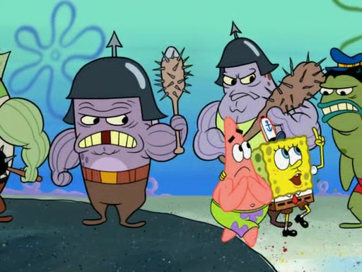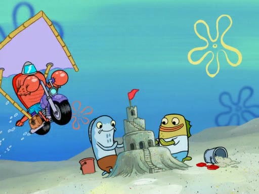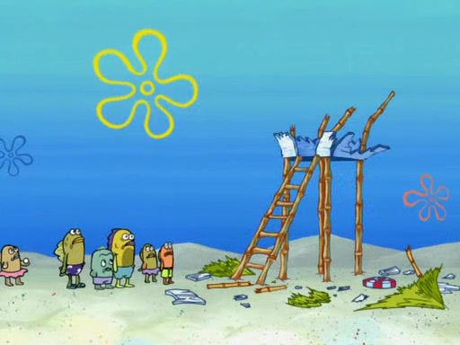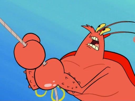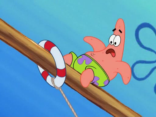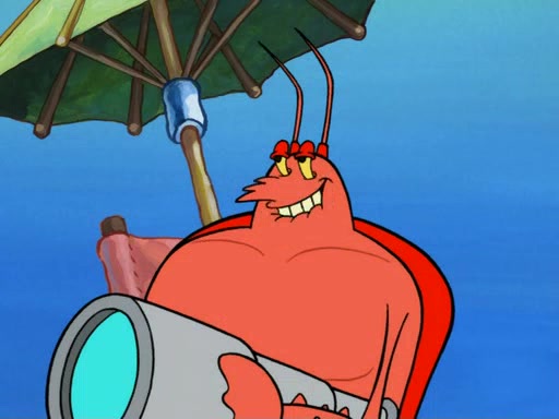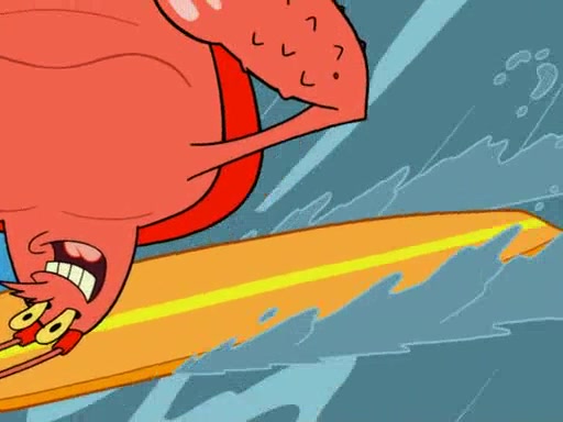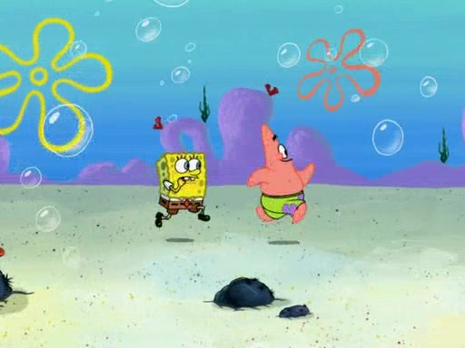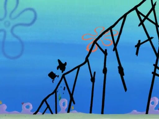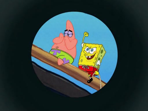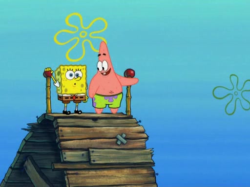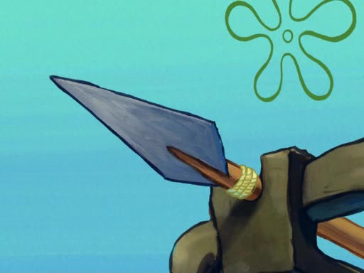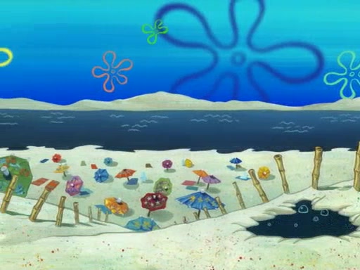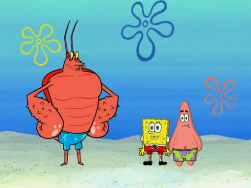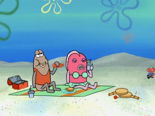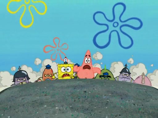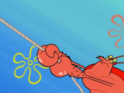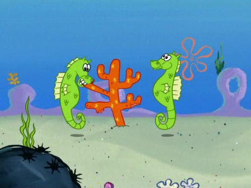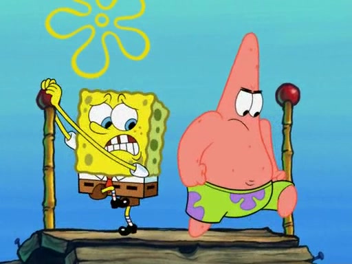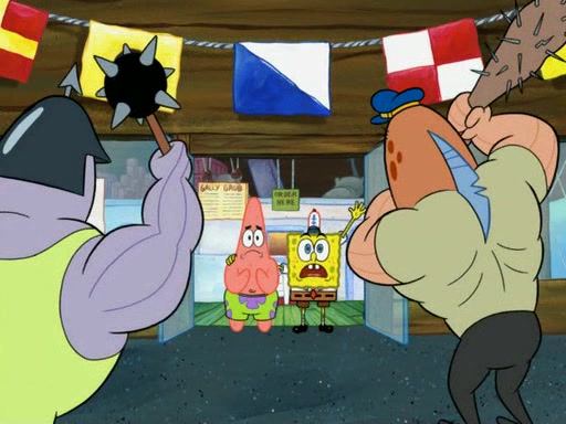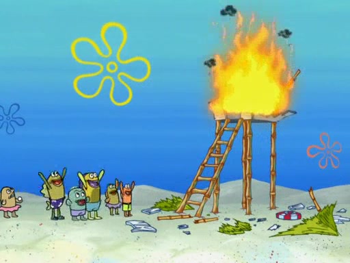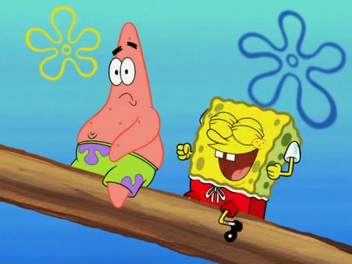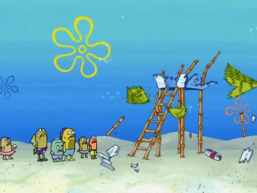 Later that day, SpongeBob and Patrick are on the beach again, but this time on a giant arrow aimed towards hundreds of sharp rocks (Ripper's Reef). Patrick worries that they will get hurt, but SpongeBob prepares to cut the rope anyway. Meanwhile, Larry notices what they are doing and races to stop them. But Larry is too late, SpongeBob cuts the rope and they fly towards Ripper's Reef. Larry hooks a rope on the arrow, and is pulled up too. SpongeBob shouts with glee, while Patrick and Larry scream. They slam into Ripper's Reef at full force, and all are impaled with the rocks.