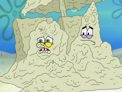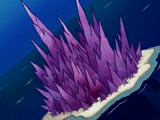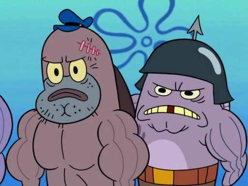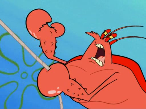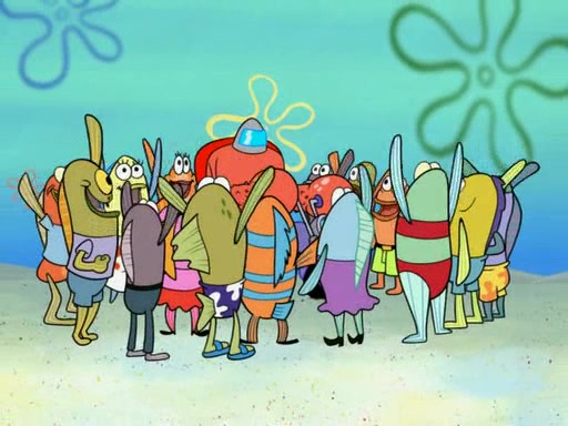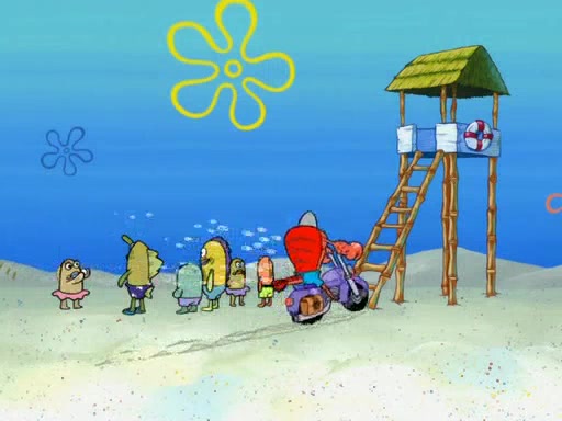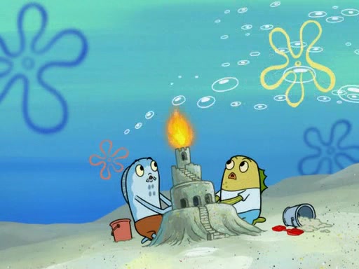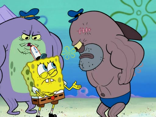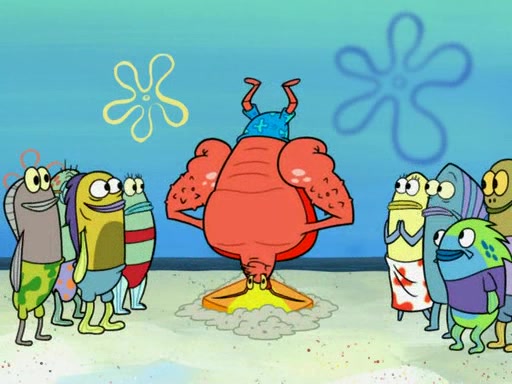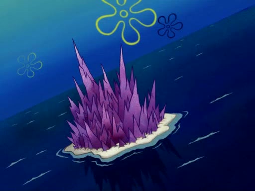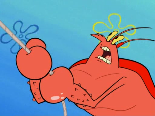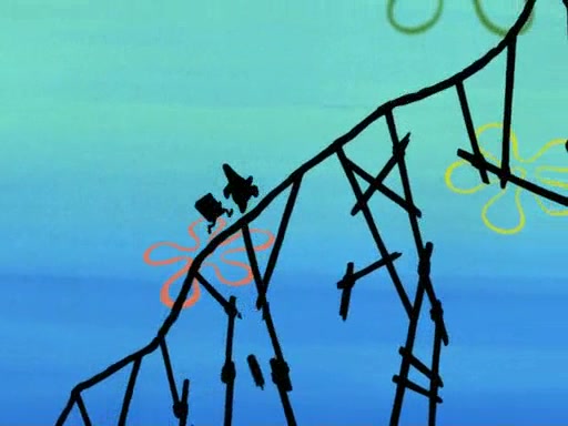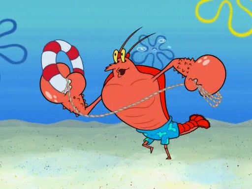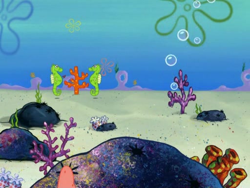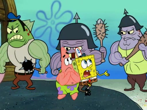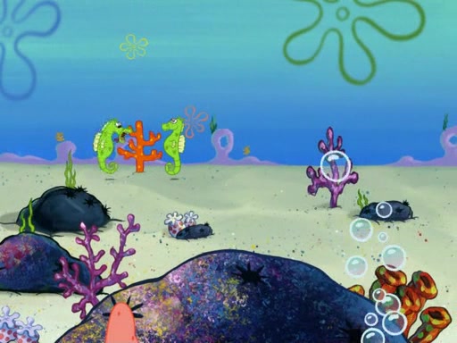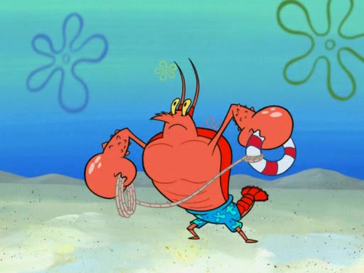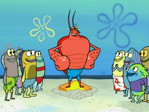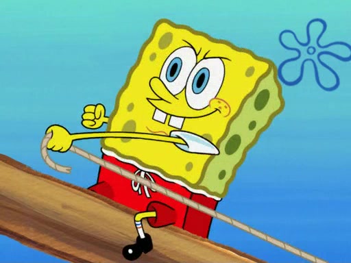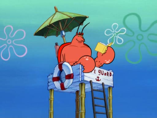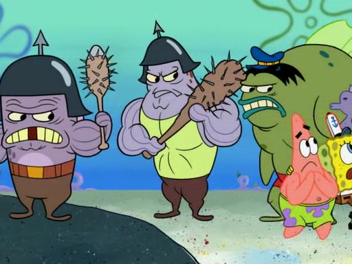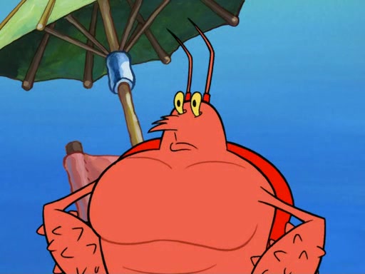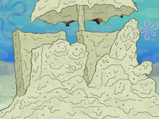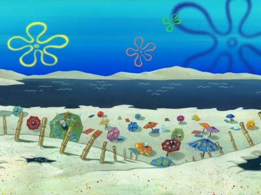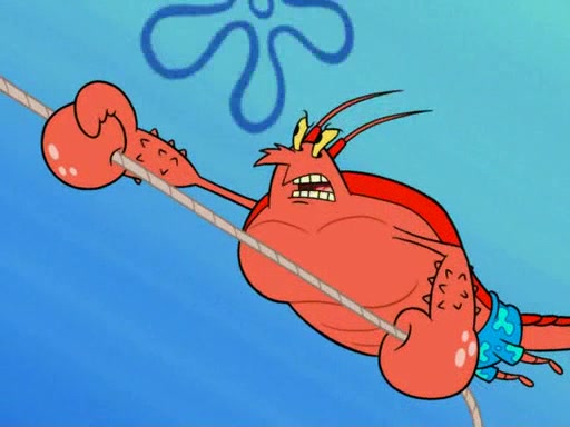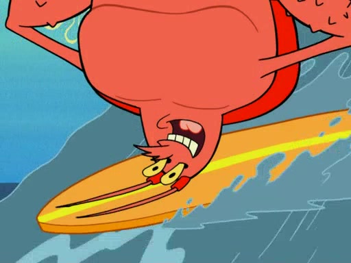 Later that day, SpongeBob and Patrick are on the beach again, but this time on a giant arrow aimed towards hundreds of sharp rocks (Ripper's Reef). Patrick worries that they will get hurt, but SpongeBob prepares to cut the rope anyway. Meanwhile, Larry notices what they are doing and races to stop them. But Larry is too late, SpongeBob cuts the rope and they fly towards Ripper's Reef. Larry hooks a rope on the arrow, and is pulled up too. SpongeBob shouts with glee, while Patrick and Larry scream. They slam into Ripper's Reef at full force, and all are impaled with the rocks.