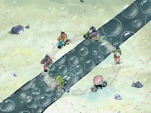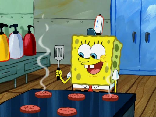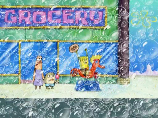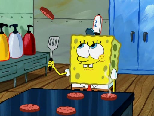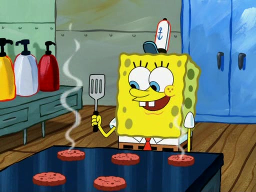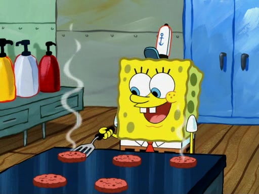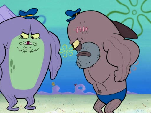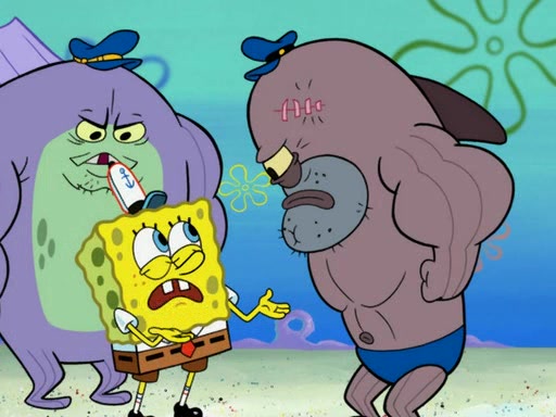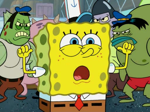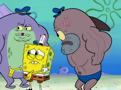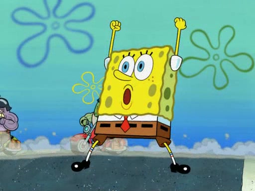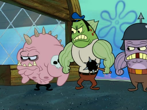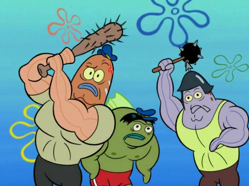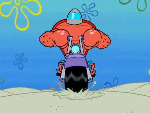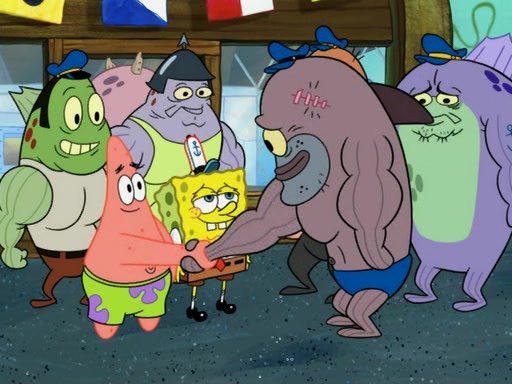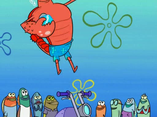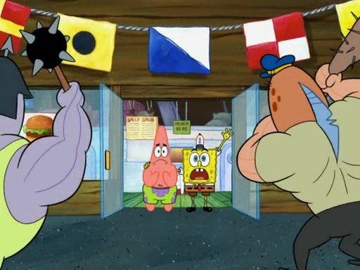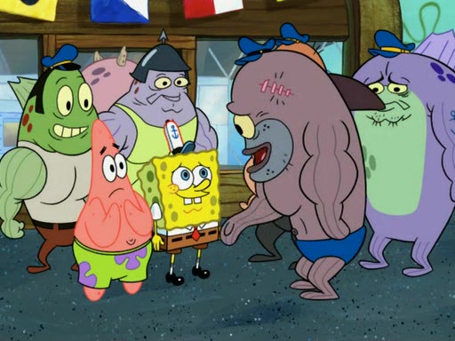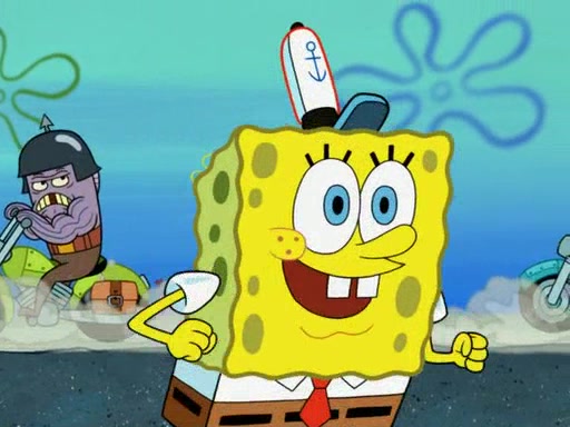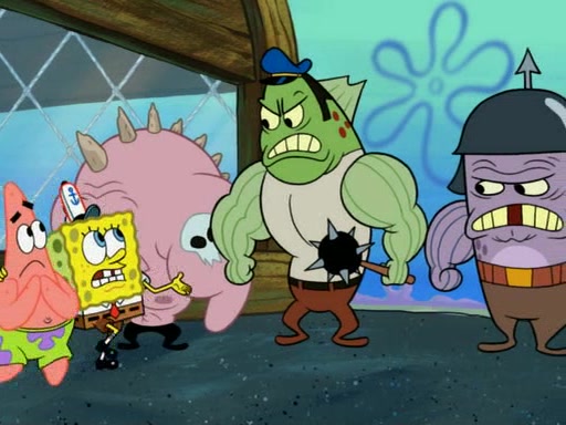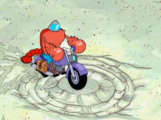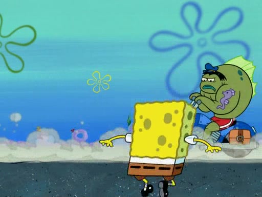 The next day, SpongeBob is working at the Krusty Krab, when Patrick (who apparently survived the monster attack) is running towards the restaurant, trying to get away from five mad bikers (Possibly the Wild Ones). He tells SpongeBob that he was right, and that he would never try such stupid stunts again. When SpongeBob goes outside to talk to the bikers, he knocks down their bikes. SpongeBob and Patrick run down the street, and SpongeBob gets a rush of adrenaline. SpongeBob shouts that he's living like Larry, and is now obsessed with daredevil stunts. The bikers hit SpongeBob with their bikes, sending SpongeBob flying into the air.