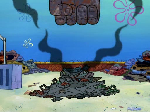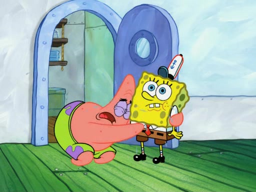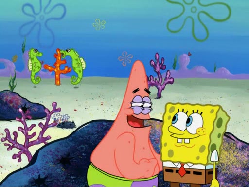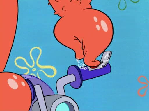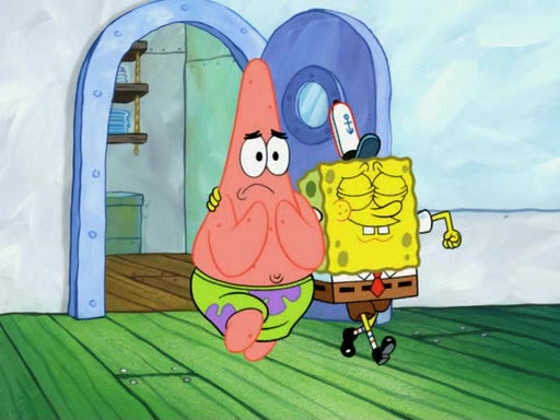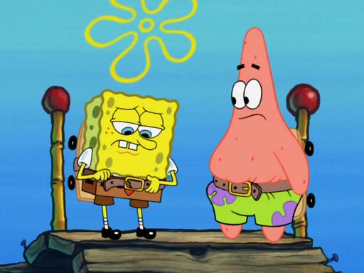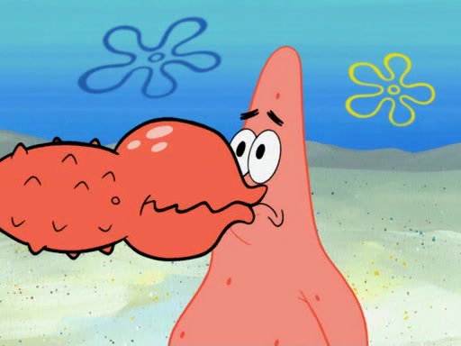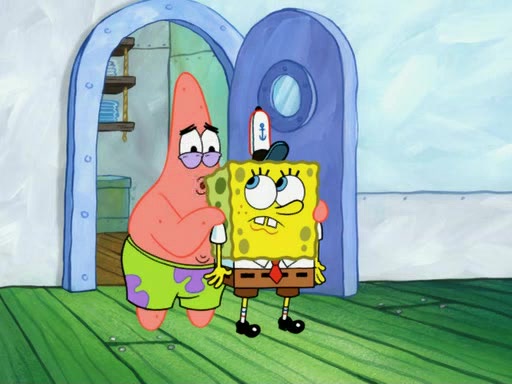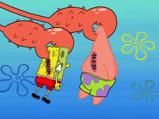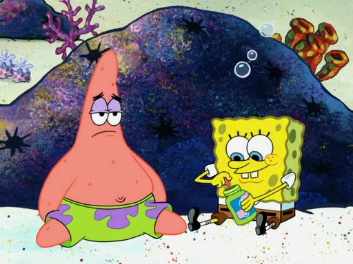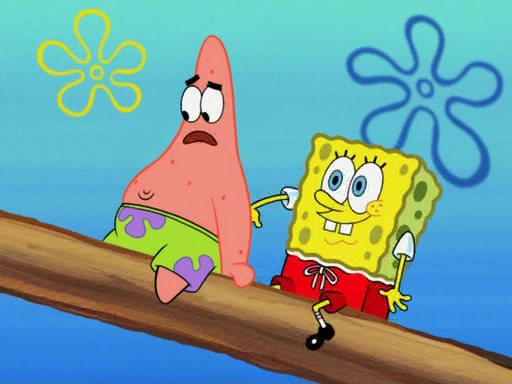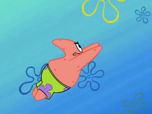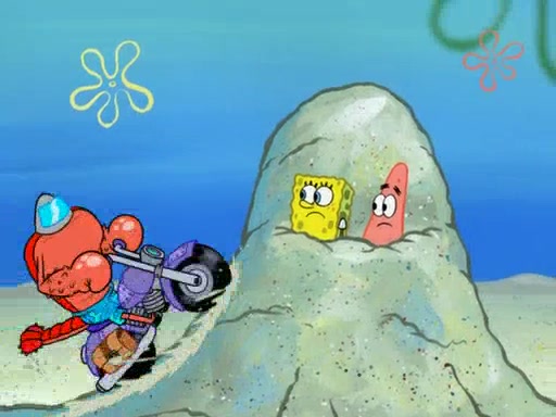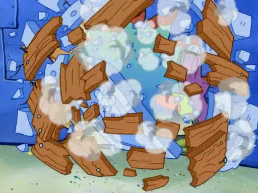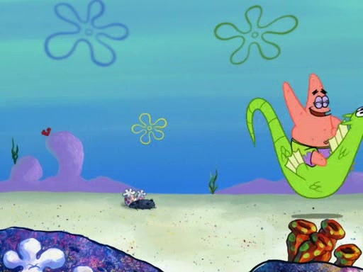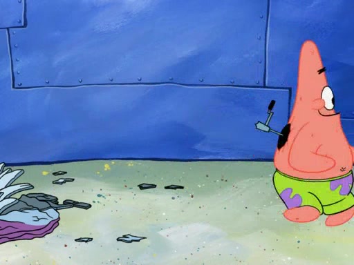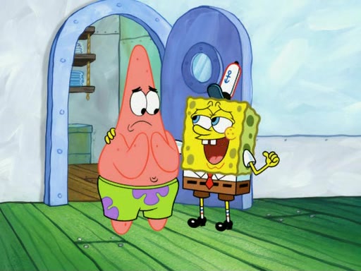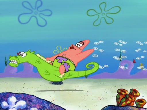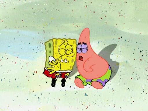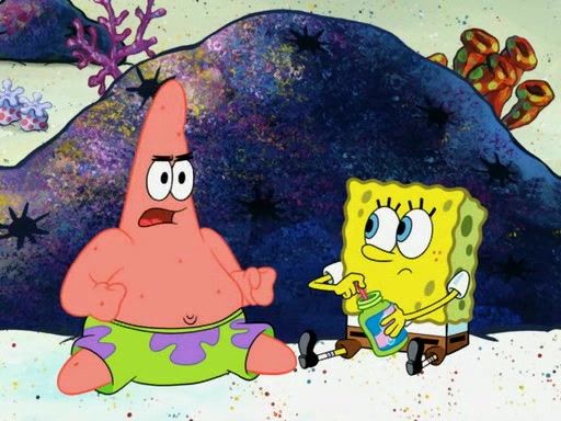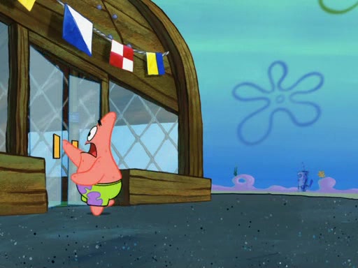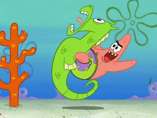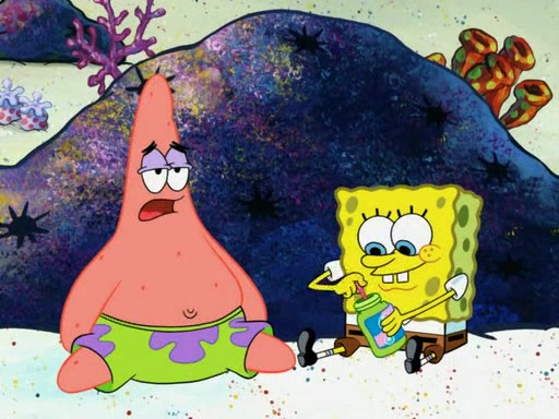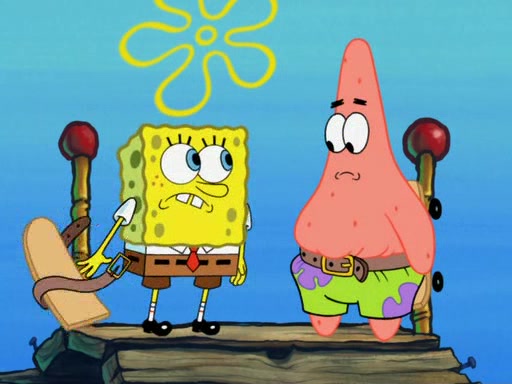 Even later that day, Patrick breaks down the door again (still inside the crushed car) and pulls SpongeBob to the outskirts of Bikini Bottom to a deep canyon next to the canyon is a long board leading to the bottom, which Patrick says he will skate down. He tells SpongeBob to join him, but SpongeBob says that going down the ramp would be stupid, and would certainly kill them. Patrick shrugs and calls SpongeBob a chicken. Patrick then skates down, and flies right into the mouths of several hungry monsters, Patrick's fate is unknown.