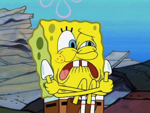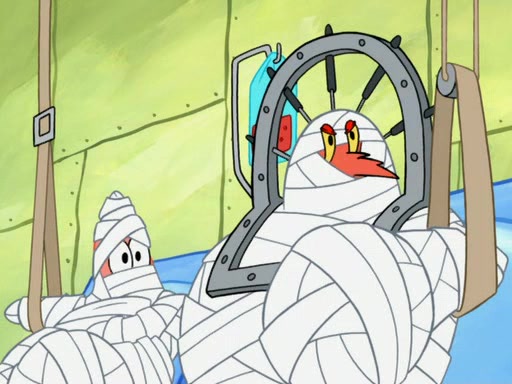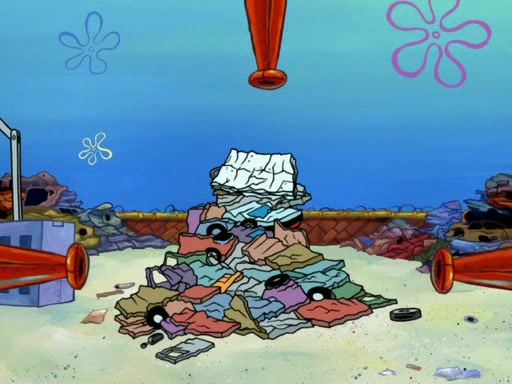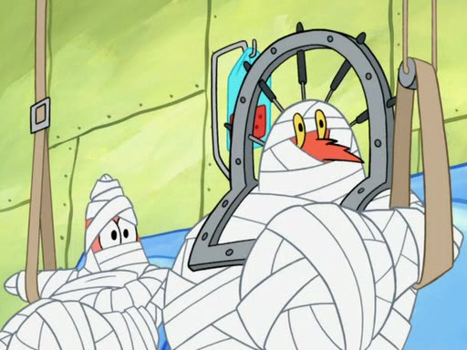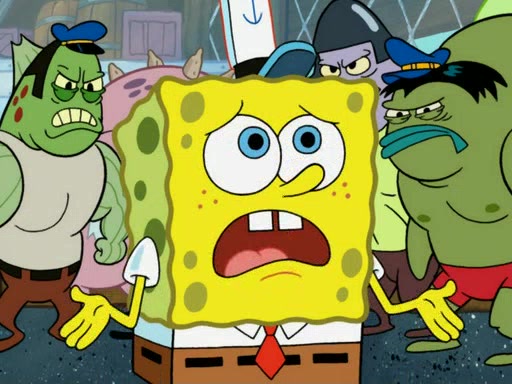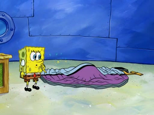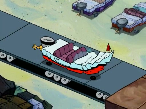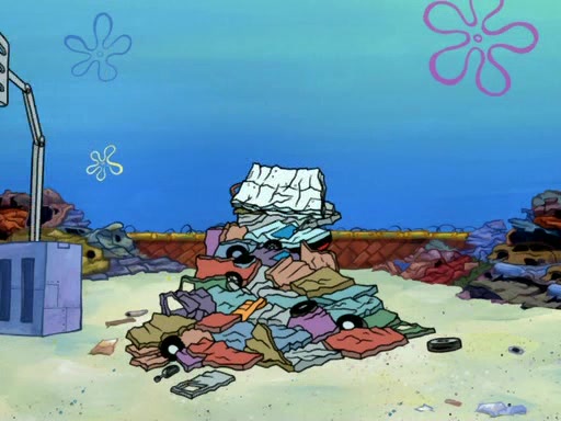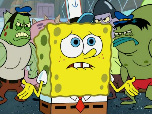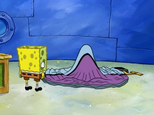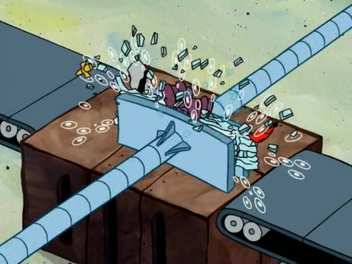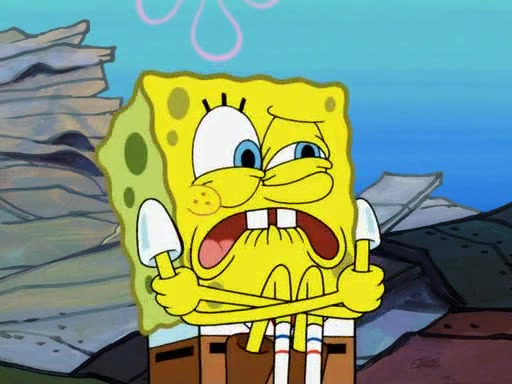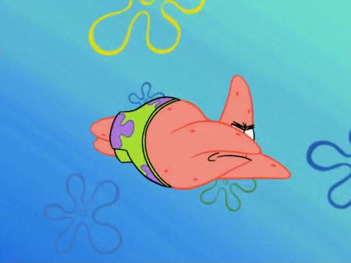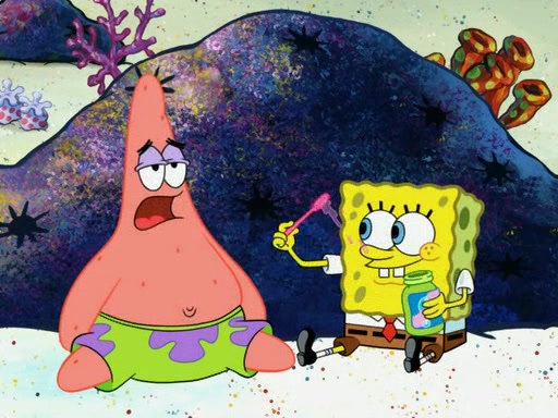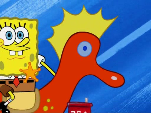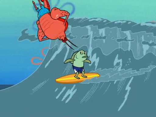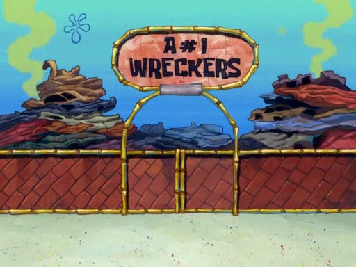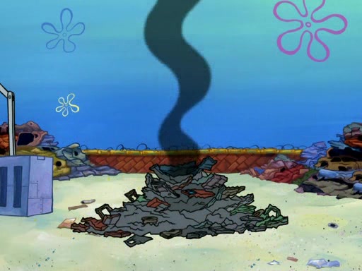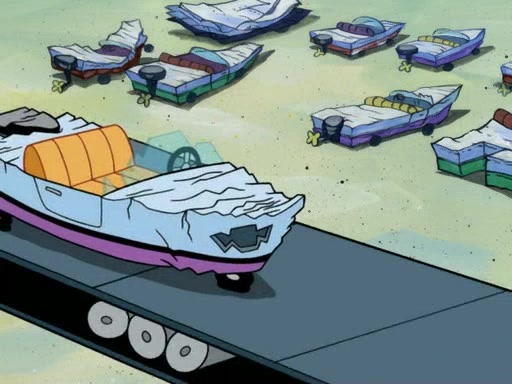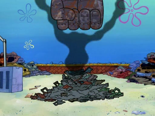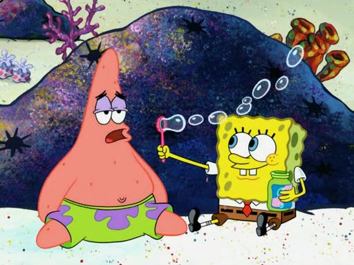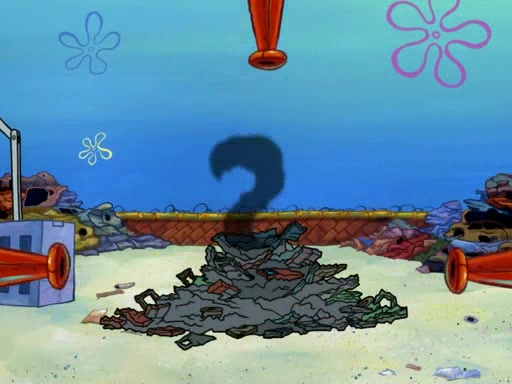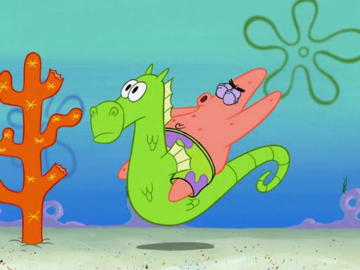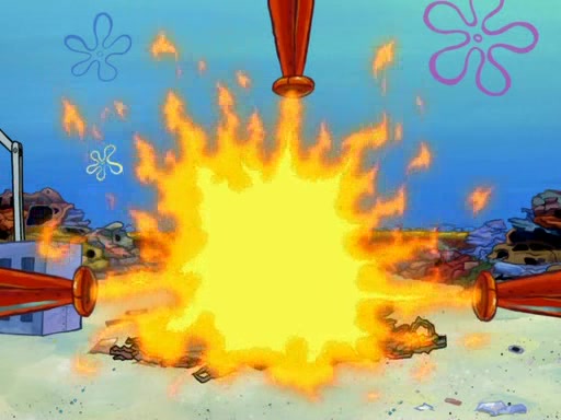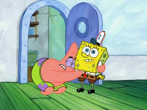 Even later that day, Patrick breaks down the door again (still inside the crushed car) and pulls SpongeBob to the outskirts of Bikini Bottom to a deep canyon next to the canyon is a long board leading to the bottom, which Patrick says he will skate down. He tells SpongeBob to join him, but SpongeBob says that going down the ramp would be stupid, and would certainly kill them. Patrick shrugs and calls SpongeBob a chicken. Patrick then skates down, and flies right into the mouths of several hungry monsters, Patrick's fate is unknown.