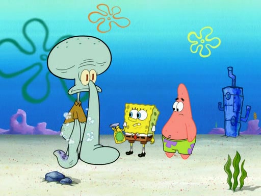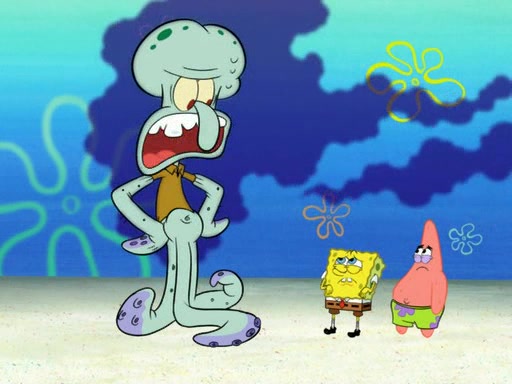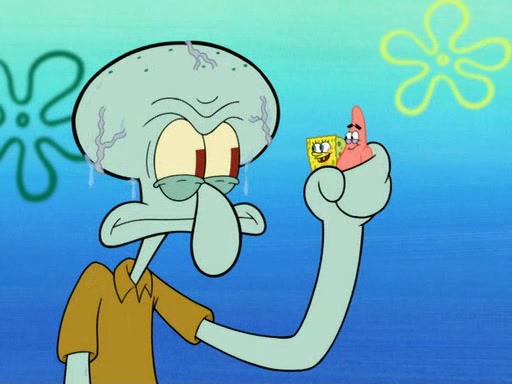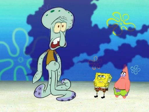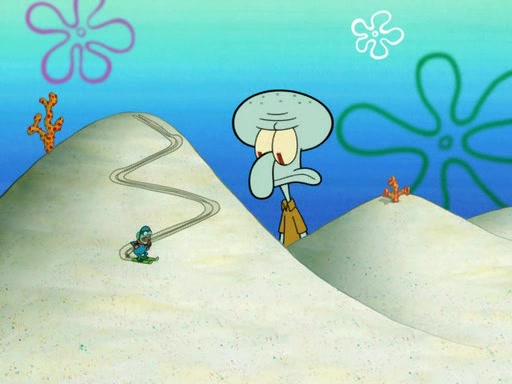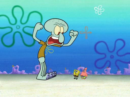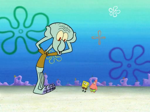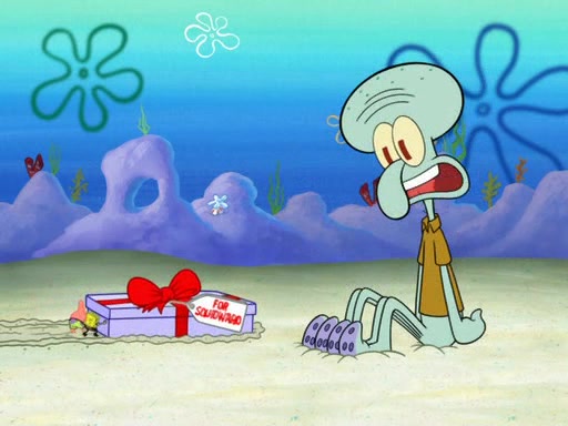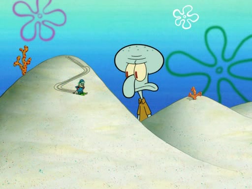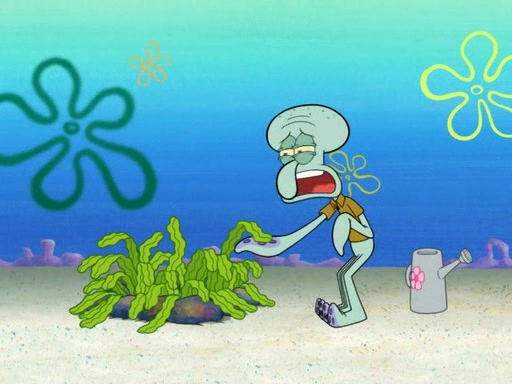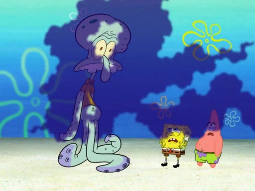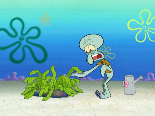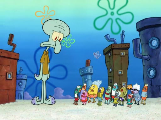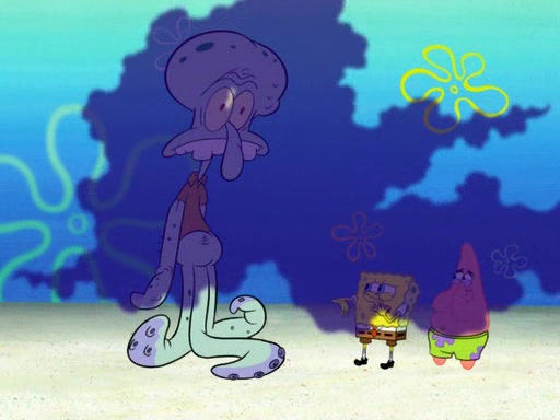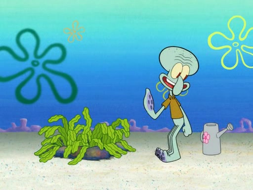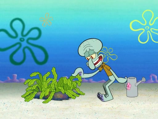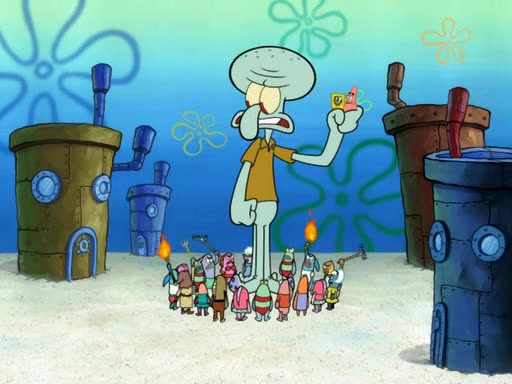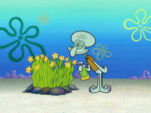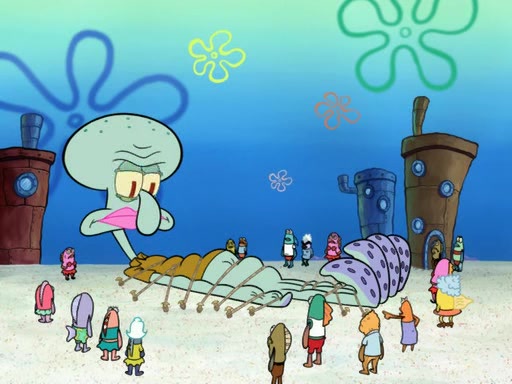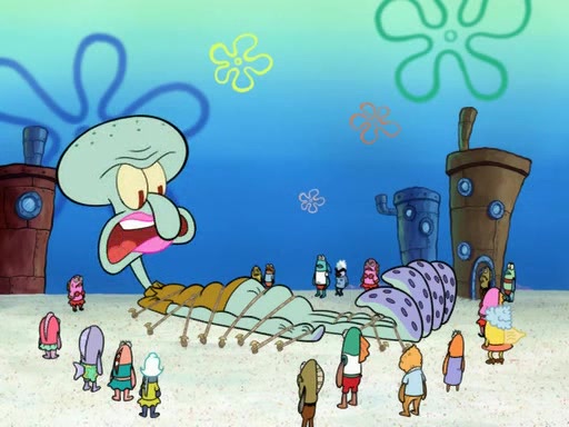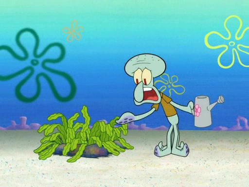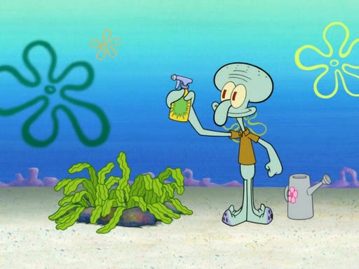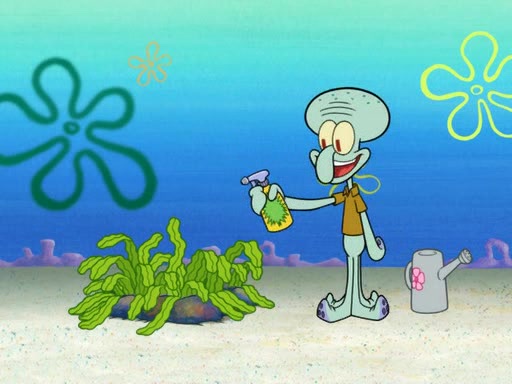 One day, Squidward is gardening when he sees that his kelp is all wilted. He uses a spray called Kelp Grow to make them grow taller and healthier. When SpongeBob and Patrick see this, they steal it from Squidward and fiddle with it by spraying things in town. Squidward gets very mad that they stole it, because one of the things they sprayed was his nose. They go around town doing "good deeds," such as expanding Gary's shell and turning one of Mr. Krabs' pennies giant because SpongeBob mentions that Mr. Krabs always wanted to make "big money" (though this wasn't what he meant). Squidward finally catches up to them and forces them to shrink his nose. However, when they try to shrink his nose, it only gets bigger. SpongeBob and Patrick decide to even out his entire body, which turns him into a "giant monster" who the residents believe to be invading Bikini Bottom. Many fish gather into a mob and threaten to hurt Squidward in various ways. A small boy appears in the crowd and suggests that Squidward might be a nice monster like the one in his storybook. To keep the Bikini Bottomites from hurting him, Squidward quickly agrees with the little boy and tells the town he can actually help them and won't destroy the town. Throughout the day, citizens ask him to help them with various things, which Squidward does to prove he is nice. He gets more and more tired from doing the town favors, though. Eventually, he gets tired and Nat sneezes which Squidward presumably didn't hear. This causes the Bikini Bottomites to turn on him as he didn't say bless you. He runs away to a remote location outside of town when the day ends, where he misses his comfortable old life and is forced to sleep on a makeshift bed of coral. He finds that Patrick and SpongeBob are having a sleepover in his belly button because they wanted to show that they still considered him a friend. Squidward forces them out, and begins crying because of what happened to him. This captures the attention of SpongeBob, who feels bad because they only enlarged Squidward as a good deed. The next day, SpongeBob and Patrick give him the greatest present that he could ever have: a giant clarinet with exquisite sound to make up for the mishap their first good deed caused. When Squidward starts playing it, he shrinks back to his normal size. He is upset that he can no longer play his giant clarinet, but realizes he still has his kelp garden. He runs home to his garden, but finds the kelp from his garden to be cut down. He wonders what happened to his garden, and SpongeBob explains that they used his kelp to make him a kelp-mache clarinet. This enrages Squidward, causing him to chase after SpongeBob and Patrick as the episode ends.