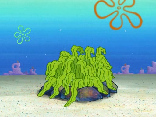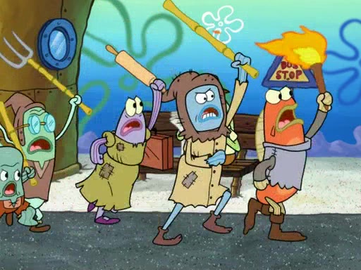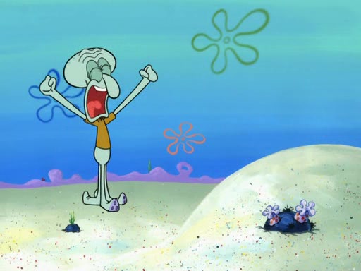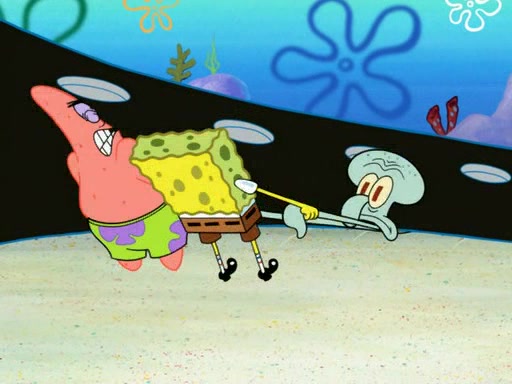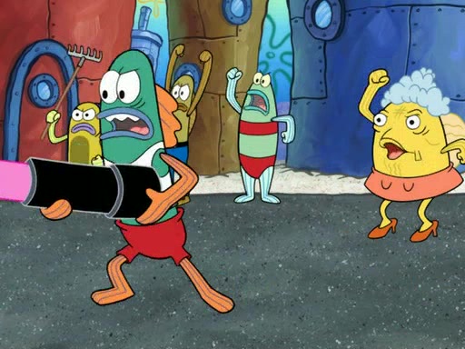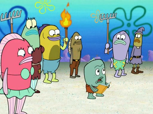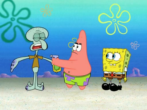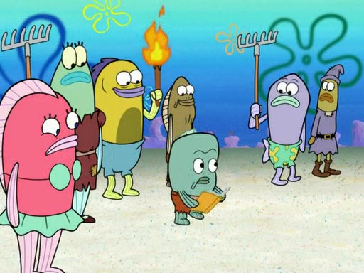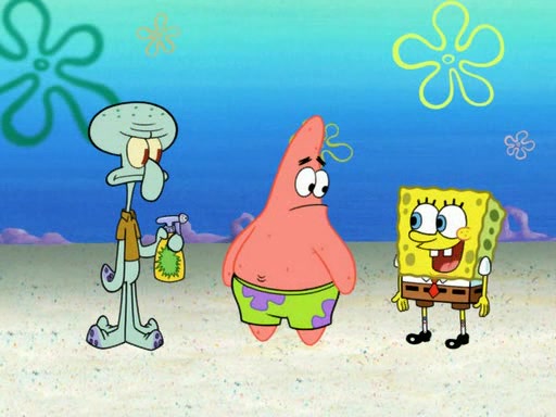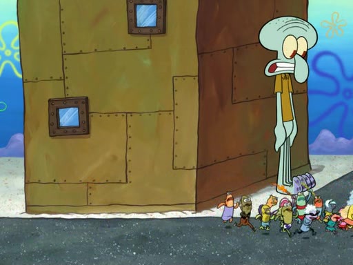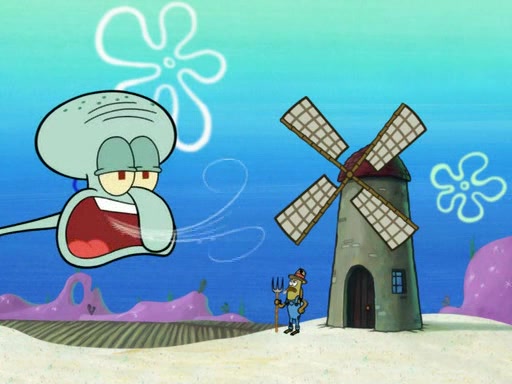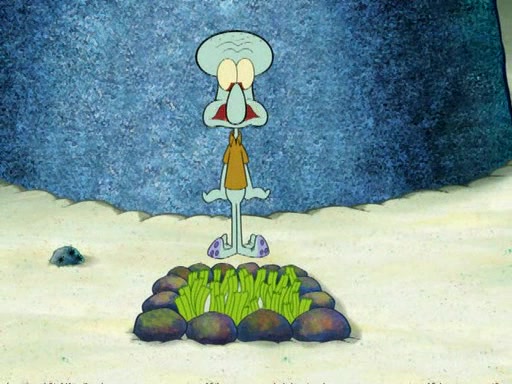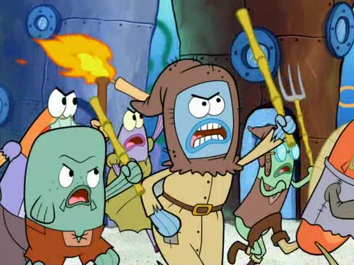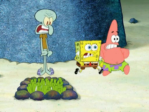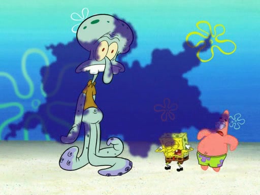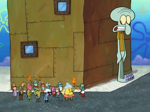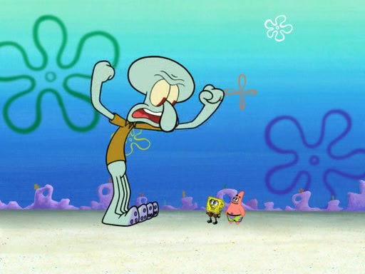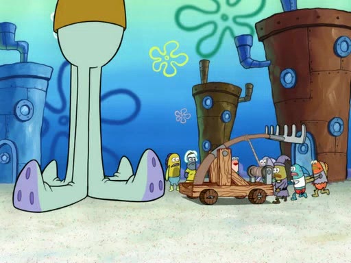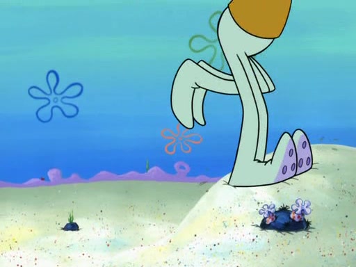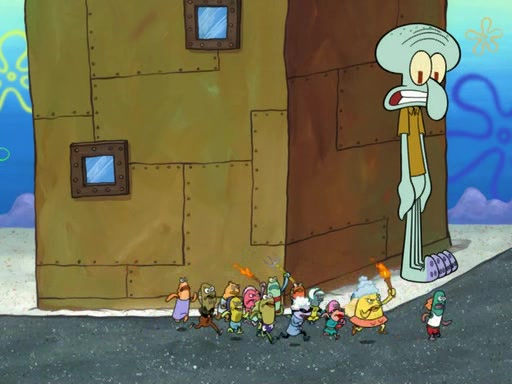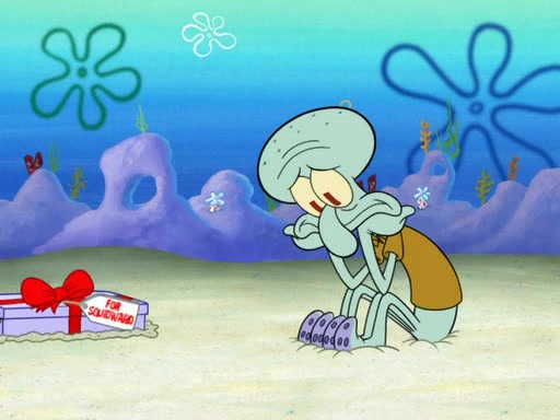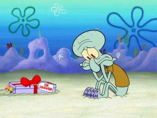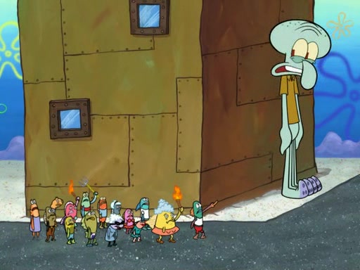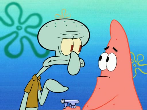 One day, Squidward is gardening when he sees that his kelp is all wilted. He uses a spray called Kelp Grow to make them grow taller and healthier. When SpongeBob and Patrick see this, they steal it from Squidward and fiddle with it by spraying things in town. Squidward gets very mad that they stole it, because one of the things they sprayed was his nose. They go around town doing "good deeds," such as expanding Gary's shell and turning one of Mr. Krabs' pennies giant because SpongeBob mentions that Mr. Krabs always wanted to make "big money" (though this wasn't what he meant). Squidward finally catches up to them and forces them to shrink his nose. However, when they try to shrink his nose, it only gets bigger. SpongeBob and Patrick decide to even out his entire body, which turns him into a "giant monster" who the residents believe to be invading Bikini Bottom. Many fish gather into a mob and threaten to hurt Squidward in various ways. A small boy appears in the crowd and suggests that Squidward might be a nice monster like the one in his storybook. To keep the Bikini Bottomites from hurting him, Squidward quickly agrees with the little boy and tells the town he can actually help them and won't destroy the town. Throughout the day, citizens ask him to help them with various things, which Squidward does to prove he is nice. He gets more and more tired from doing the town favors, though. Eventually, he gets tired and Nat sneezes which Squidward presumably didn't hear. This causes the Bikini Bottomites to turn on him as he didn't say bless you. He runs away to a remote location outside of town when the day ends, where he misses his comfortable old life and is forced to sleep on a makeshift bed of coral. He finds that Patrick and SpongeBob are having a sleepover in his belly button because they wanted to show that they still considered him a friend. Squidward forces them out, and begins crying because of what happened to him. This captures the attention of SpongeBob, who feels bad because they only enlarged Squidward as a good deed. The next day, SpongeBob and Patrick give him the greatest present that he could ever have: a giant clarinet with exquisite sound to make up for the mishap their first good deed caused. When Squidward starts playing it, he shrinks back to his normal size. He is upset that he can no longer play his giant clarinet, but realizes he still has his kelp garden. He runs home to his garden, but finds the kelp from his garden to be cut down. He wonders what happened to his garden, and SpongeBob explains that they used his kelp to make him a kelp-mache clarinet. This enrages Squidward, causing him to chase after SpongeBob and Patrick as the episode ends.