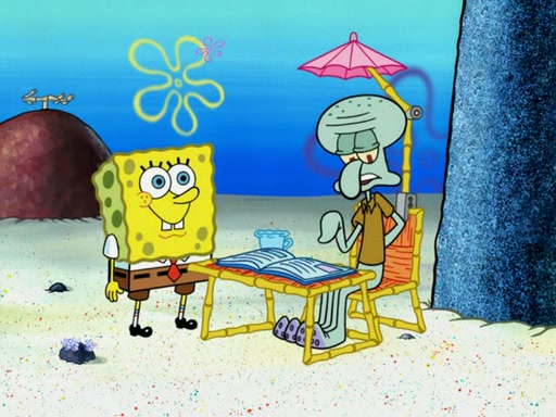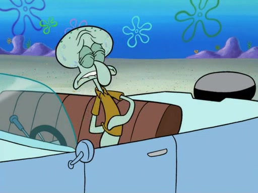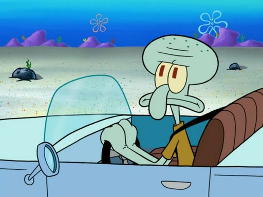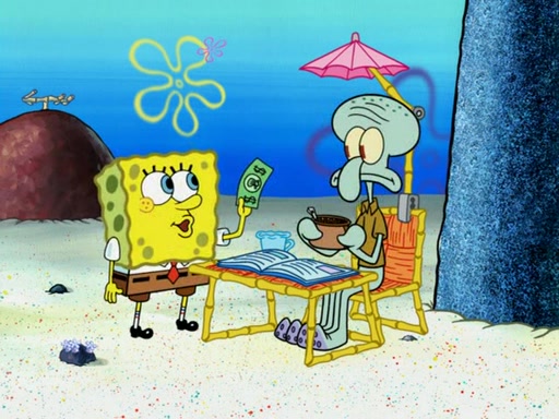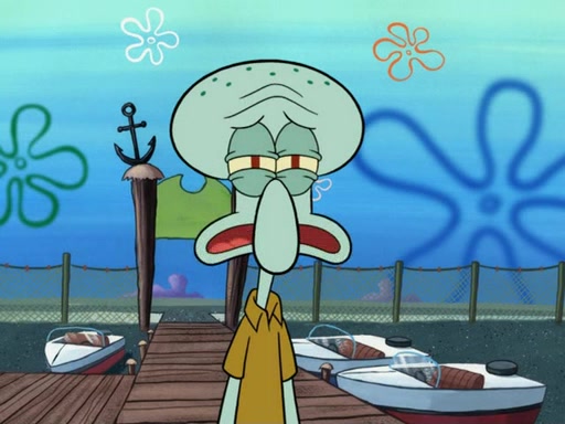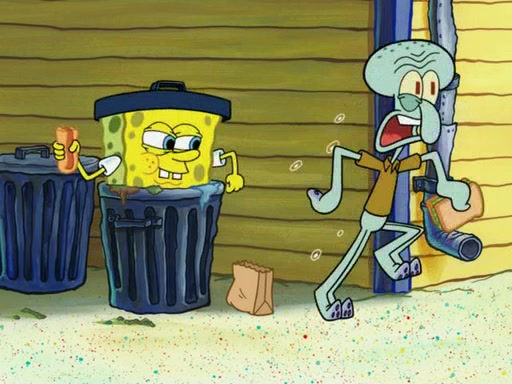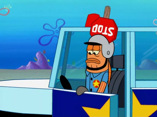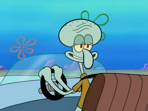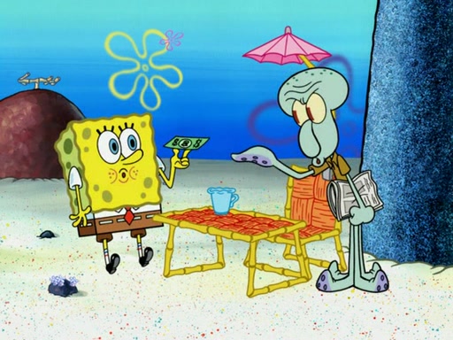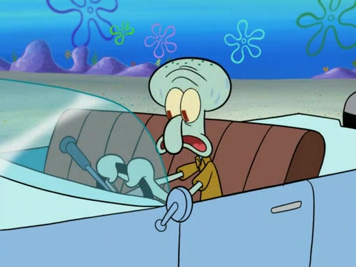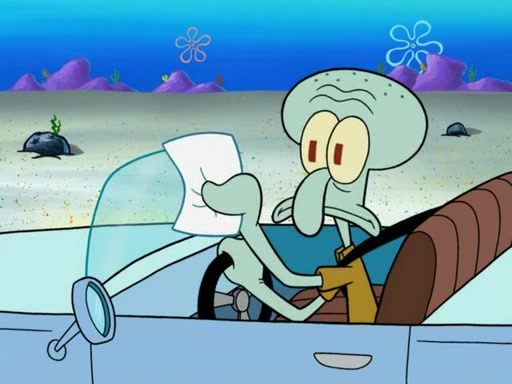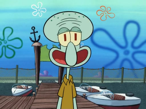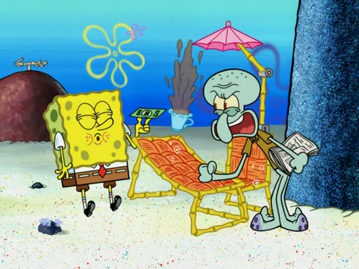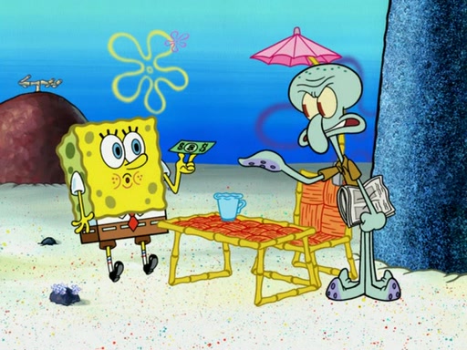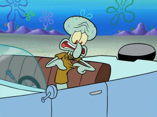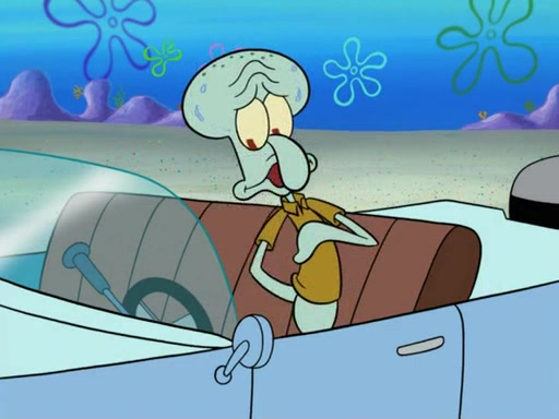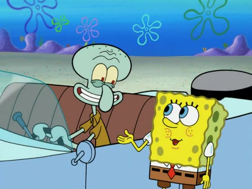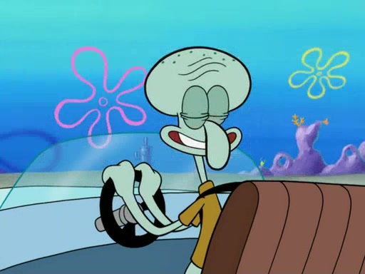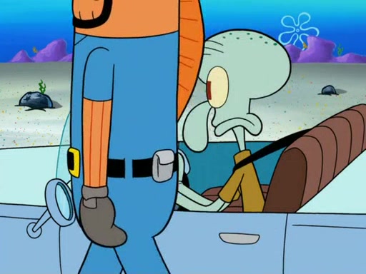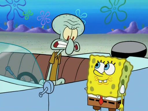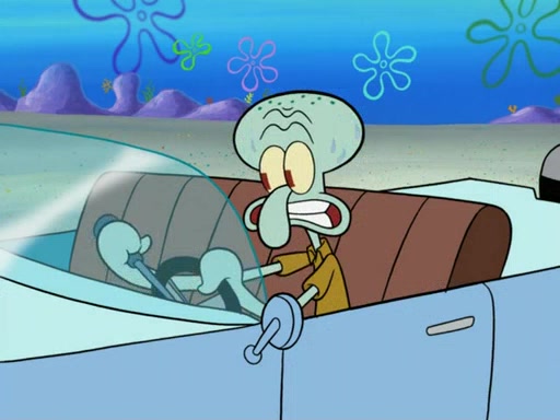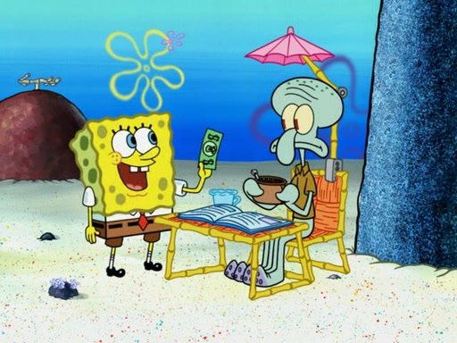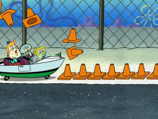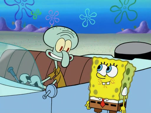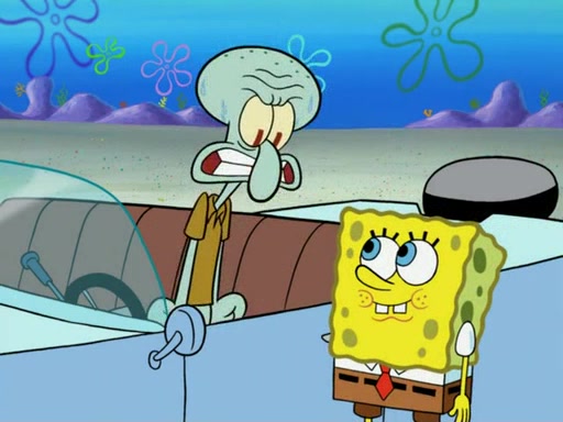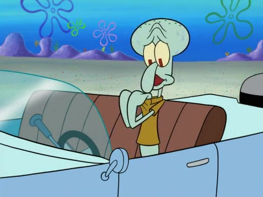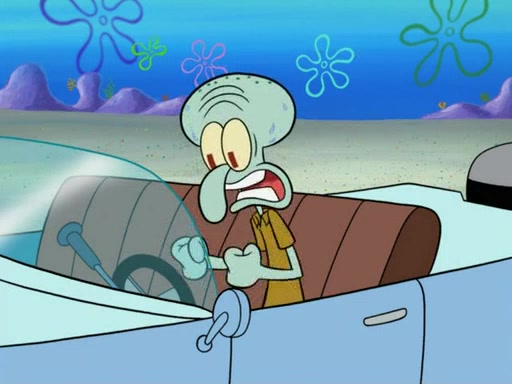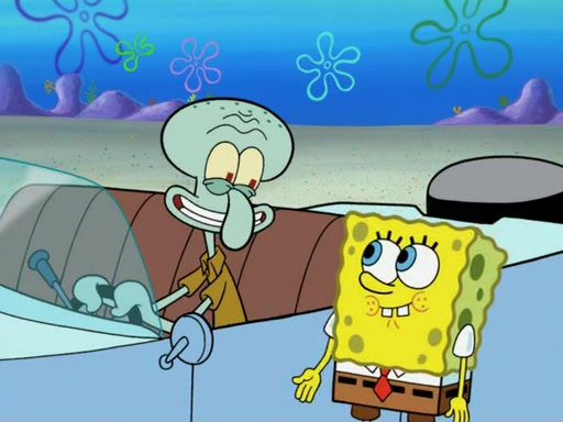 SpongeBob is brushing Gary when he hears a strange noise. He goes outside to investigate, only to find out that it's Squidward breathing. Squidward then tells SpongeBob that he will pay him five dollars if he gives him peace and quiet for the rest of the day. However, Squidward already gave SpongeBob five dollars to leave him alone yesterday. He gets annoyed, so Squidward begins walking away. He then finds out that SpongeBob is following him, so he starts running and he jumps into his boat. However, he can't find the key and SpongeBob arrives at Squidward's boat. Squidward then becomes furious, only to find out that SpongeBob wanted to give him his keys. Squidward then drives away and literally drives through a stop sign. He then gets pulled over by a police man, telling him that he needs to go to boating school.