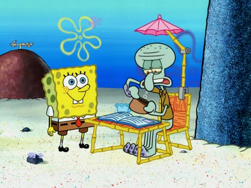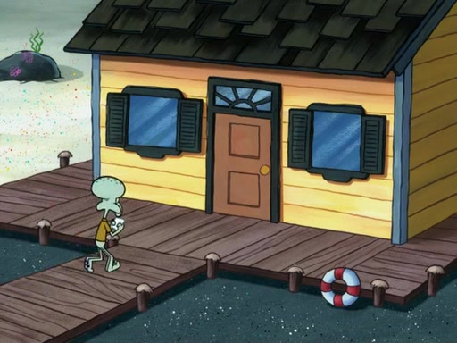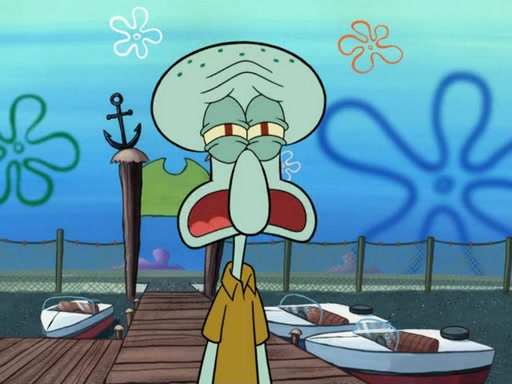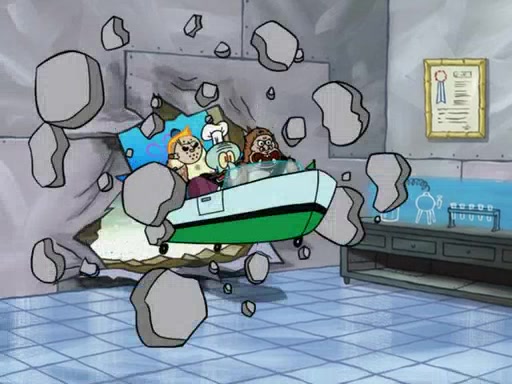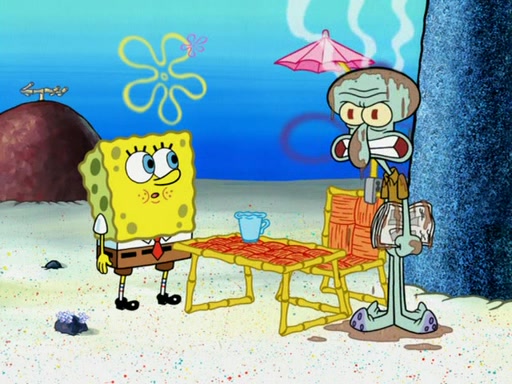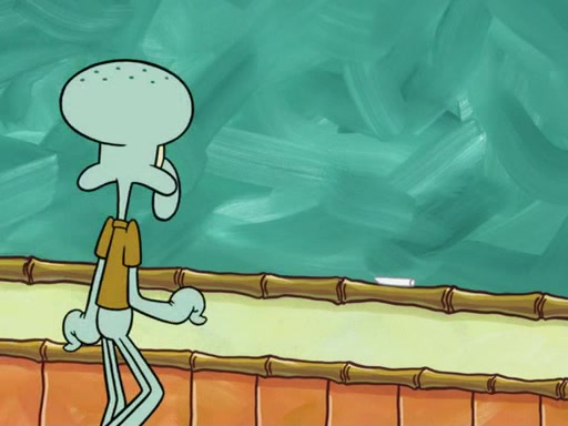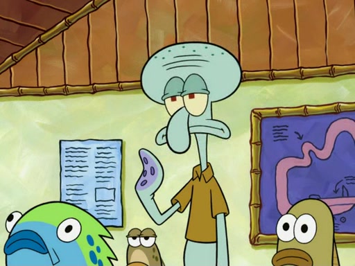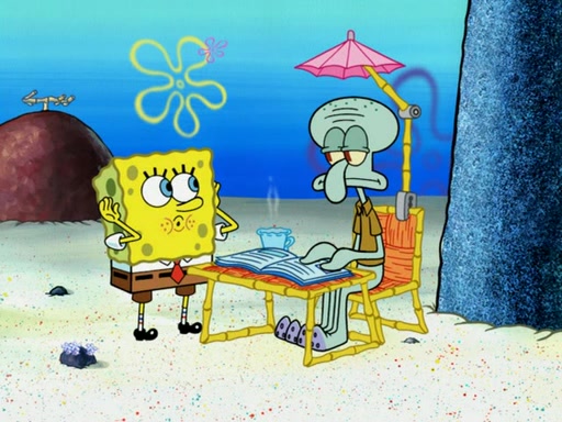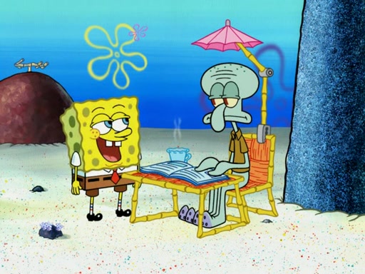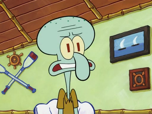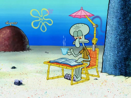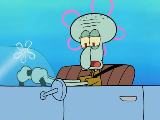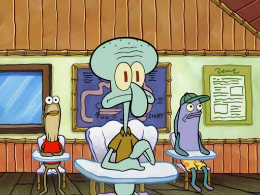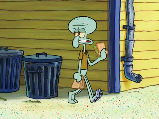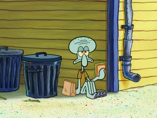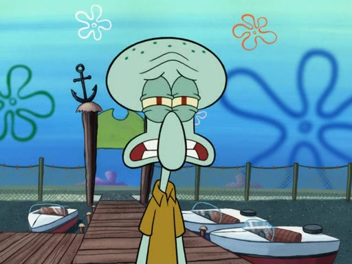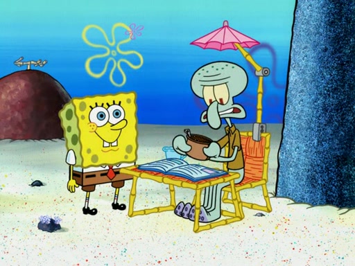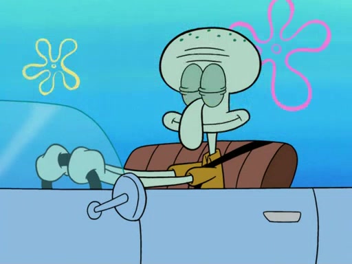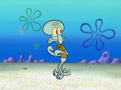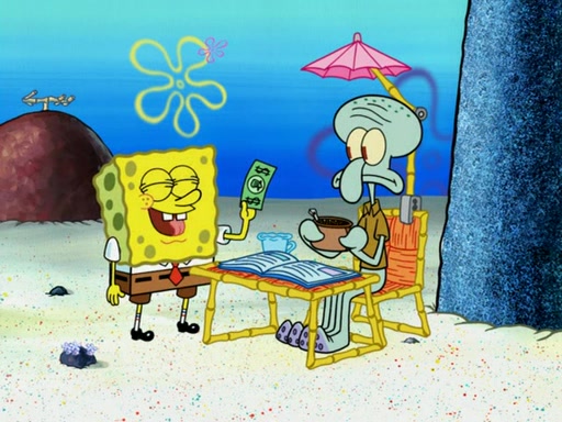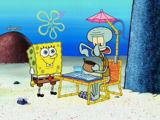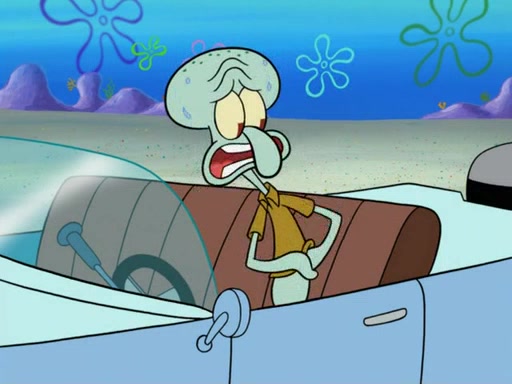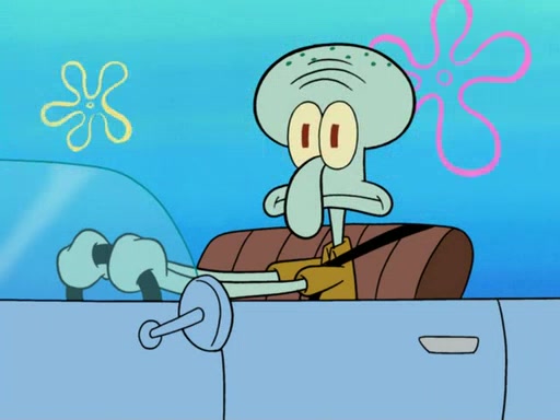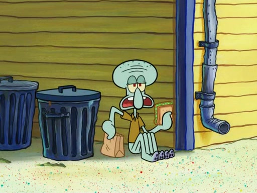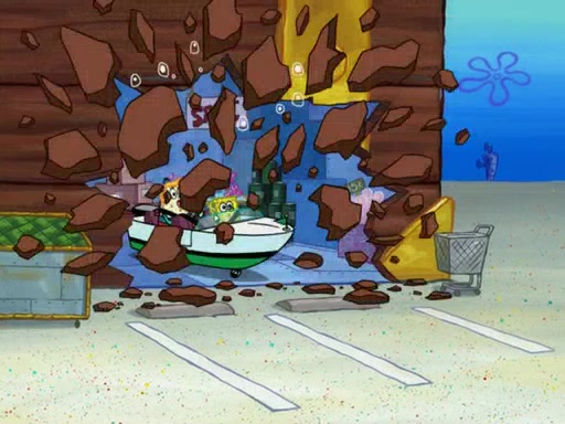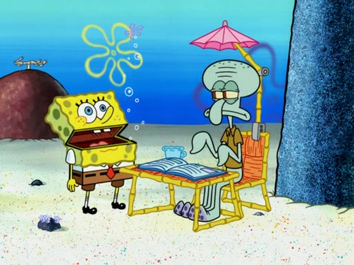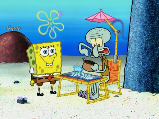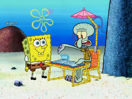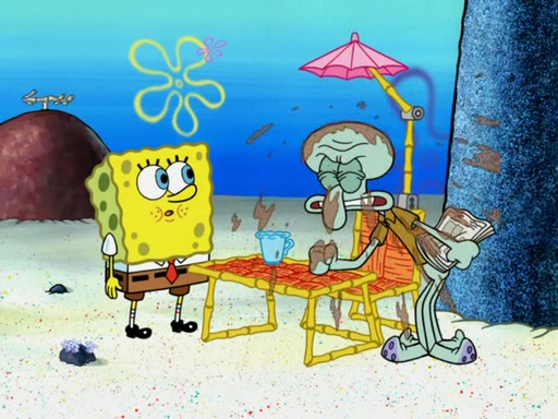 SpongeBob is brushing Gary when he hears a strange noise. He goes outside to investigate, only to find out that it's Squidward breathing. Squidward then tells SpongeBob that he will pay him five dollars if he gives him peace and quiet for the rest of the day. However, Squidward already gave SpongeBob five dollars to leave him alone yesterday. He gets annoyed, so Squidward begins walking away. He then finds out that SpongeBob is following him, so he starts running and he jumps into his boat. However, he can't find the key and SpongeBob arrives at Squidward's boat. Squidward then becomes furious, only to find out that SpongeBob wanted to give him his keys. Squidward then drives away and literally drives through a stop sign. He then gets pulled over by a police man, telling him that he needs to go to boating school.