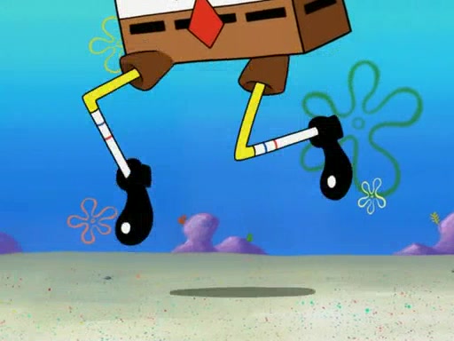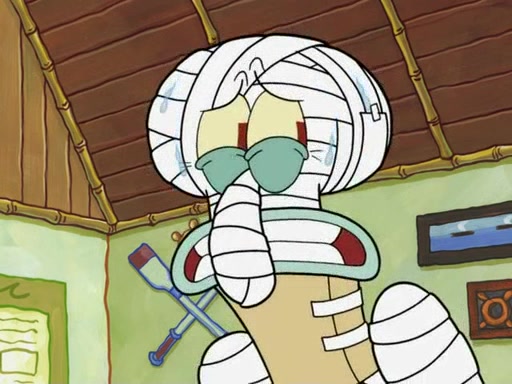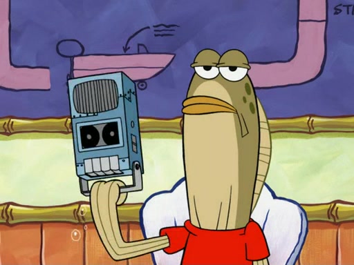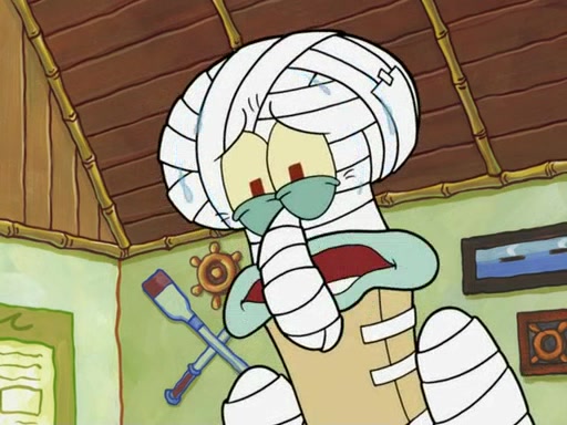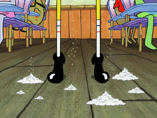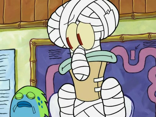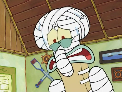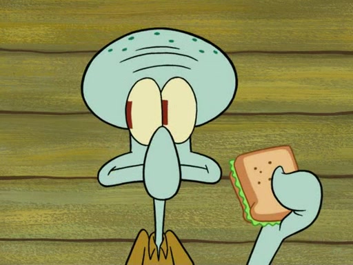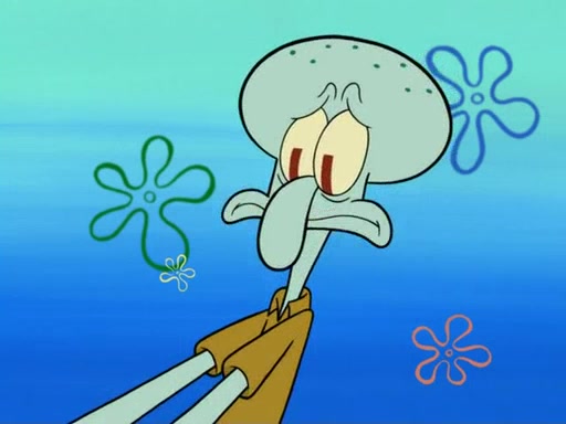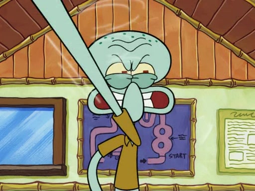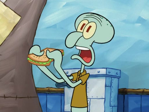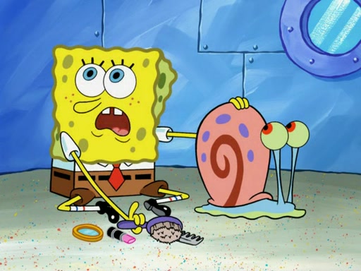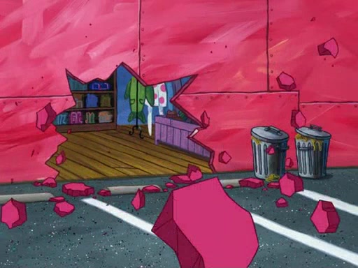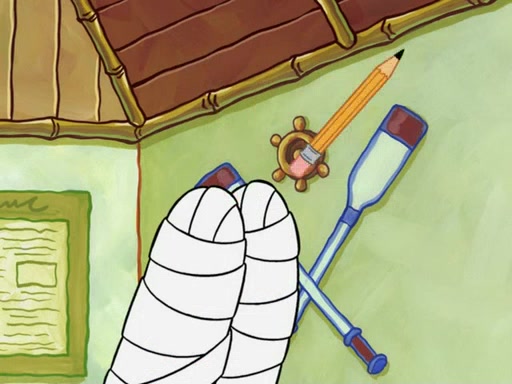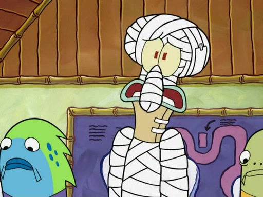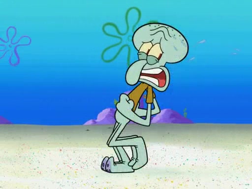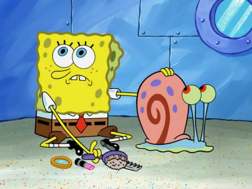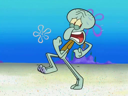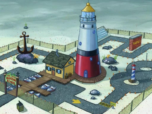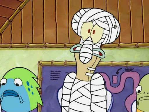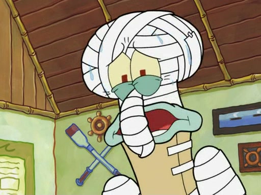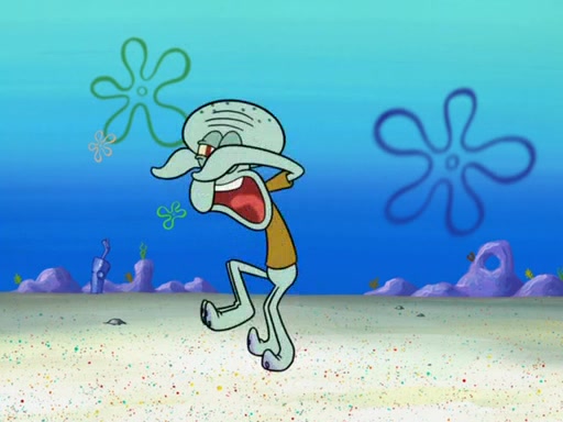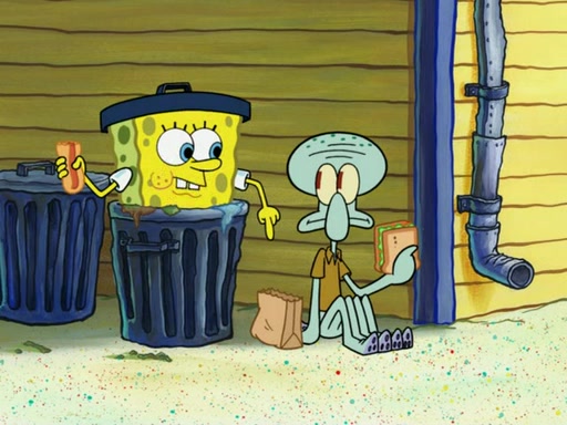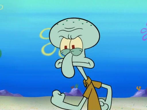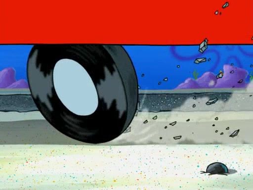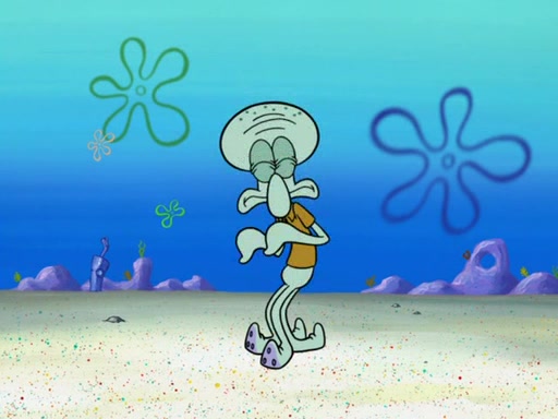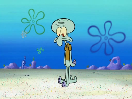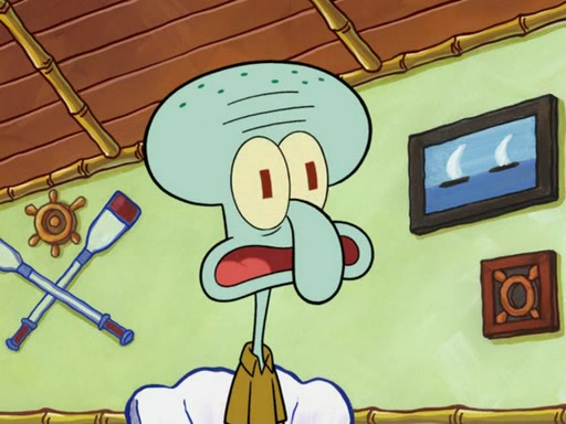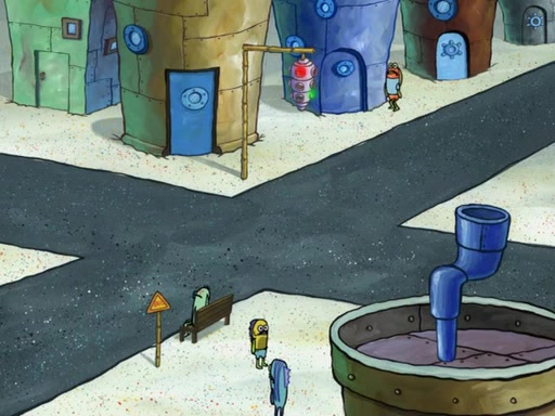 SpongeBob is brushing Gary when he hears a strange noise. He goes outside to investigate, only to find out that it's Squidward breathing. Squidward then tells SpongeBob that he will pay him five dollars if he gives him peace and quiet for the rest of the day. However, Squidward already gave SpongeBob five dollars to leave him alone yesterday. He gets annoyed, so Squidward begins walking away. He then finds out that SpongeBob is following him, so he starts running and he jumps into his boat. However, he can't find the key and SpongeBob arrives at Squidward's boat. Squidward then becomes furious, only to find out that SpongeBob wanted to give him his keys. Squidward then drives away and literally drives through a stop sign. He then gets pulled over by a police man, telling him that he needs to go to boating school.