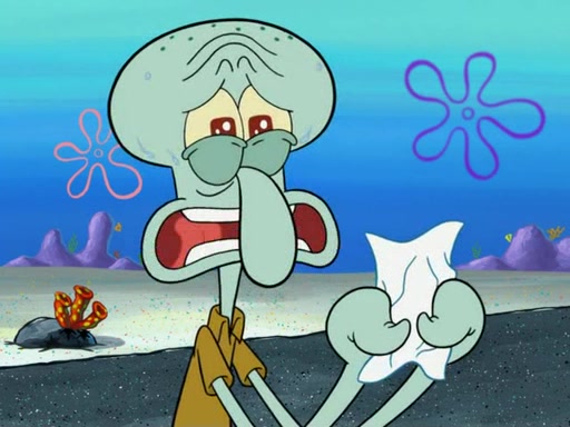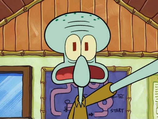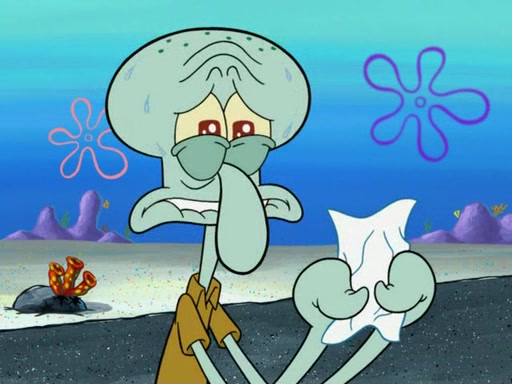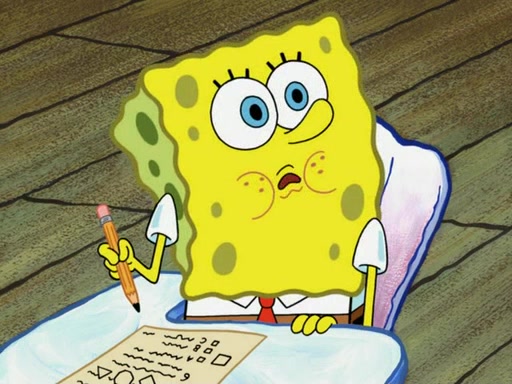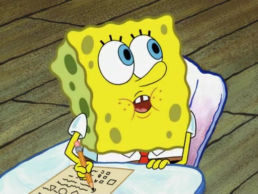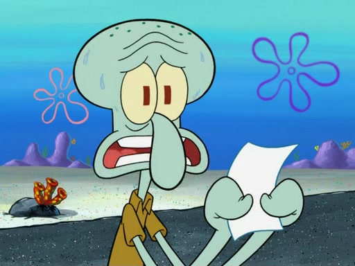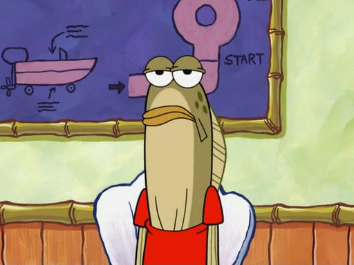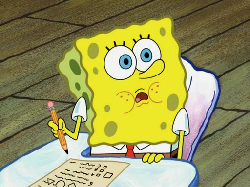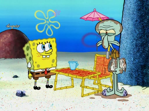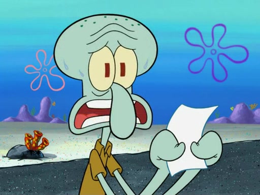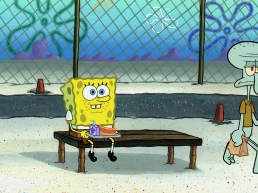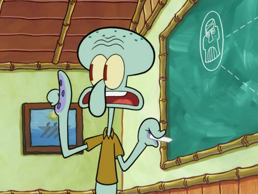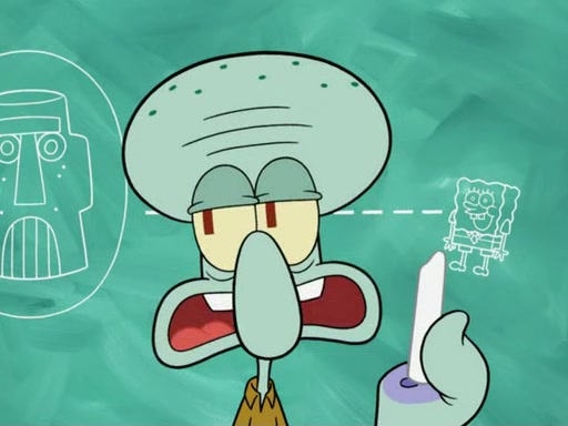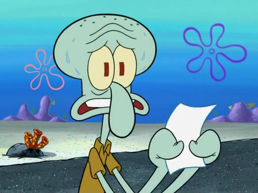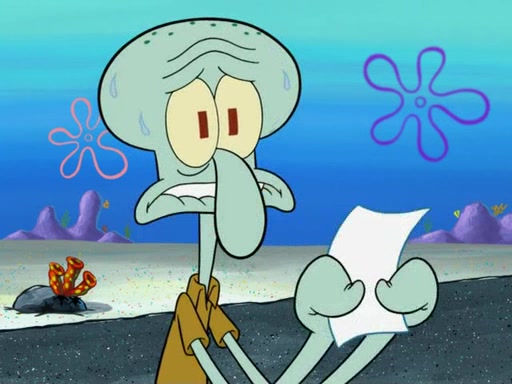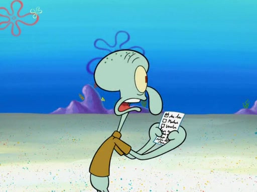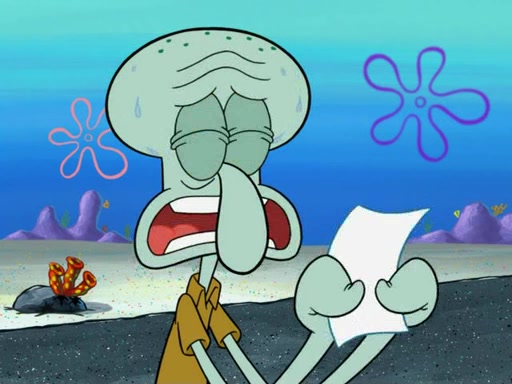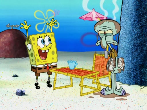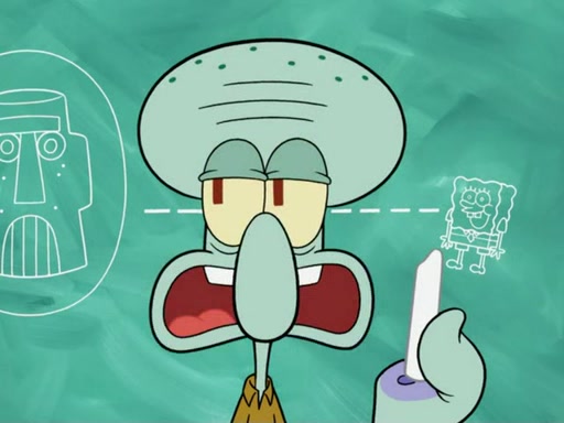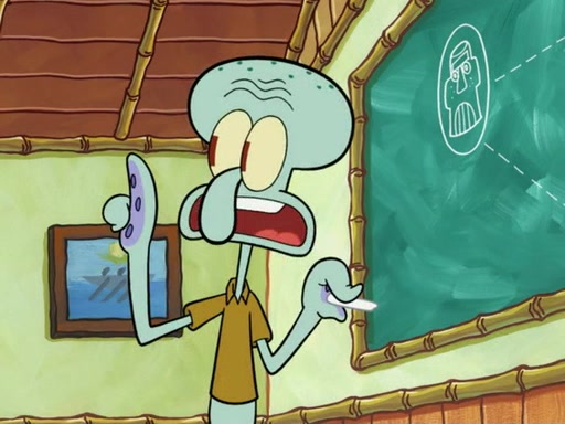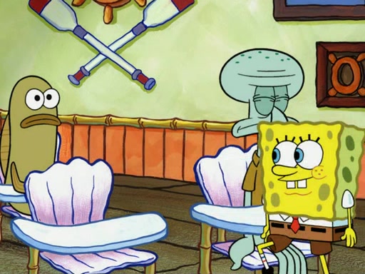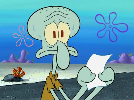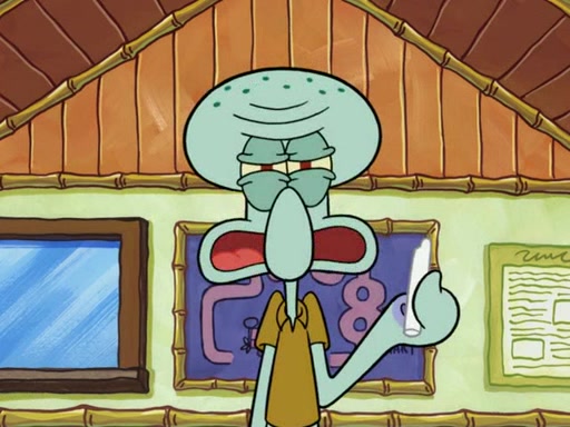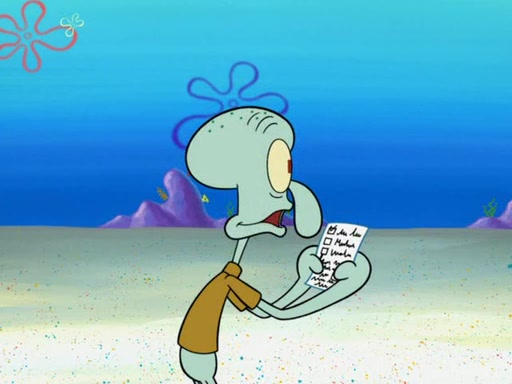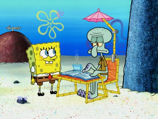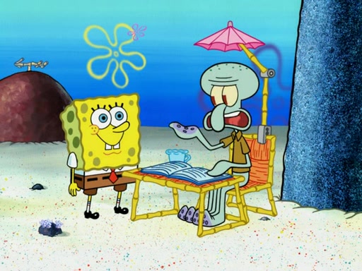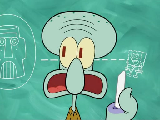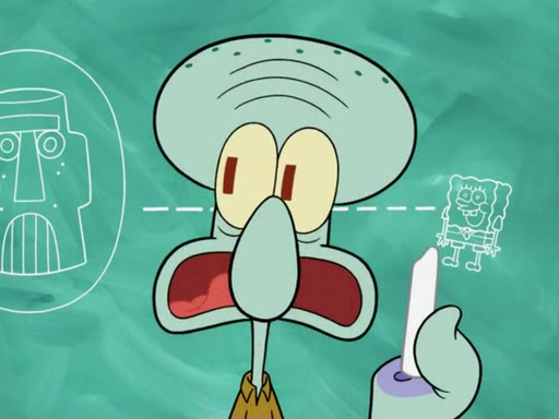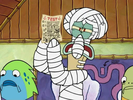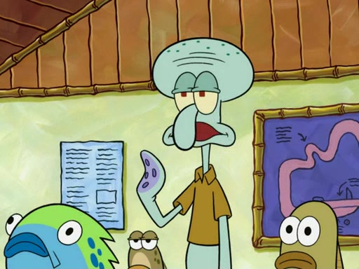 Then the scene changes to everyone back in class. Mrs. Puff explains that everyone is going to do a test. But when SpongeBob tries to help him, Squidward snaps at him that they aren't "Boating Buddies" and he never wants help from him ever again. SpongeBob's feelings are hurt. However, Squidward can't do the test because he can't pick up the pencil, so he asks for SpongeBob's help; when the young sponge reminds him of what he said, Squidward denies it, only for his voice to be recorded by another student. Finally, when Squidward admits that he and SpongeBob are "Boating Buddies," SpongeBob cheers. But time runs out and Squidward asks Mrs. Puff what to do. She then says that he needs to come back the next week. Then Squidward finds out that SpongeBob also failed the test and he has to come back the next week too, and Squidward screams and the episode ends.
