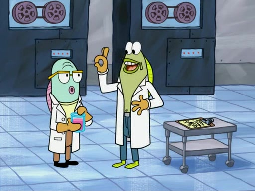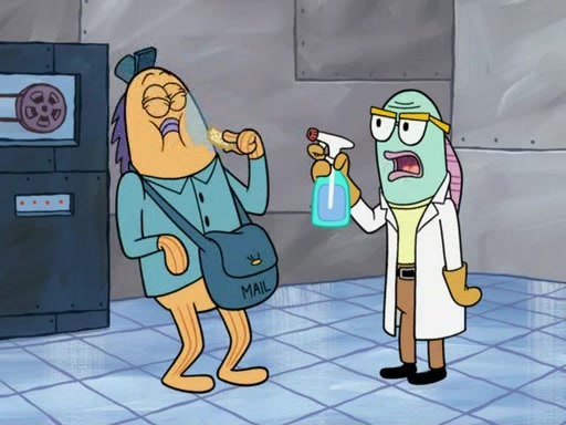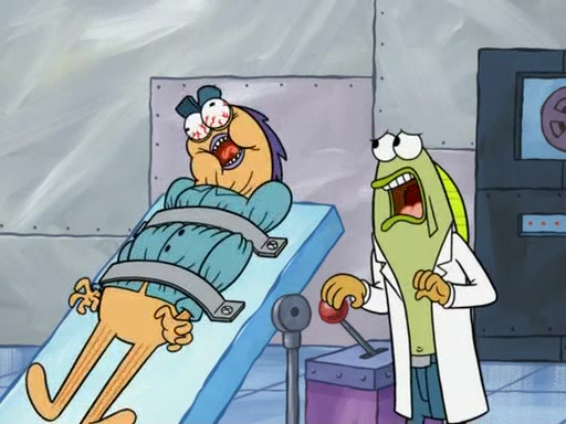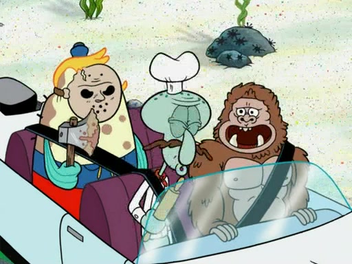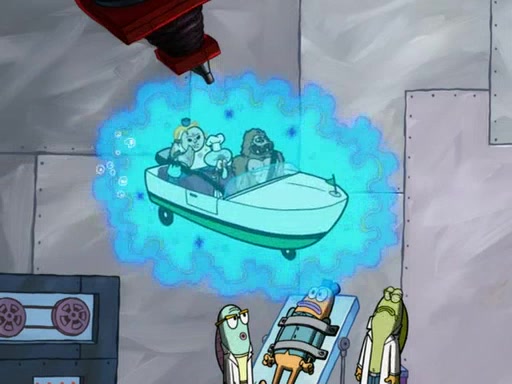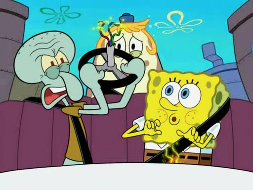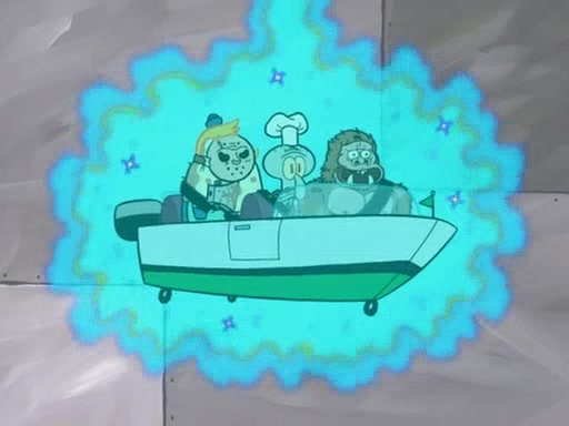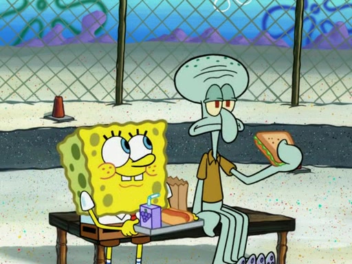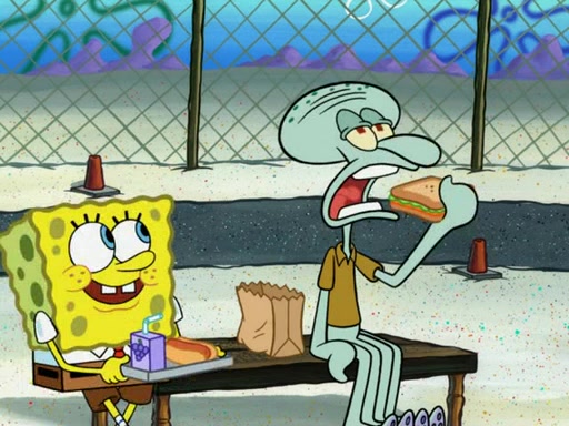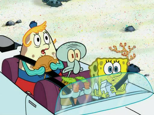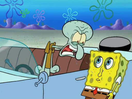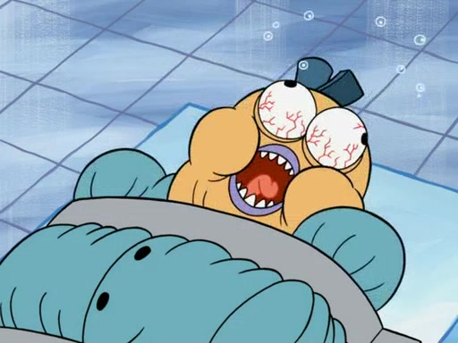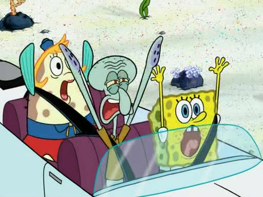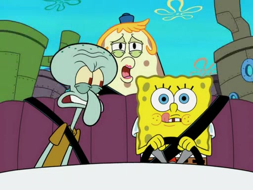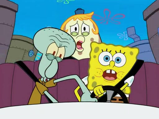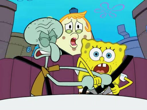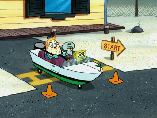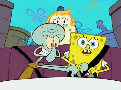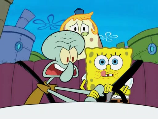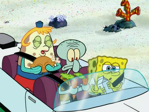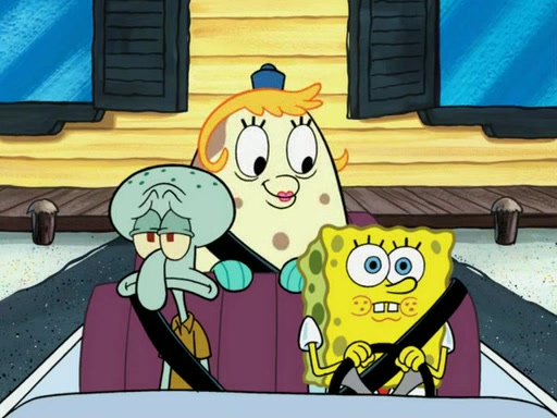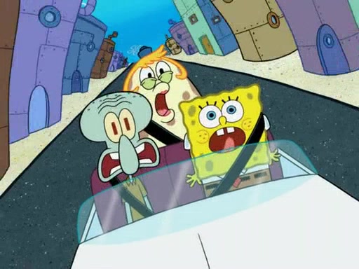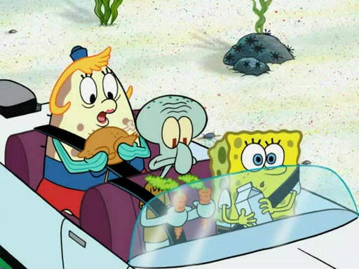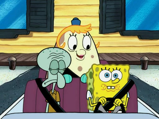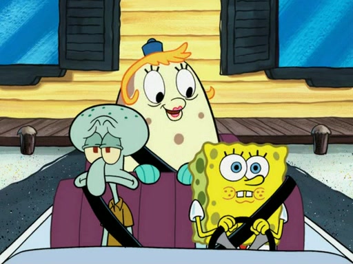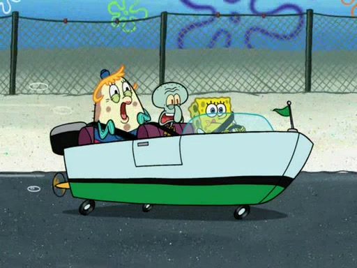 Then it is lunchtime and Squidward tries to avoid SpongeBob. He then decides to eat in the bathroom, where he gets beat up. Then he arrives back in class with SpongeBob and Mrs. Puff tells him that he has to drive with SpongeBob for a test. So they get inside a boat and SpongeBob is the driver. However, he drives out of control and ends up in a research lab. There, he, Squidward, and Mrs. Puff shrink and get washed down the drain. SpongeBob and Mrs. Puff end up in a water fountain back at Mrs. Puff's Boating School, while Squidward ends up in the bathroom and gets beat up again.