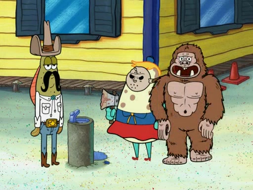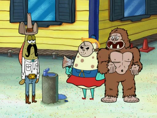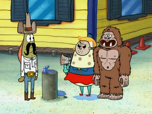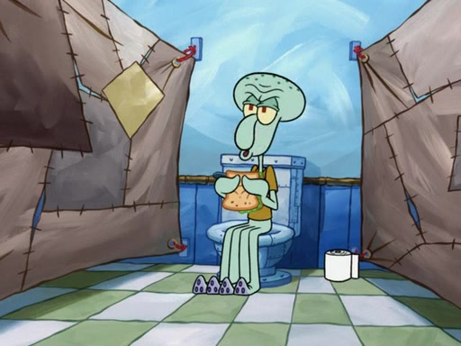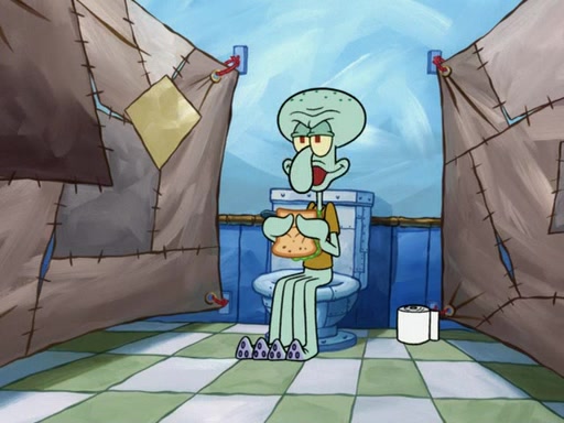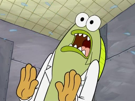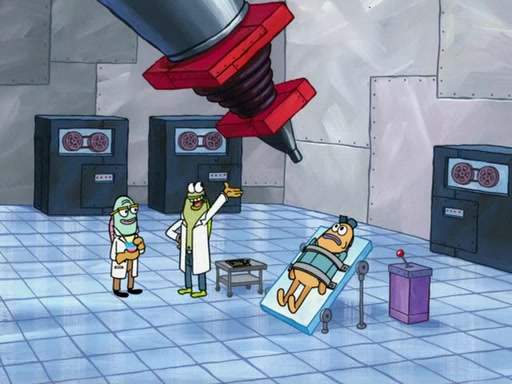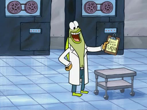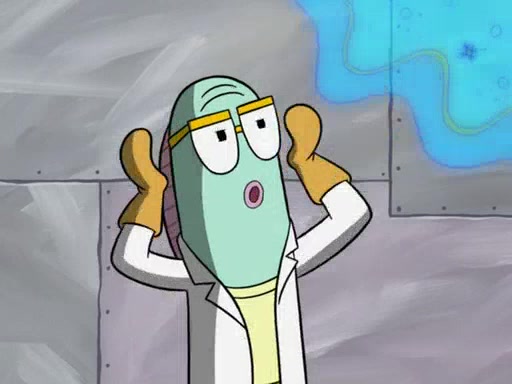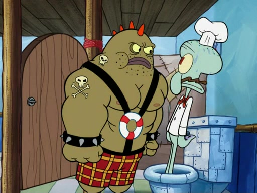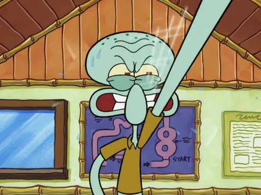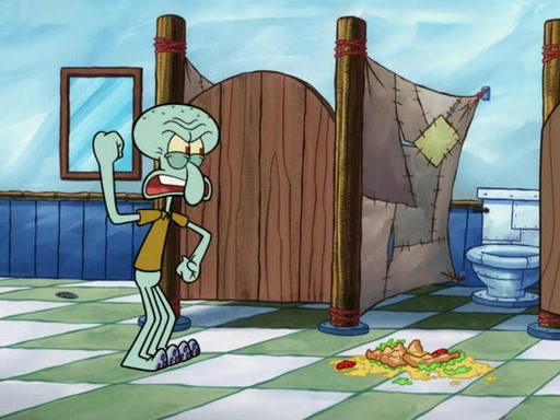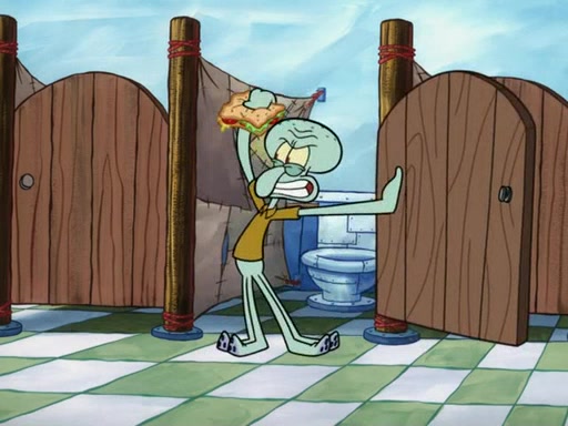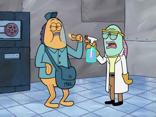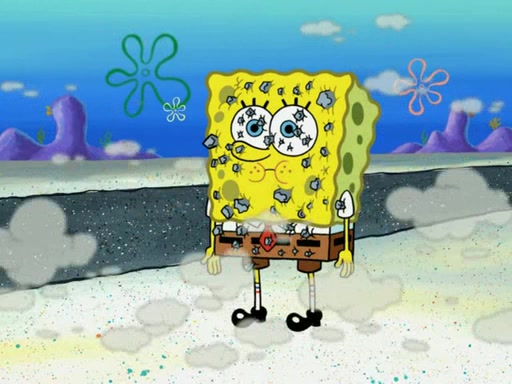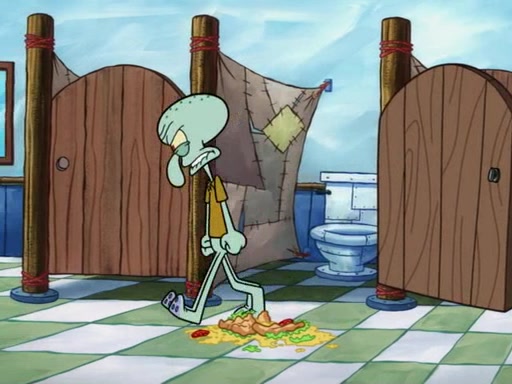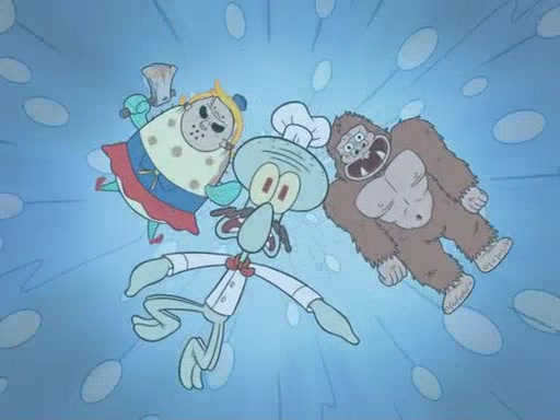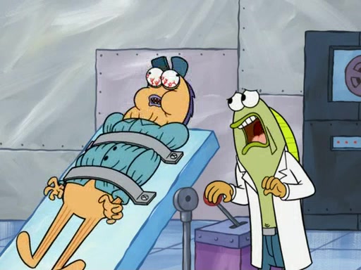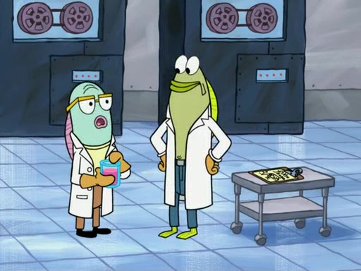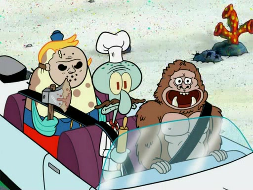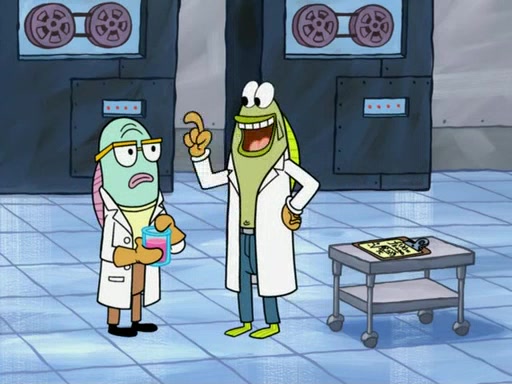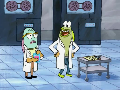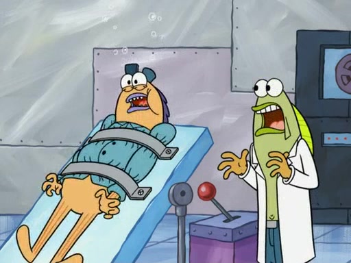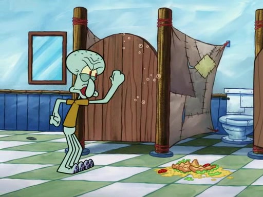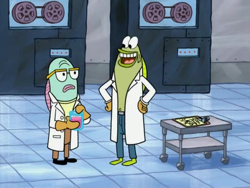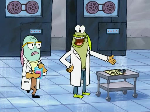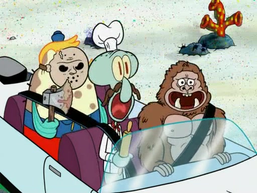Then it is lunchtime and Squidward tries to avoid SpongeBob. He then decides to eat in the bathroom, where he gets beat up. Then he arrives back in class with SpongeBob and Mrs. Puff tells him that he has to drive with SpongeBob for a test. So they get inside a boat and SpongeBob is the driver. However, he drives out of control and ends up in a research lab. There, he, Squidward, and Mrs. Puff shrink and get washed down the drain. SpongeBob and Mrs. Puff end up in a water fountain back at Mrs. Puff's Boating School, while Squidward ends up in the bathroom and gets beat up again.