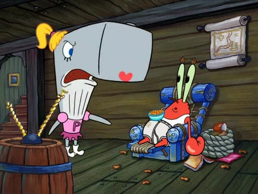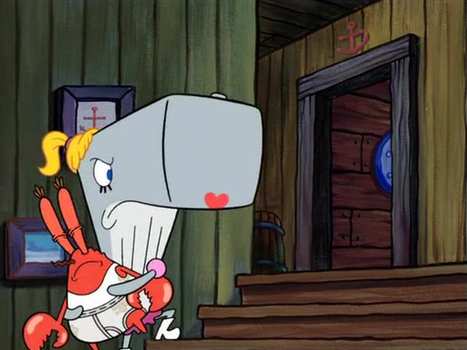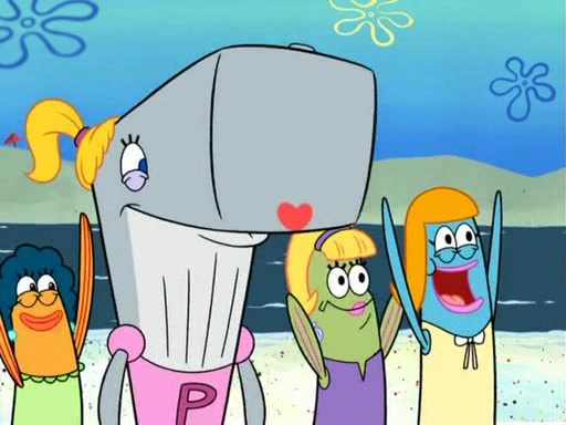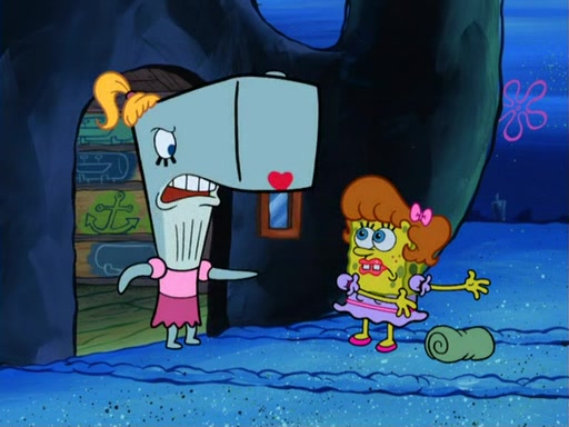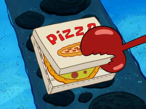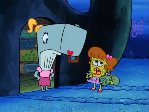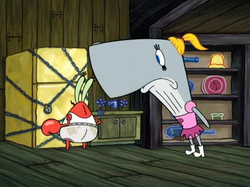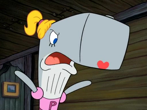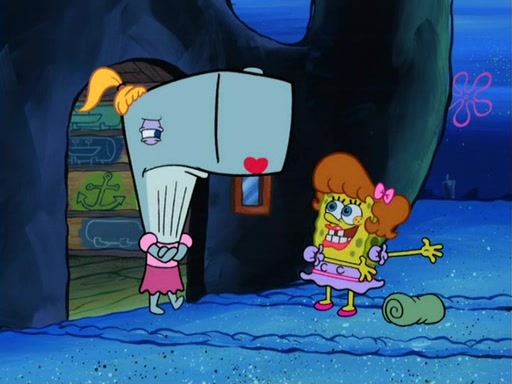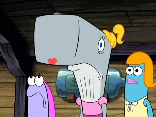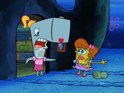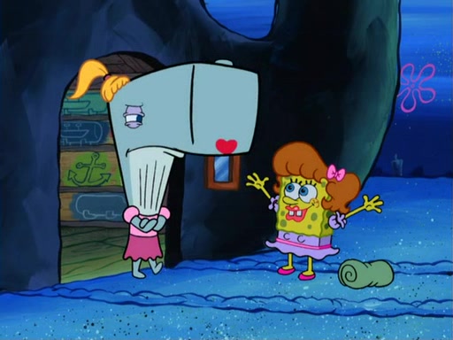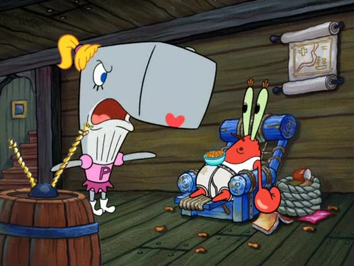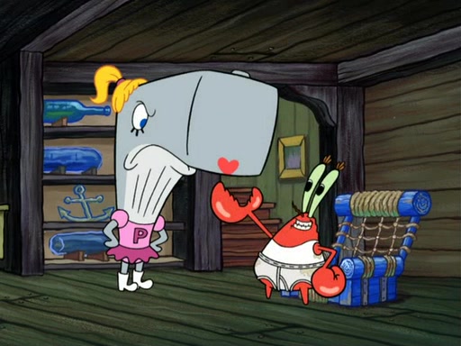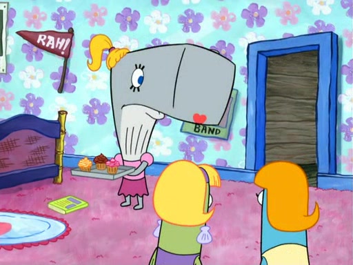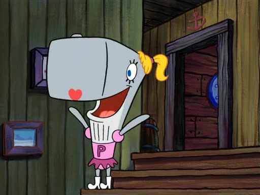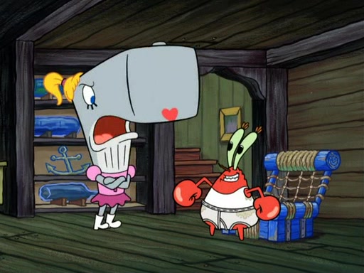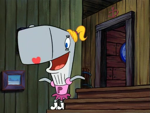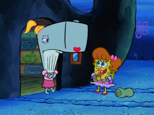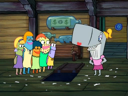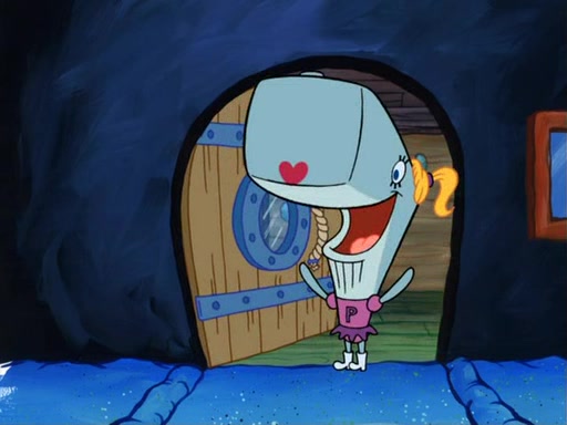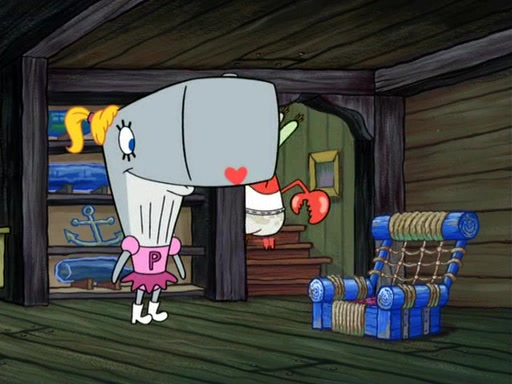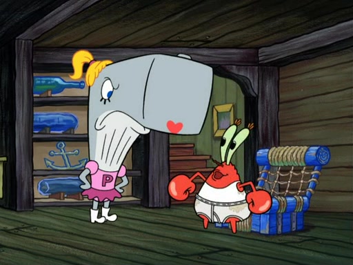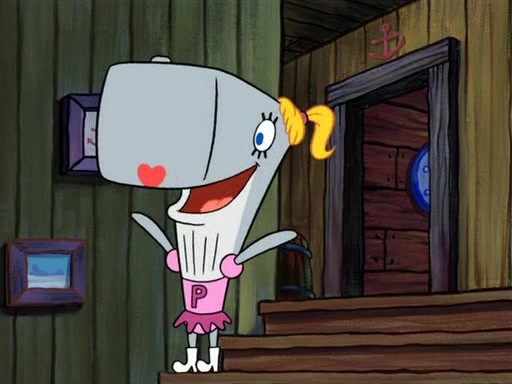 Meanwhile, a girl named Girly TeenGirl from Farawayville that looks like SpongeBob arrives at Krabs and Pearl's house, asking to get in. However, Pearl thinks she is SpongeBob and she and her friends ransack the girl, who runs home crying. At the time, Mr. Krabs and SpongeBob (who wasn't in disguise yet, meaning that the girl wasn't SpongeBob) pretend to be pizza deliverers. Unfortunately, SpongeBob is caught during the scuffle and is left behind as Mr. Krabs flees. As a result, he had been turned into pizza by the girls and sent back to Mr. Krabs, telling him that he failed the plan.