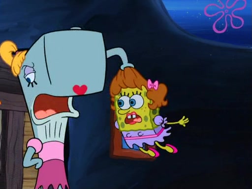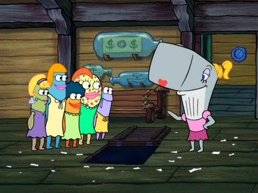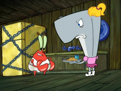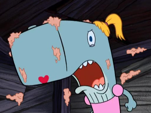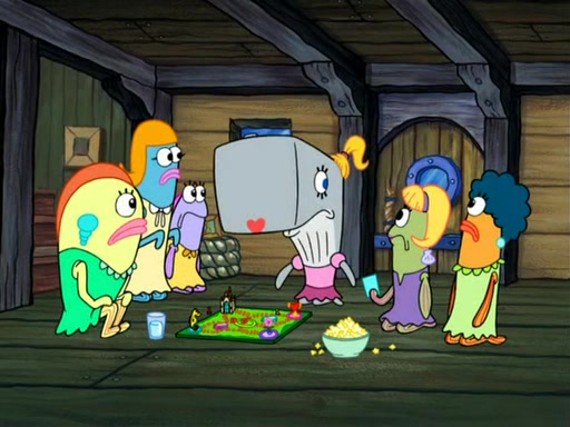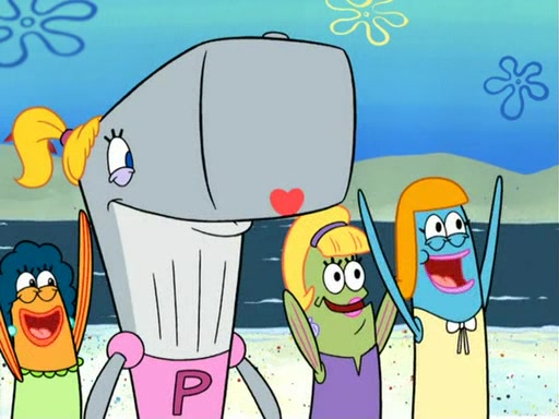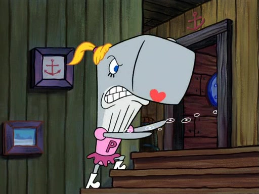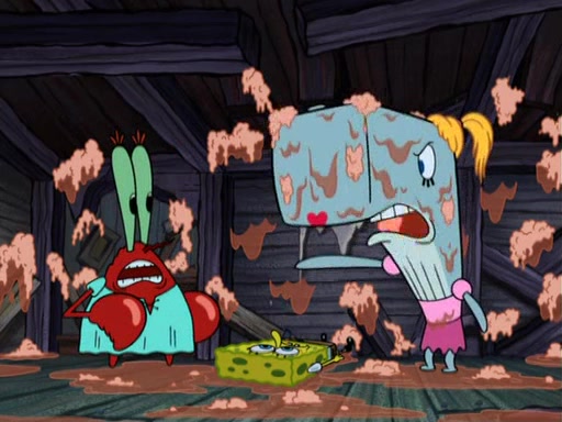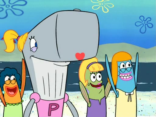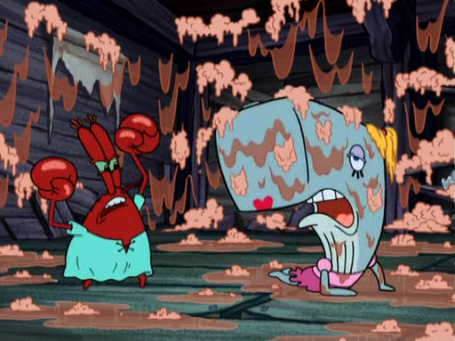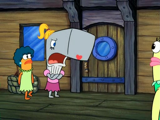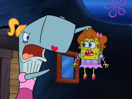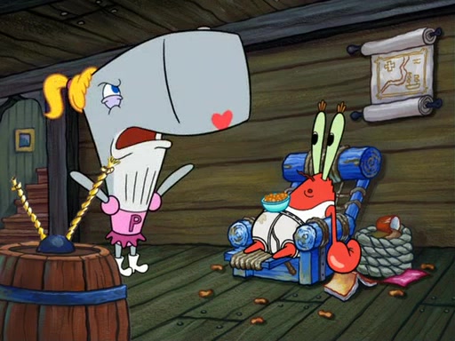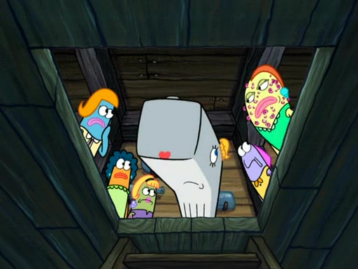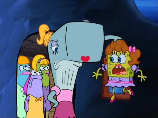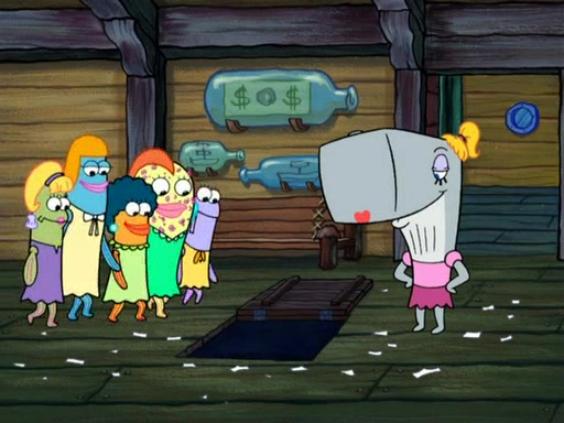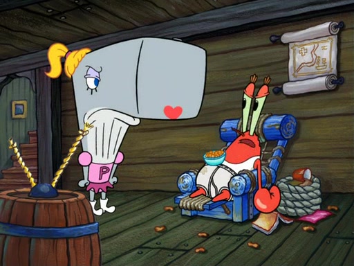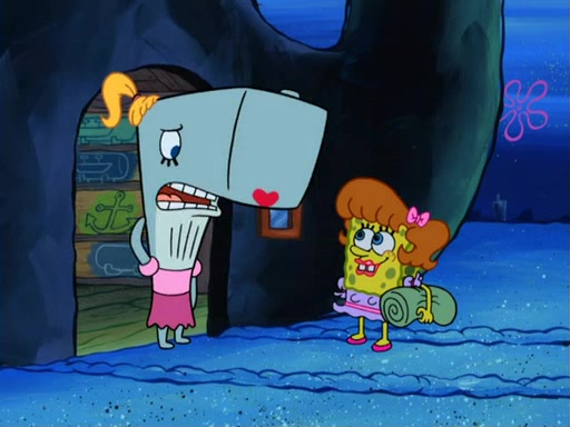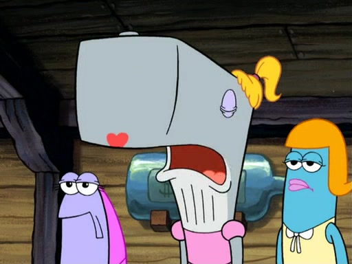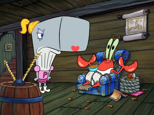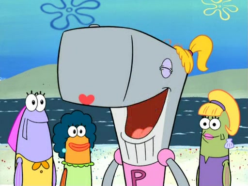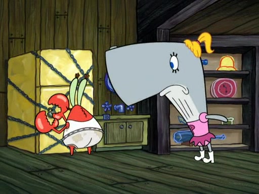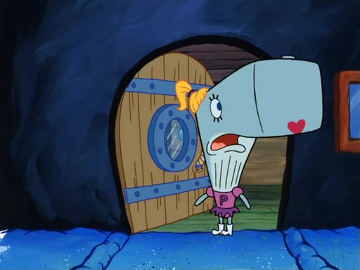 Meanwhile, a girl named Girly TeenGirl from Farawayville that looks like SpongeBob arrives at Krabs and Pearl's house, asking to get in. However, Pearl thinks she is SpongeBob and she and her friends ransack the girl, who runs home crying. At the time, Mr. Krabs and SpongeBob (who wasn't in disguise yet, meaning that the girl wasn't SpongeBob) pretend to be pizza deliverers. Unfortunately, SpongeBob is caught during the scuffle and is left behind as Mr. Krabs flees. As a result, he had been turned into pizza by the girls and sent back to Mr. Krabs, telling him that he failed the plan.