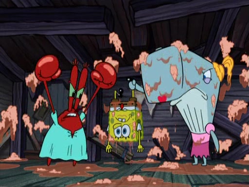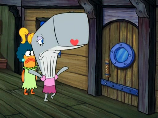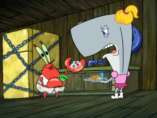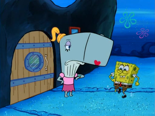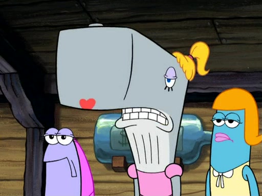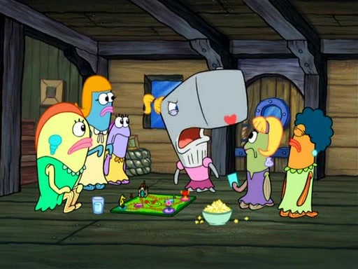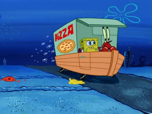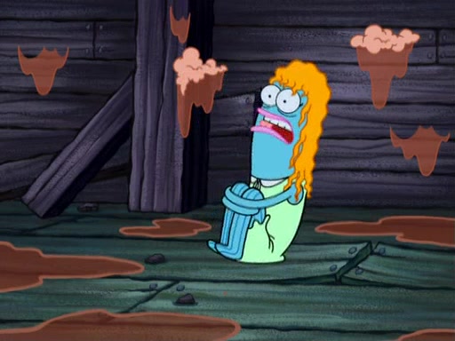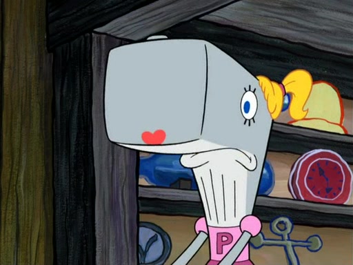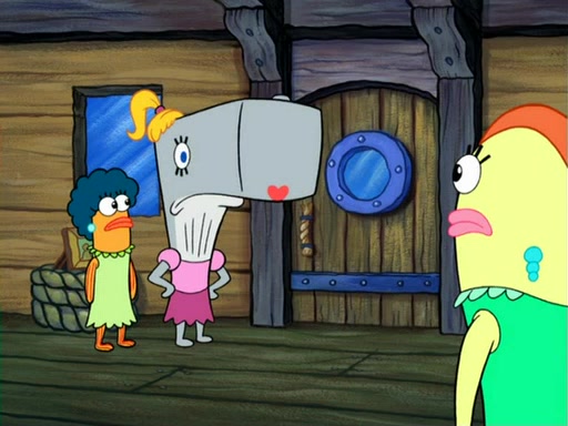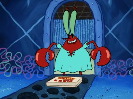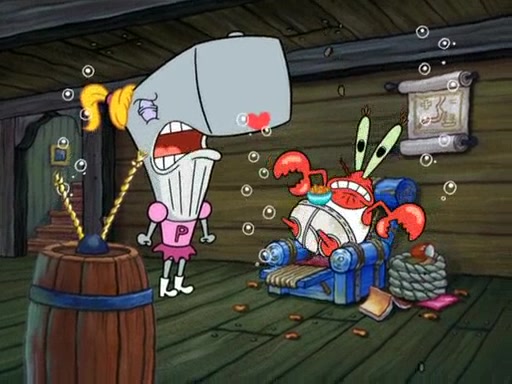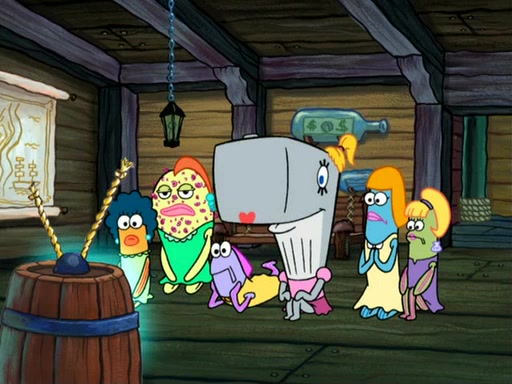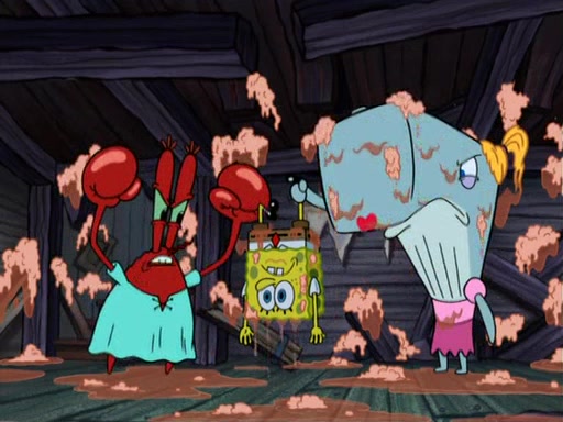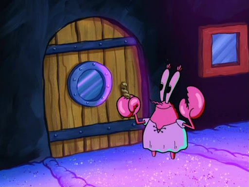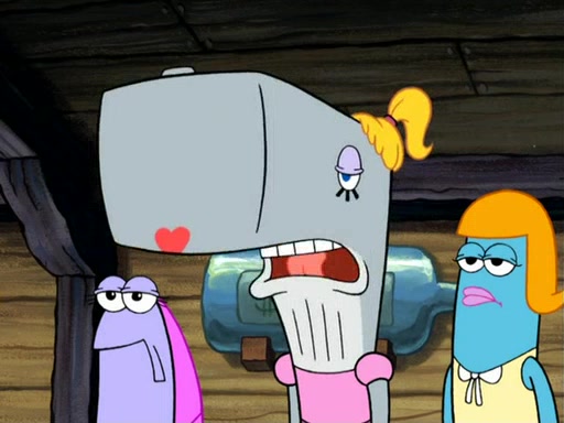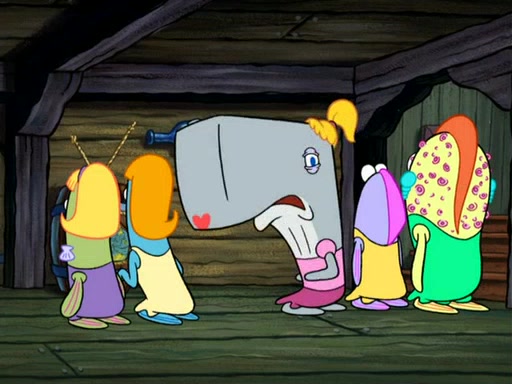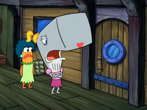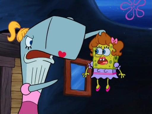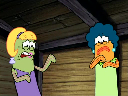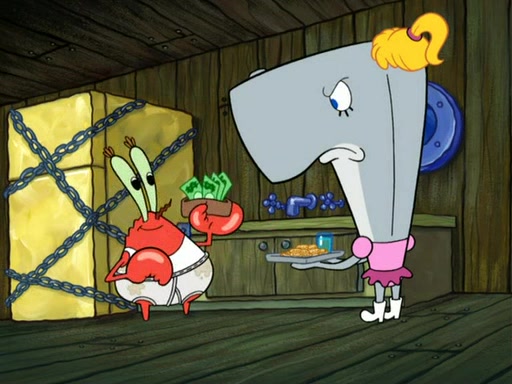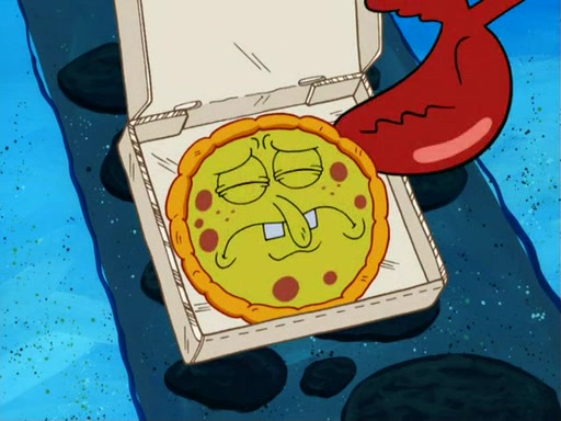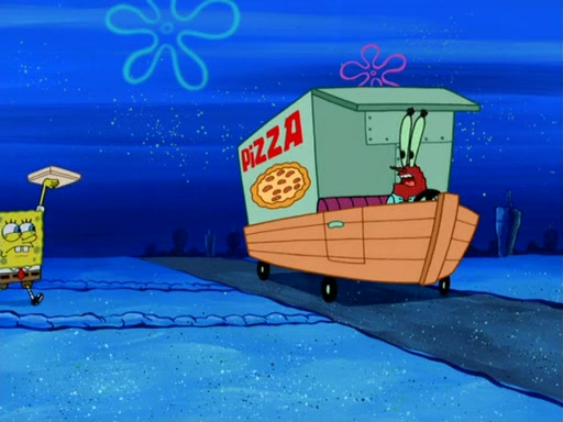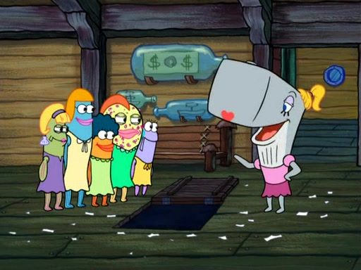 Meanwhile, a girl named Girly TeenGirl from Farawayville that looks like SpongeBob arrives at Krabs and Pearl's house, asking to get in. However, Pearl thinks she is SpongeBob and she and her friends ransack the girl, who runs home crying. At the time, Mr. Krabs and SpongeBob (who wasn't in disguise yet, meaning that the girl wasn't SpongeBob) pretend to be pizza deliverers. Unfortunately, SpongeBob is caught during the scuffle and is left behind as Mr. Krabs flees. As a result, he had been turned into pizza by the girls and sent back to Mr. Krabs, telling him that he failed the plan.