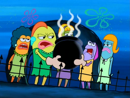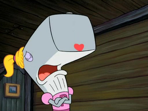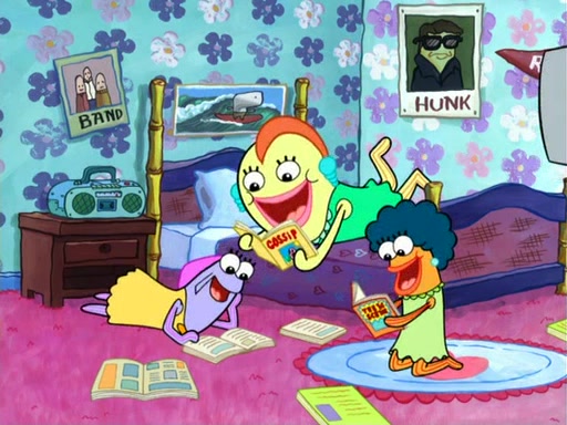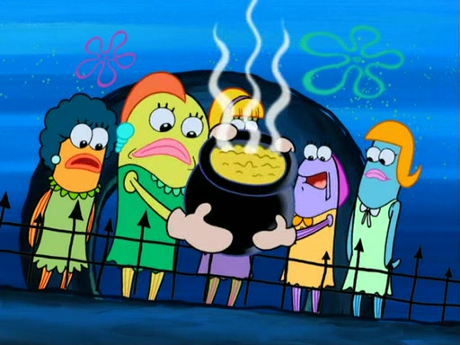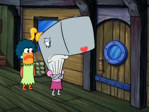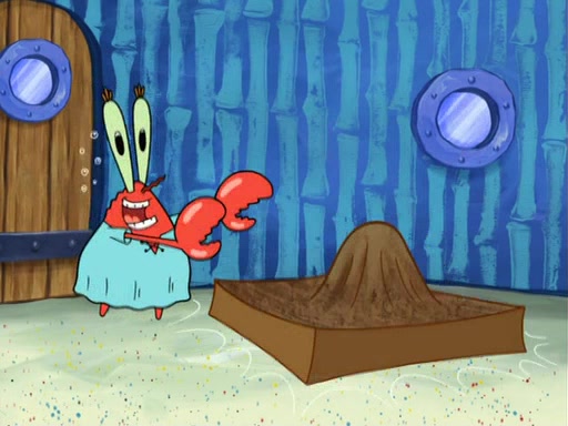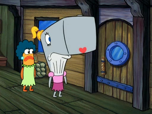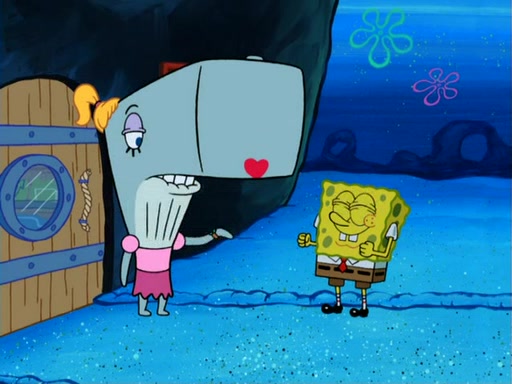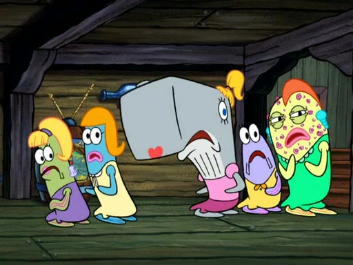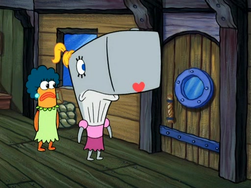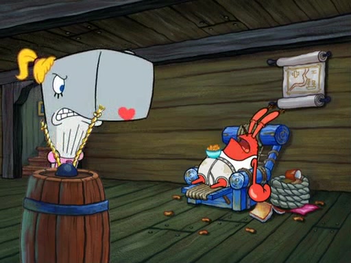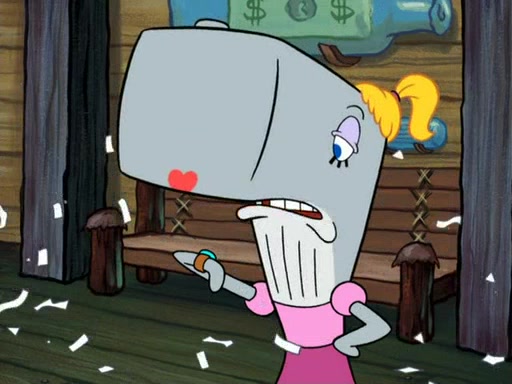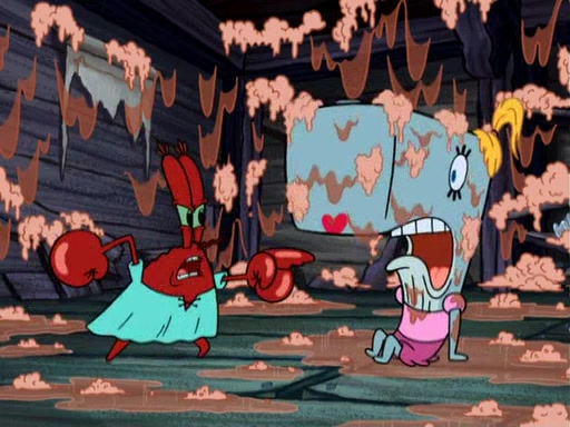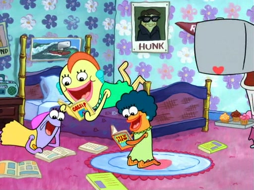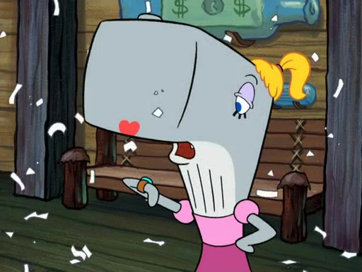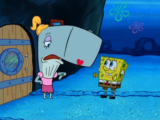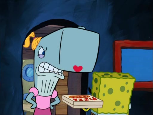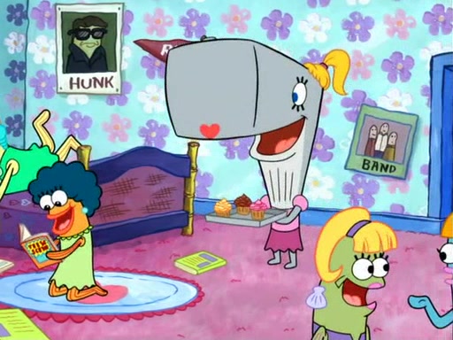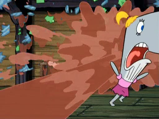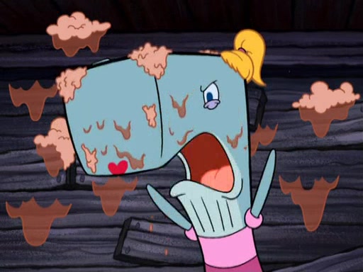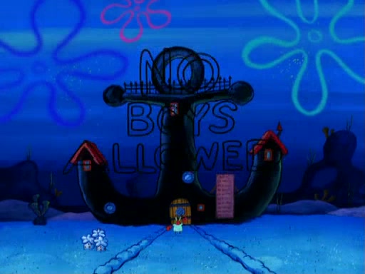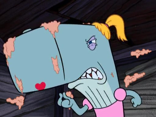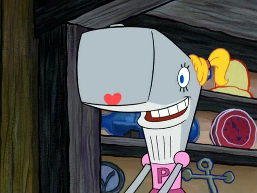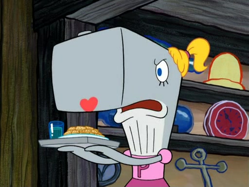 Meanwhile, a girl named Girly TeenGirl from Farawayville that looks like SpongeBob arrives at Krabs and Pearl's house, asking to get in. However, Pearl thinks she is SpongeBob and she and her friends ransack the girl, who runs home crying. At the time, Mr. Krabs and SpongeBob (who wasn't in disguise yet, meaning that the girl wasn't SpongeBob) pretend to be pizza deliverers. Unfortunately, SpongeBob is caught during the scuffle and is left behind as Mr. Krabs flees. As a result, he had been turned into pizza by the girls and sent back to Mr. Krabs, telling him that he failed the plan.