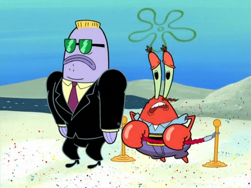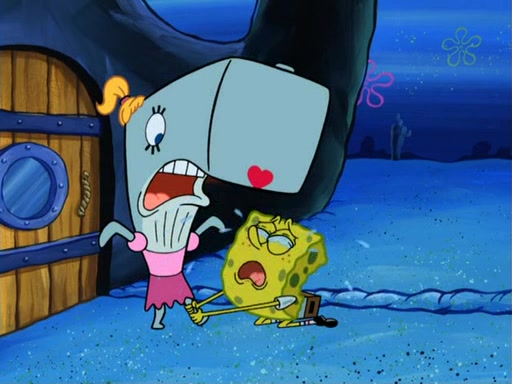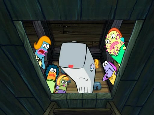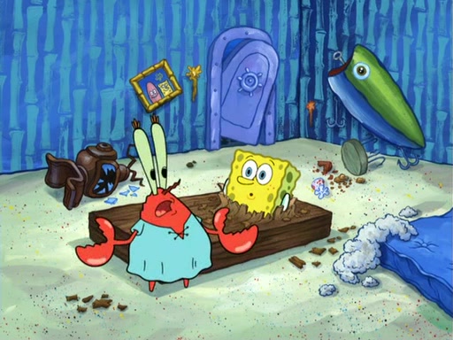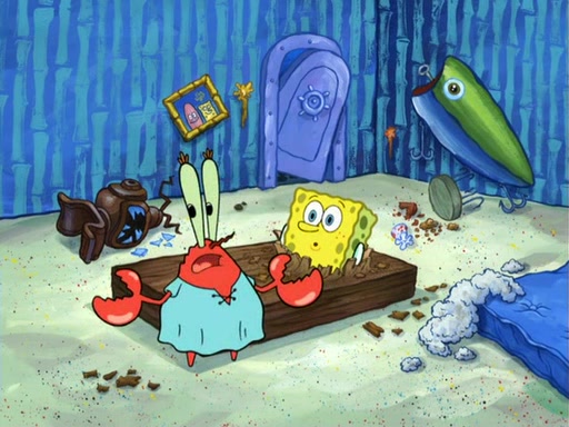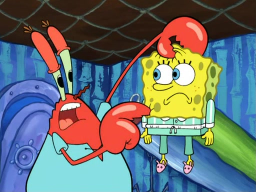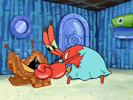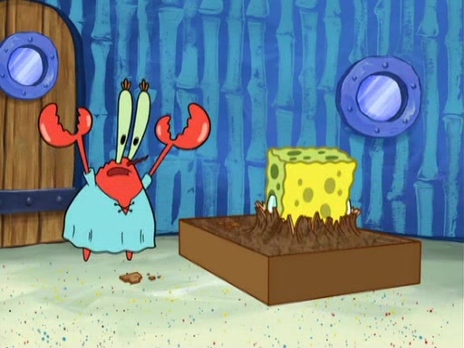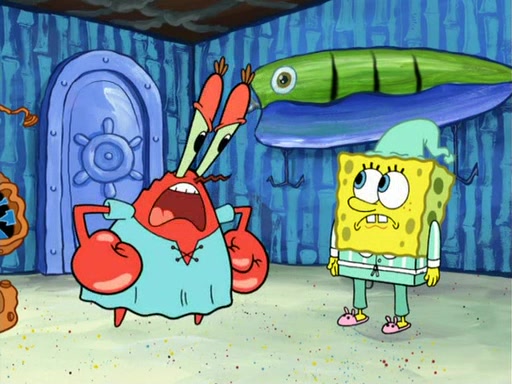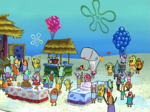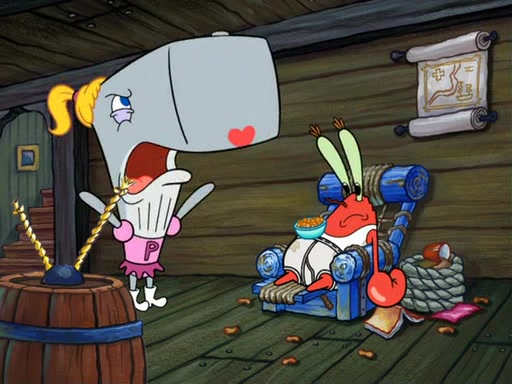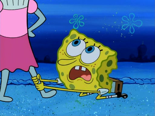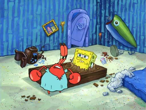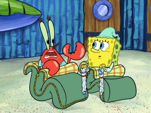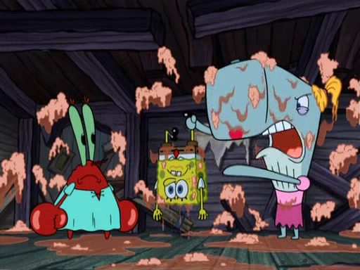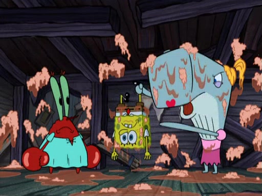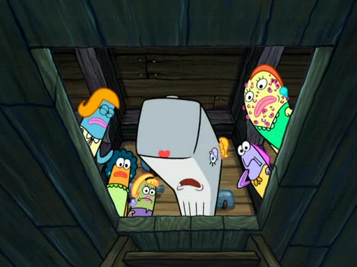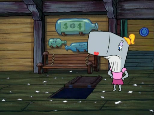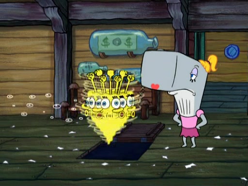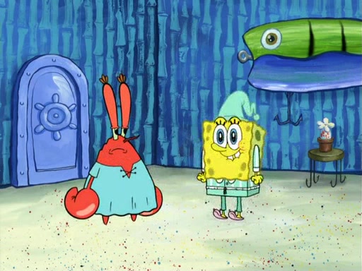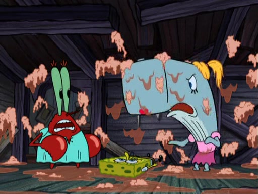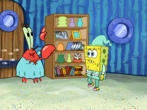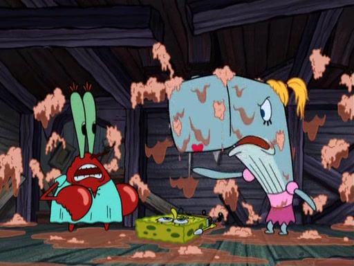 SpongeBob later sneaks back in as a piano repairman, but Pearl and her friends already know his tricks and dropped a piano on him. He leaves and tried to tell Mr. Krabs to not spy on her again, but Mr. Krabs said that if he doesn't go to Pearl's party, than he is fired. Upset, SpongeBob goes back to Mr. Krabs's house and begs Pearl to stay at her party. He did, but falls down into Krabs's root beer cellar while trying to prove in ten seconds that he is fun enough for the party.