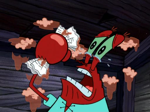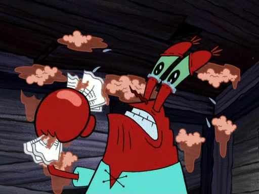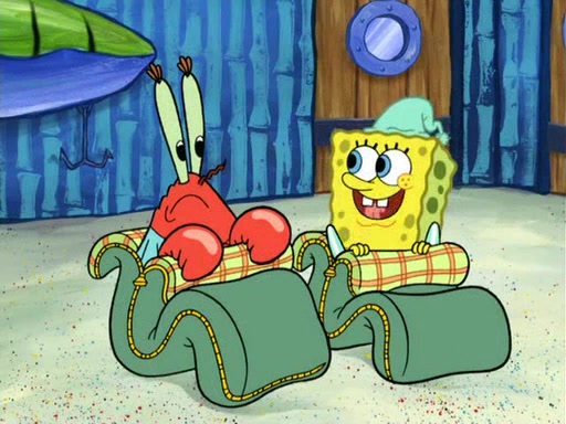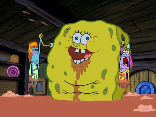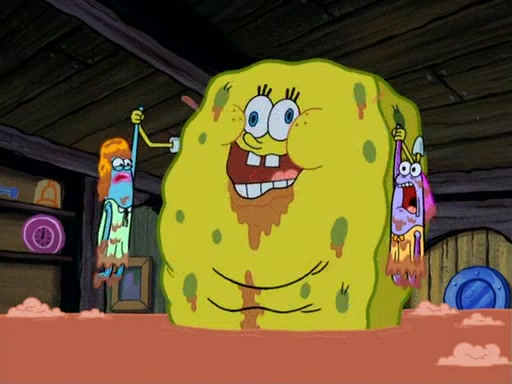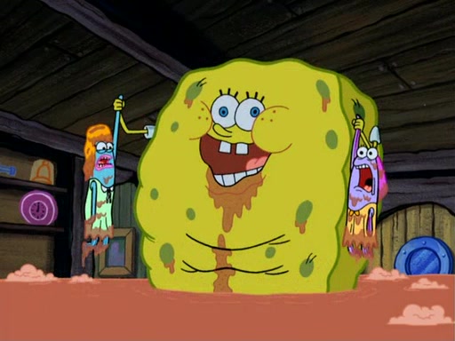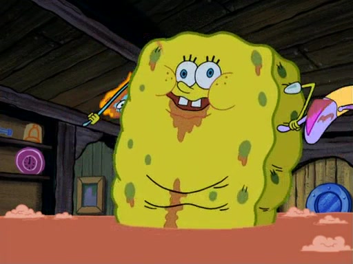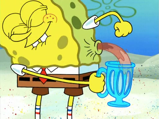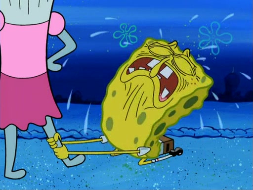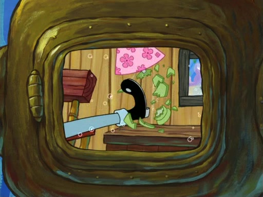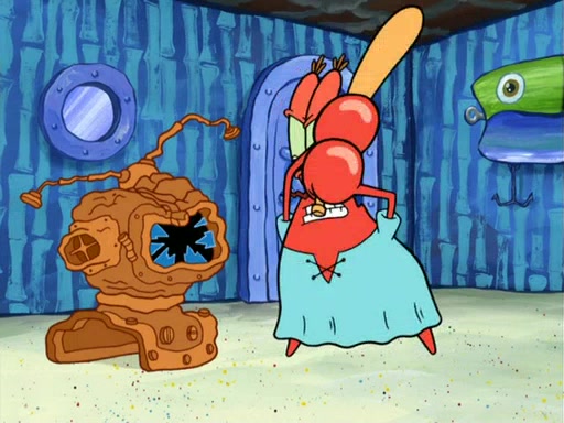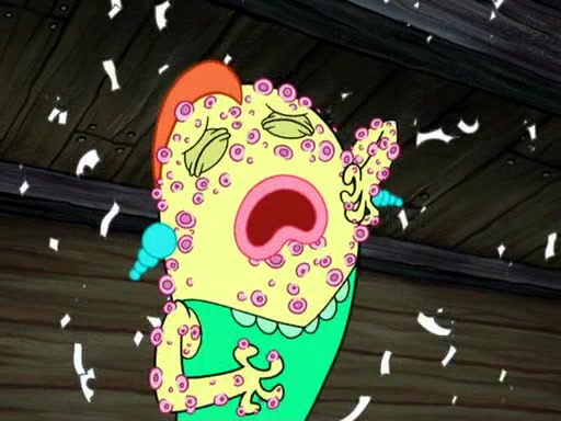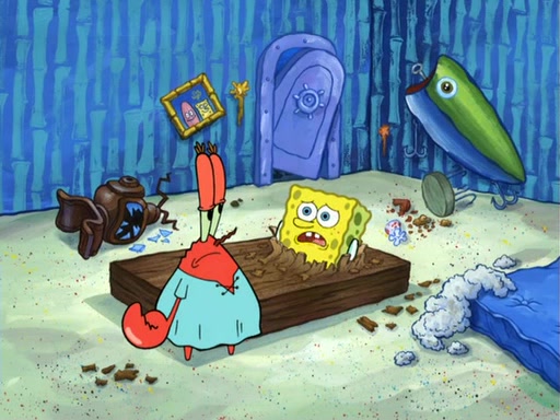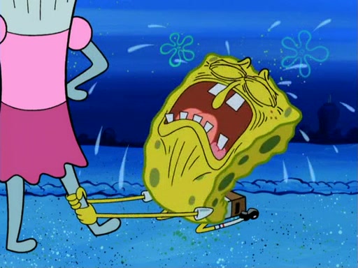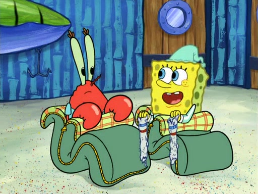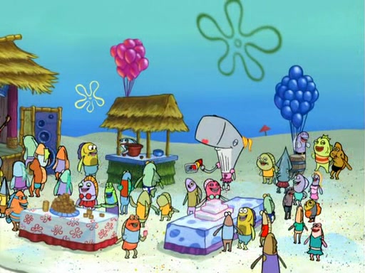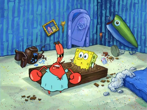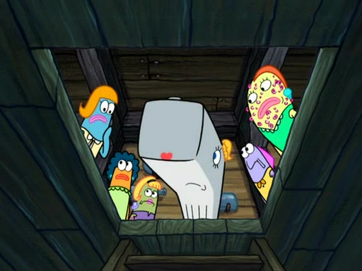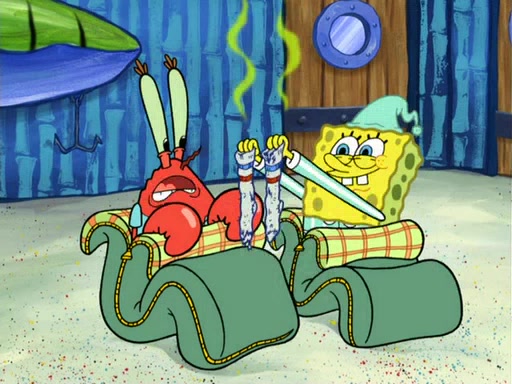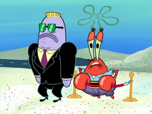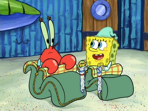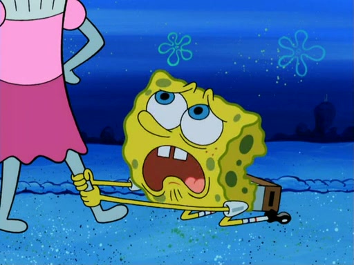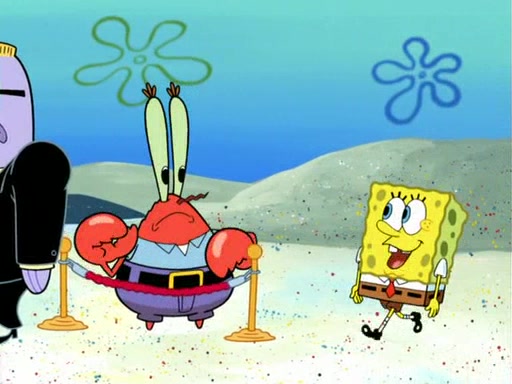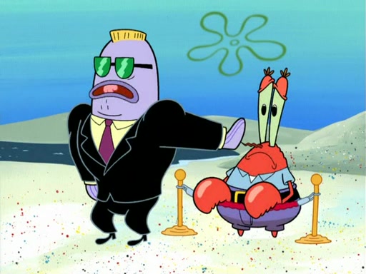 SpongeBob later sneaks back in as a piano repairman, but Pearl and her friends already know his tricks and dropped a piano on him. He leaves and tried to tell Mr. Krabs to not spy on her again, but Mr. Krabs said that if he doesn't go to Pearl's party, than he is fired. Upset, SpongeBob goes back to Mr. Krabs's house and begs Pearl to stay at her party. He did, but falls down into Krabs's root beer cellar while trying to prove in ten seconds that he is fun enough for the party.