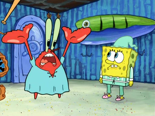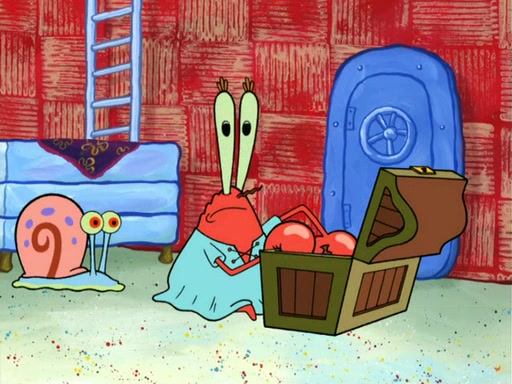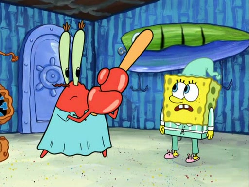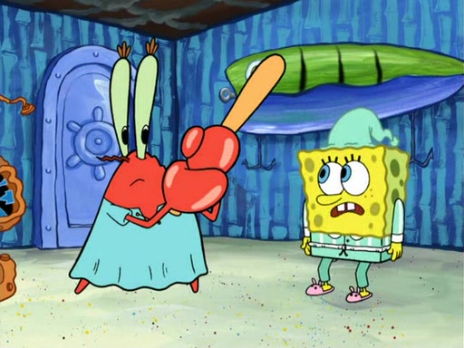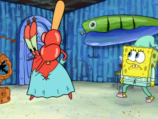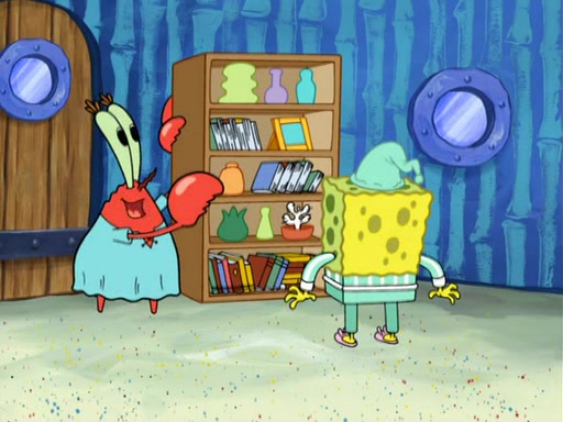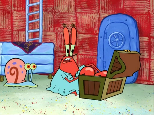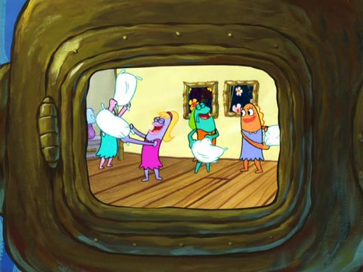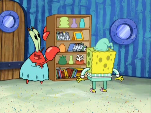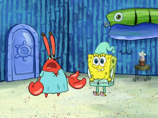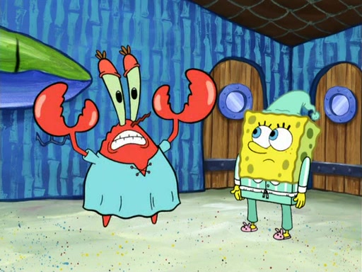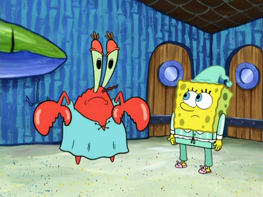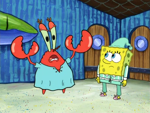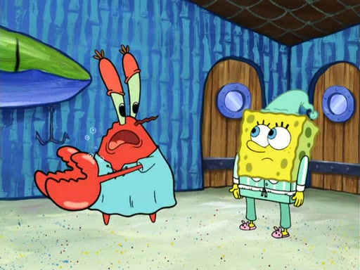 Pearl is getting ready for her slumber party, but Mr. Krabs' meddling in the party preparations is getting out of control. Pearl arrests him out of the house, so Mr. Krabs decides to stay at SpongeBob's. At SpongeBob's house, SpongeBob puts on a movie that shows girls having a slumber party and inviting their gangster boyfriends, who begin vandalizing the house. Mr. Krabs is horrified by this, destroys SpongeBob's television with a bat, explains to SpongeBob his concern that this will happen to his house, and sends SpongeBob to spy on Pearl and her friends.
