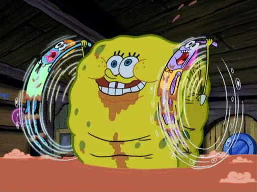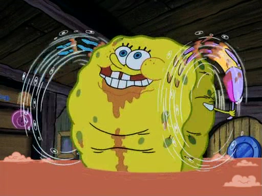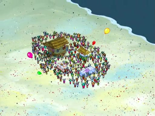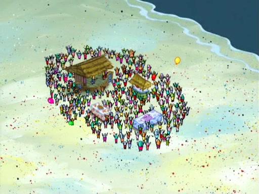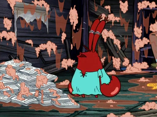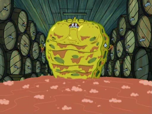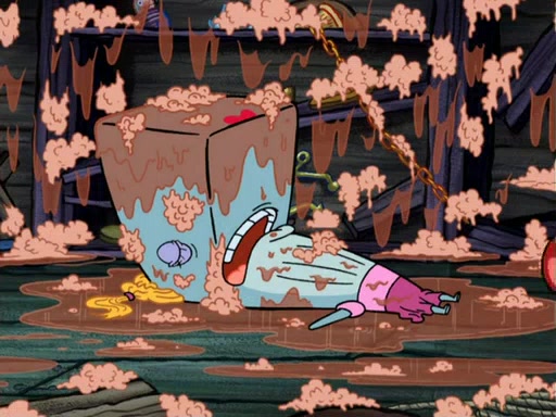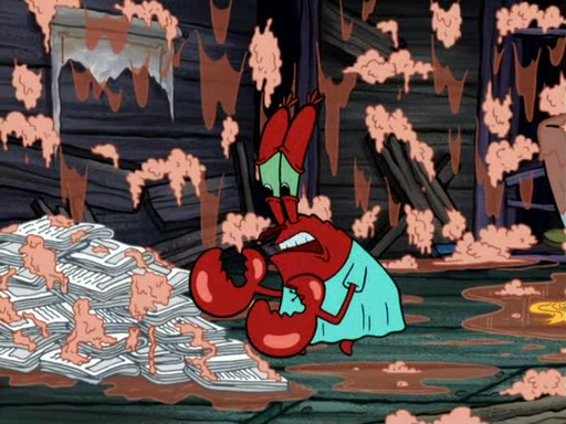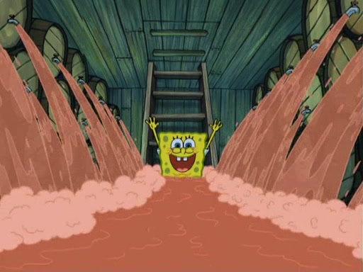 SpongeBob absorbs all of Mr. Krabs' root beer to prove that he can be fun, while in hindsight ruining Mr. Krabs' house and putting Pearl and her friends in peril. Mr. Krabs arrives at his destroyed house, and he blames Pearl for its destruction. Enraged with Mr.Krabs sending SpongeBob to spy on her and her friends (who are in shock from the incident) and ruining the party, Pearl takes his money, using it to host her own private beach party at Goo Lagoon, where Mr. Krabs and SpongeBob are the only ones not allowed in. The episode ends with SpongeBob offering a cup of root beer to Mr. Krabs to cheer him up, which does not help.
