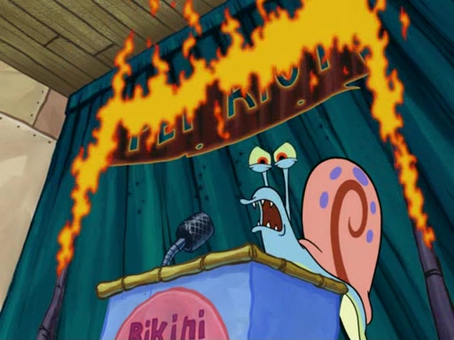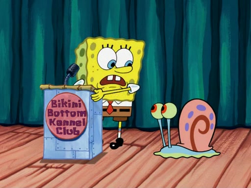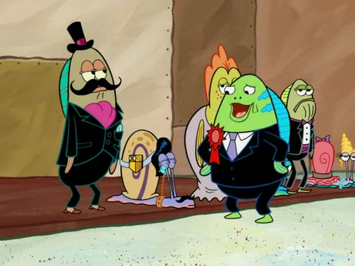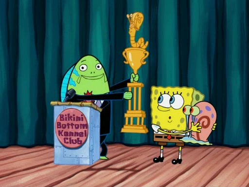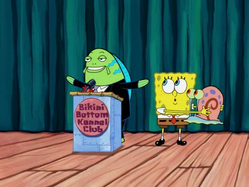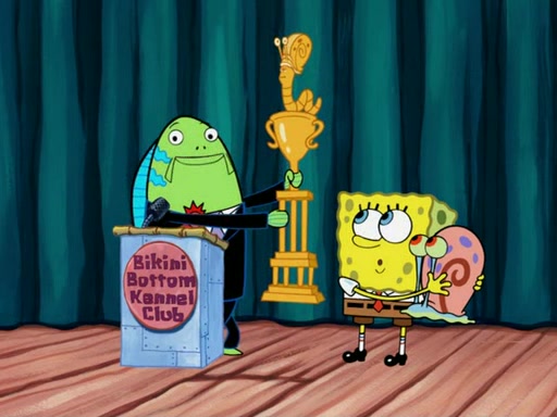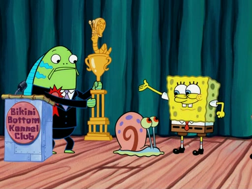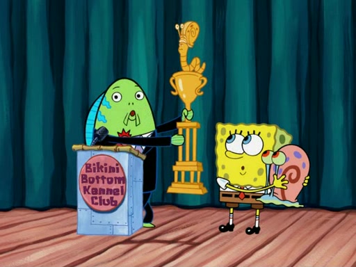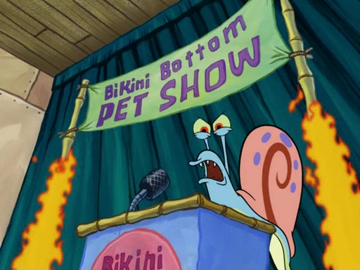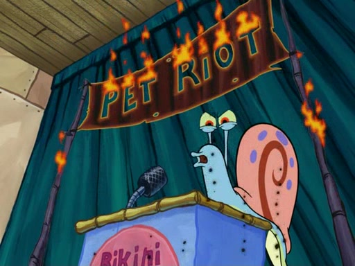 SpongeBob enters Gary in a contest and sees a man with a snail who wears very expensive clothing and thinks Gary needs to get a makeover. After Gary finishes his makeover, he and SpongeBob go to the contest and Gary gets angry about expensive clothing and turn the Pet Contest into a Pet Riot. All the other pets began to burn all the clothes and attack their owners. One of the owners named Charles asked his pet Foofie why he is so angry and asked somebody who can understand what the pets are saying. SpongeBob explains what Gary is saying and said that the pets don't want to be in these pet shows because they want to be treated fair and want to be themselves instead of being treated like "rag dolls in scratchy outfits" and the riot is over. However, it is Patrick that wins the pet show, probably because he wanted to see SpongeBob win the contest close-up.