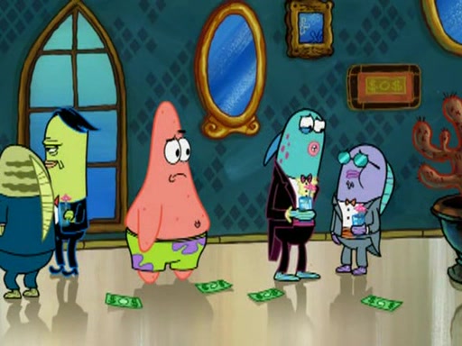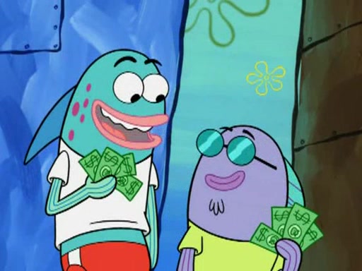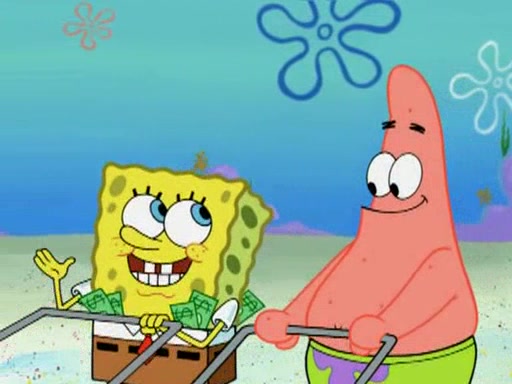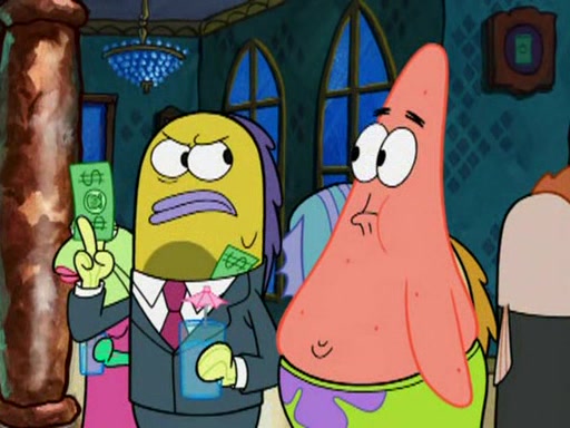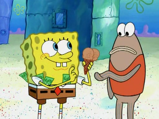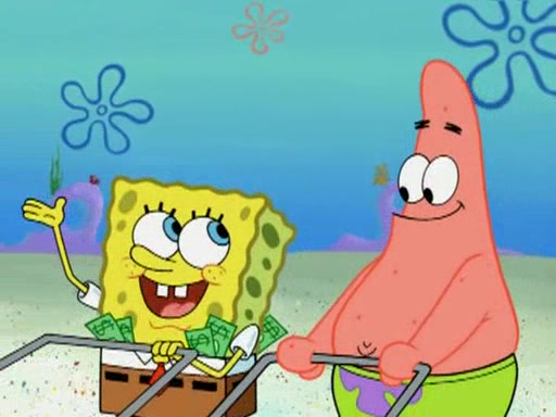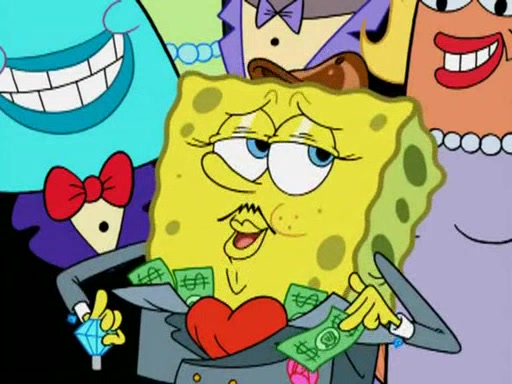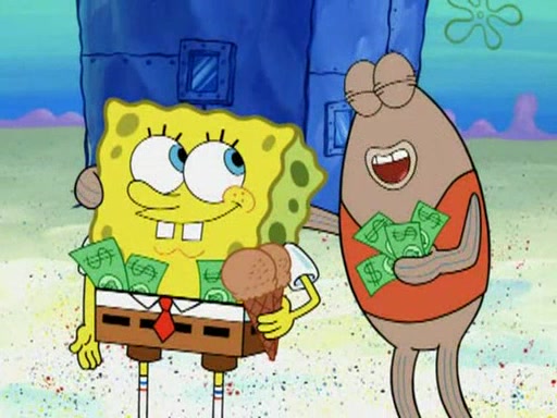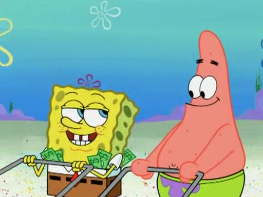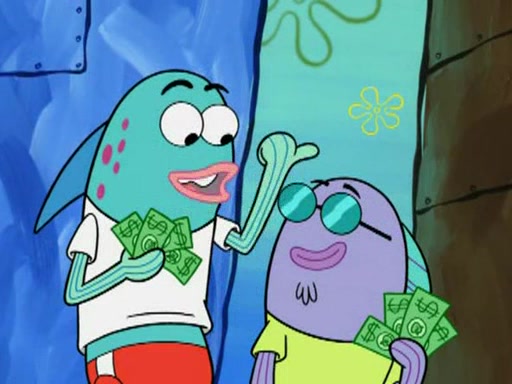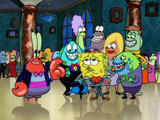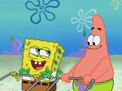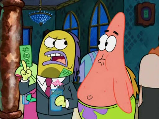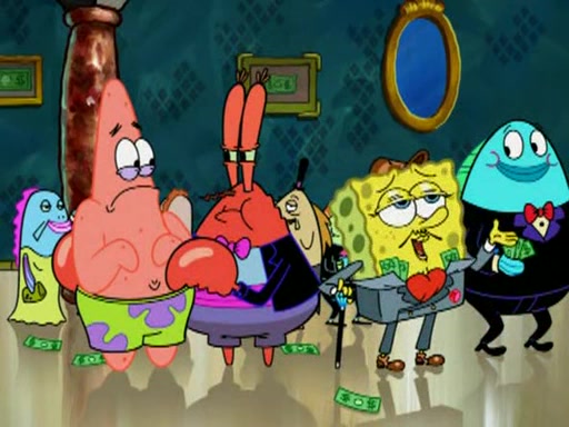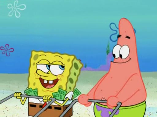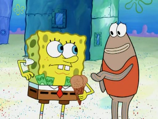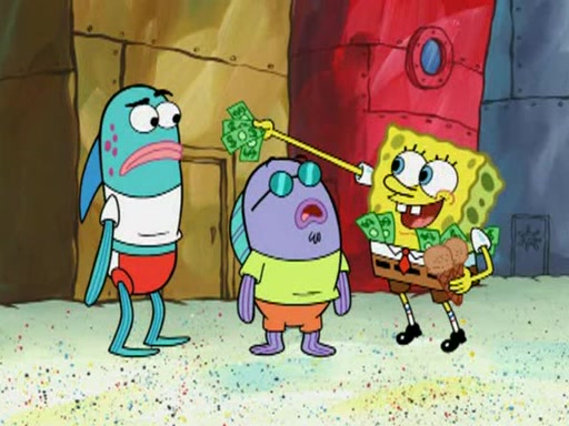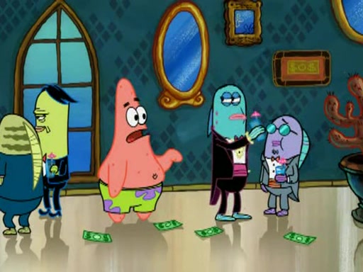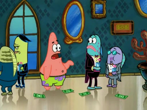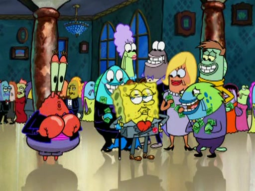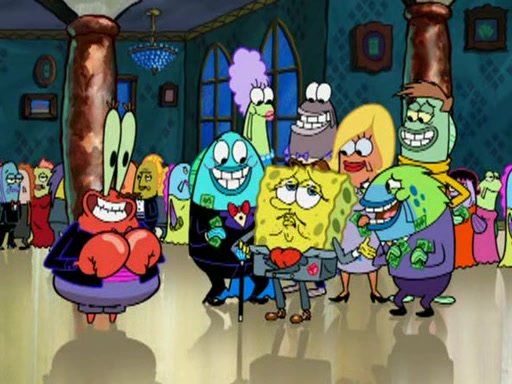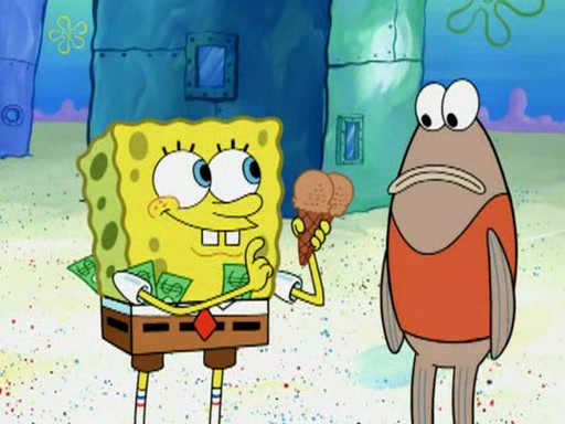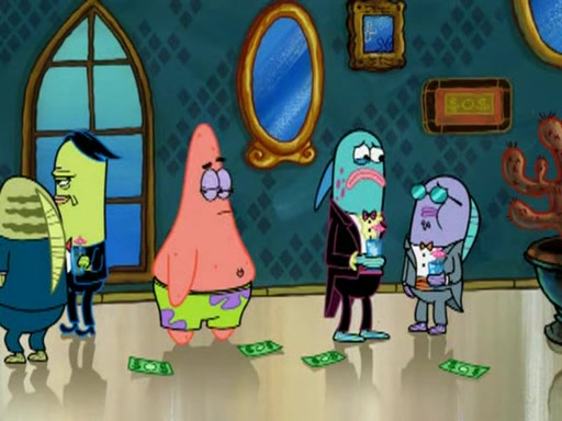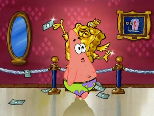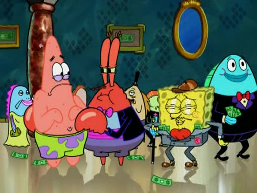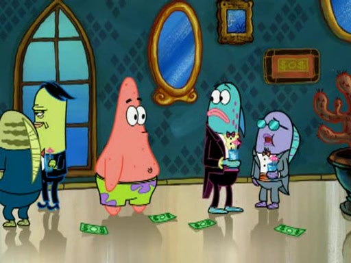 Later, SpongeBob gives out money to others at the local ice-cream stand, causing him to get a lot of friends. SpongeBob is overtaken by fame that he forget Patrick was his best friend. He keeps giving money to his rich "friends", and so many people have used him for it that he runs out completely. Spongebob returns to his normal life and he and Patrick reconcile. Patrick finds another "volleyball", which is really a huge diamond from the Bikini Bottom Diamond Mine.