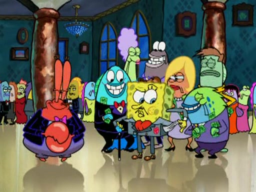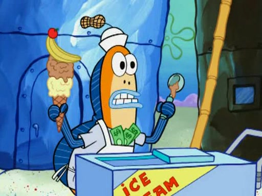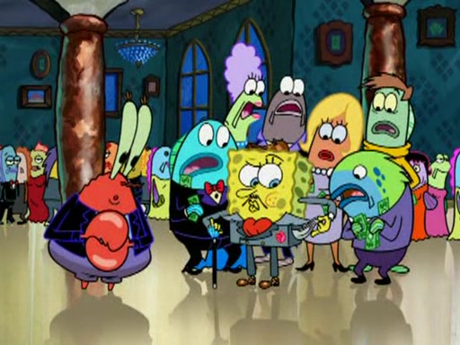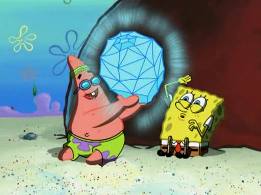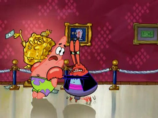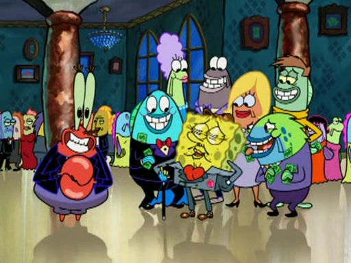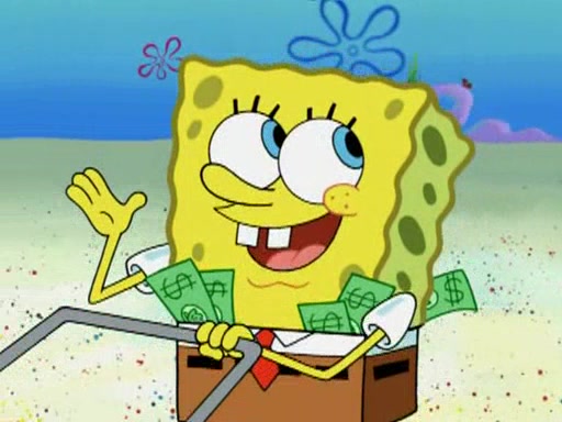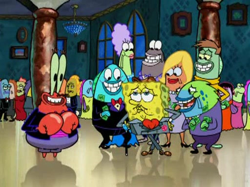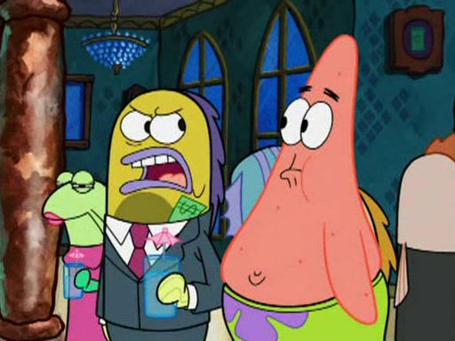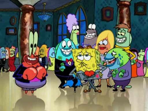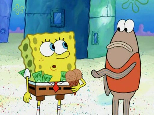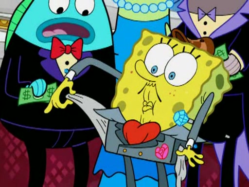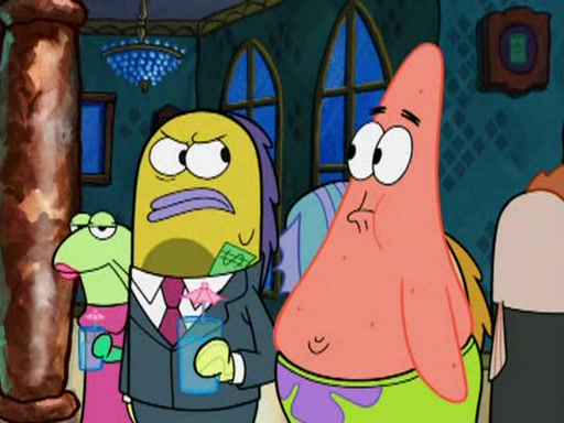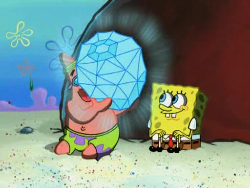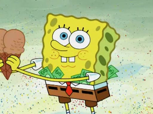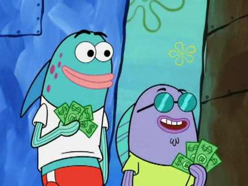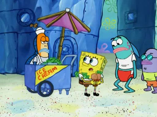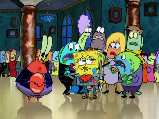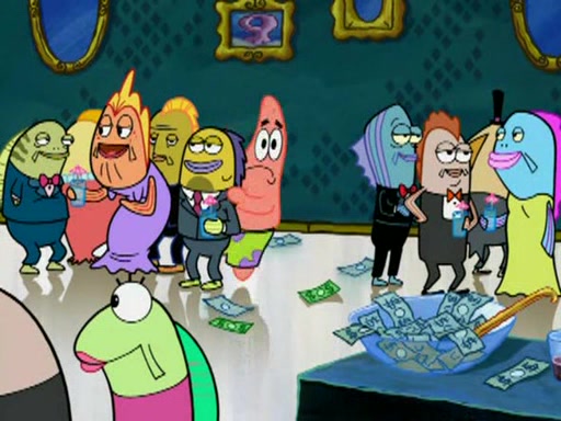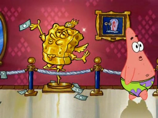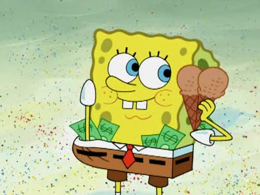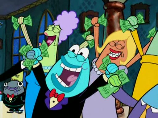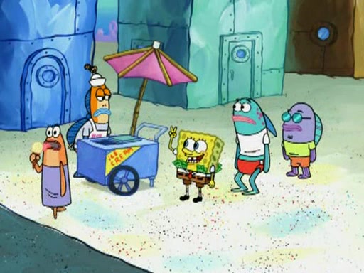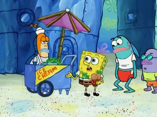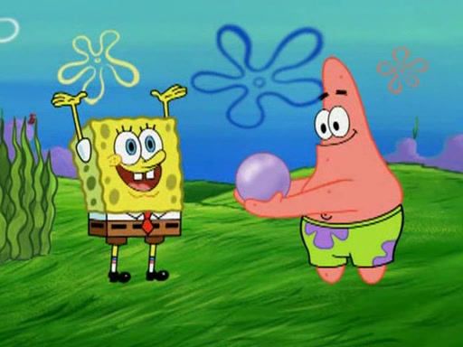 Later, SpongeBob gives out money to others at the local ice-cream stand, causing him to get a lot of friends. SpongeBob is overtaken by fame that he forget Patrick was his best friend. He keeps giving money to his rich "friends", and so many people have used him for it that he runs out completely. Spongebob returns to his normal life and he and Patrick reconcile. Patrick finds another "volleyball", which is really a huge diamond from the Bikini Bottom Diamond Mine.