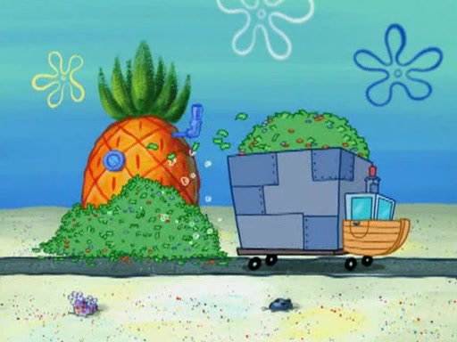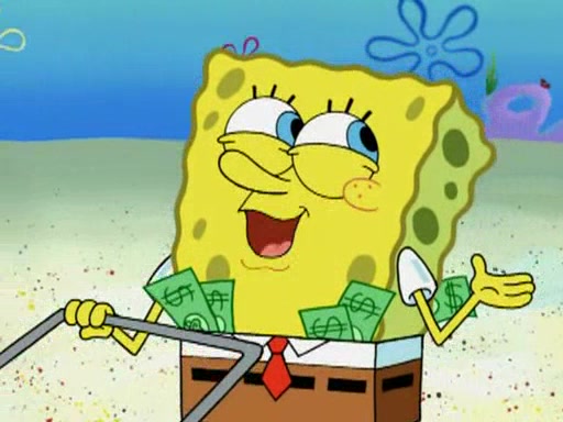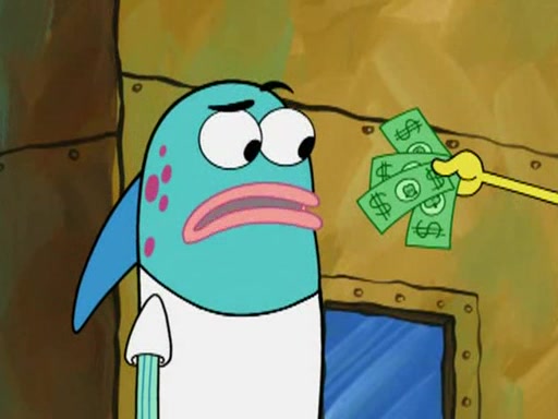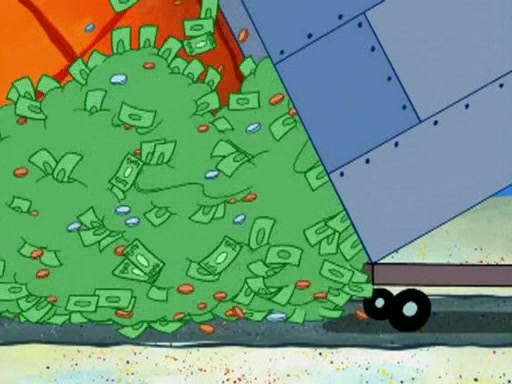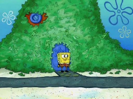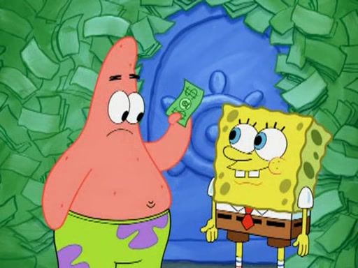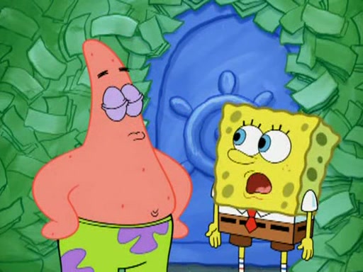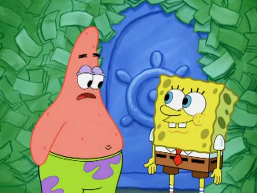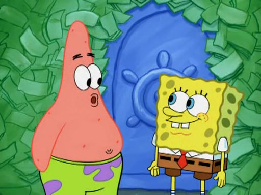 SpongeBob is walking around in the Jellyfish Fields. Suddenly, SpongeBob hears a shriek in Jellyfish Fields and thinks that the shriek came from Patrick, who turns out to have just been mouthing it. Instead, it comes from a clam that is choking on a pearl. The clam coughs up the pearl with Patrick's assistance, and Patrick claims it is a volleyball. At the volleyball court, a local Bikini Bottom citizen offers SpongeBob a "small fortune" for his pearl. SpongeBob accepts the offer, and he gets loads of trucks dumping billions of dollars on his house. SpongeBob and Patrick use some of money by spending it on lifetime supply of strawberry gum, but he still has loads of it.