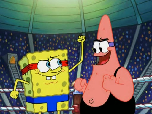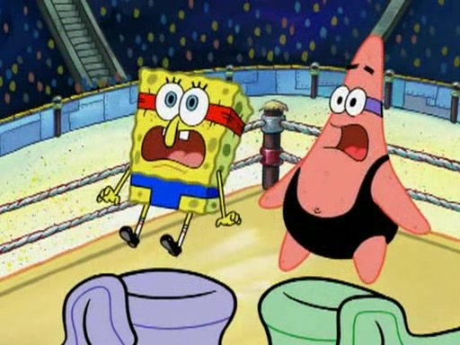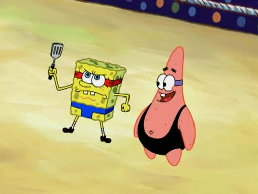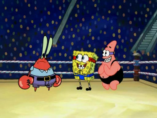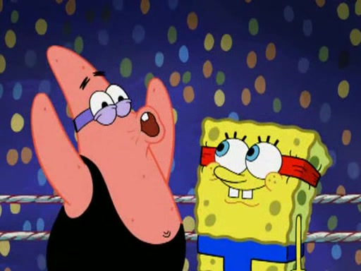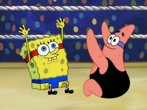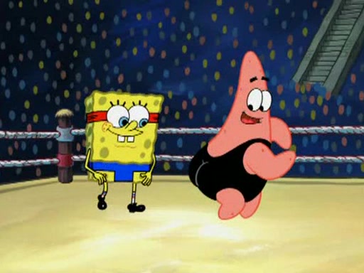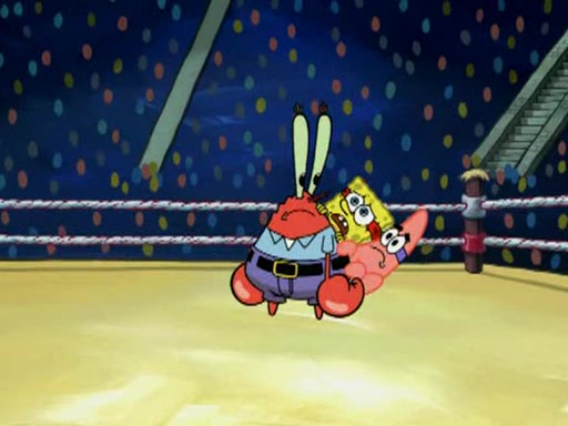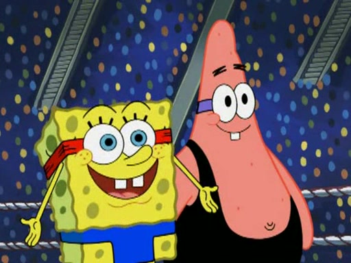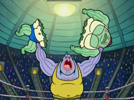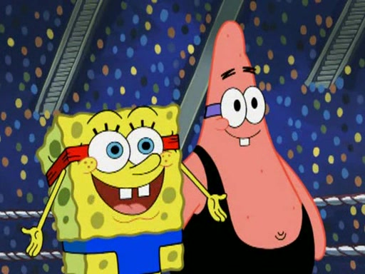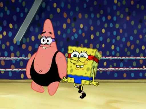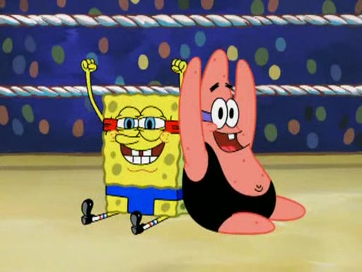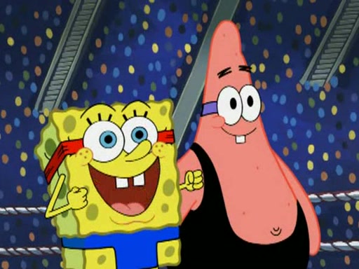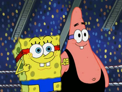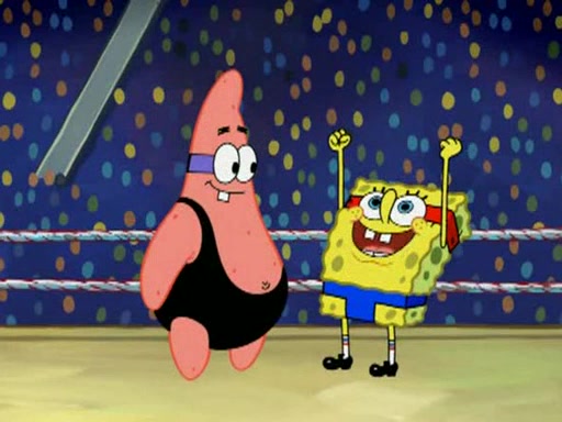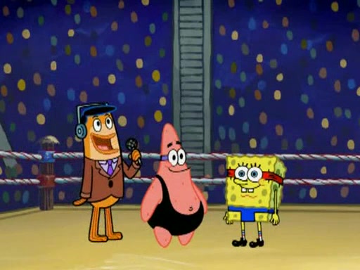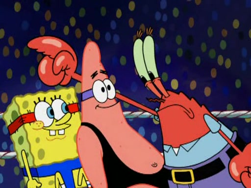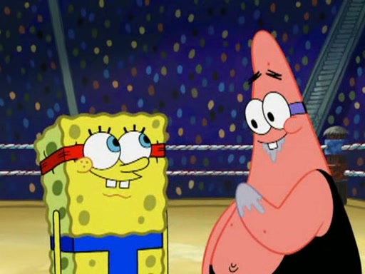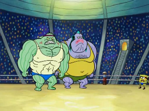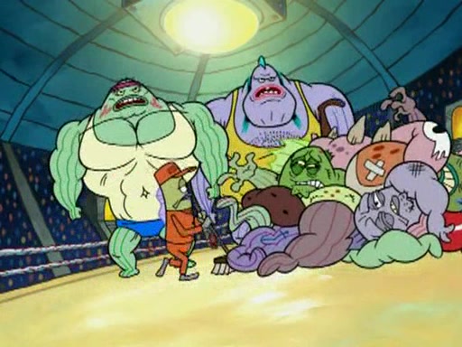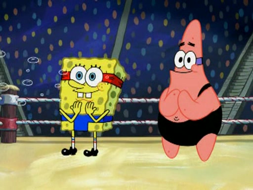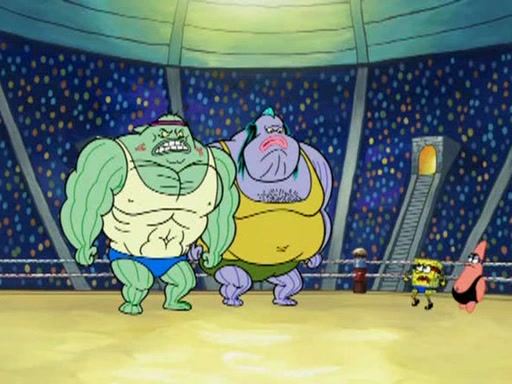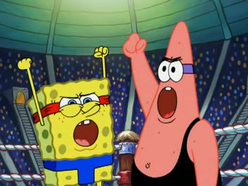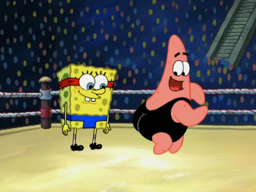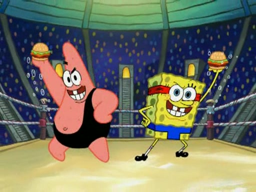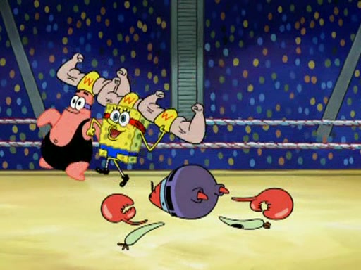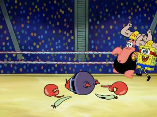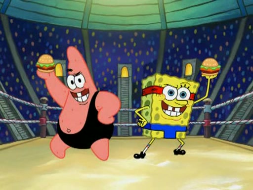 SpongeBob and Patrick are announced to be the "fresh meat" of the champions. They get almost killed in every which way by their opponents (which includes being liquefied and thrown repeatedly). SpongeBob and Patrick soon fall asleep and (while they are unconscious) the opponents decide to kill them with their deadly finishing move. Mr. Krabs is scared that they will die and he won't get the million clams. At the last minute, SpongeBob and Patrick end up winning, thanks to Patrick's "Iron Buns" (which crack the champions into pieces).