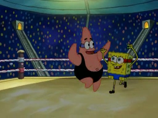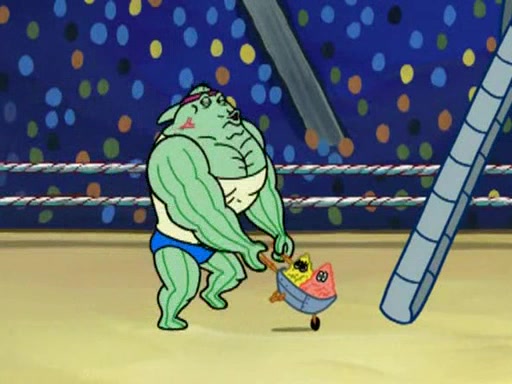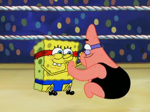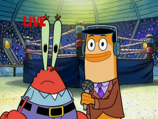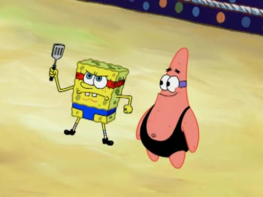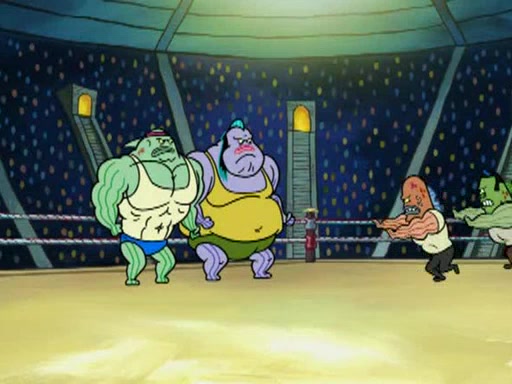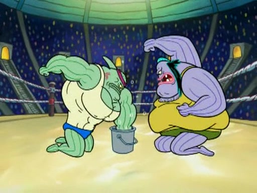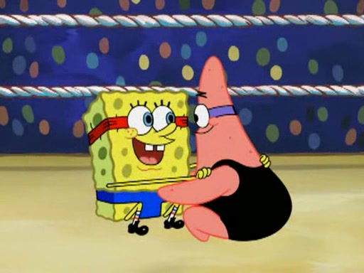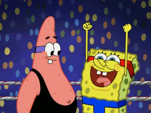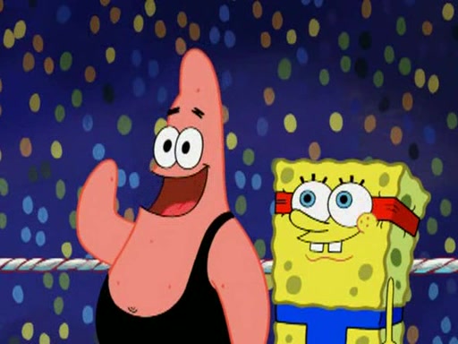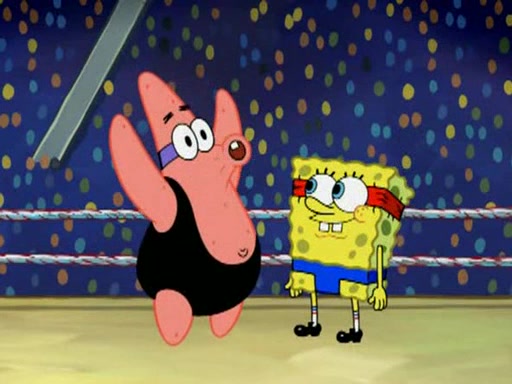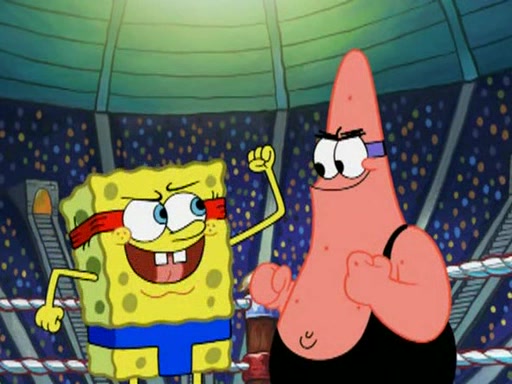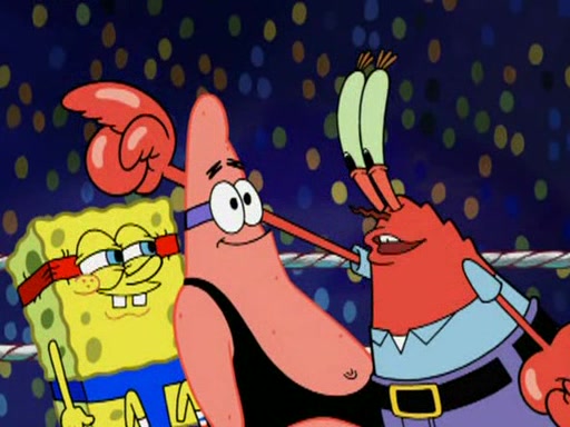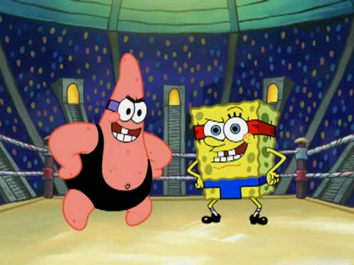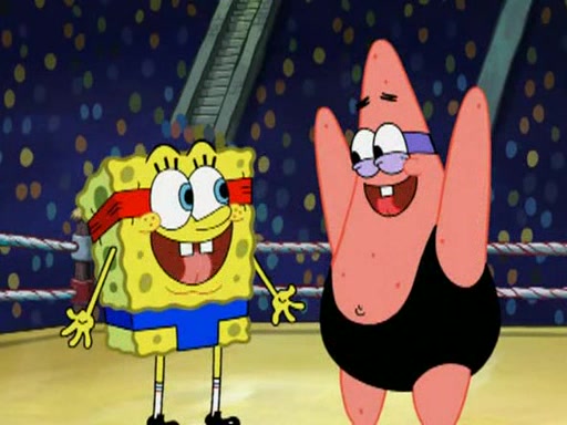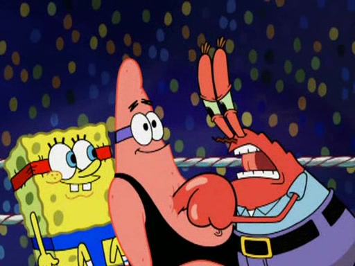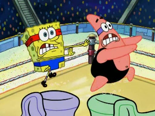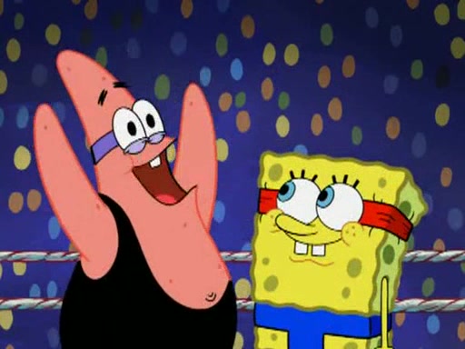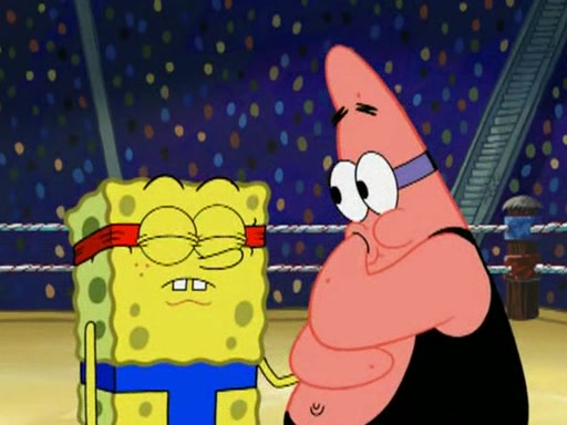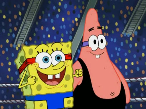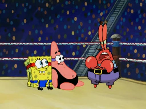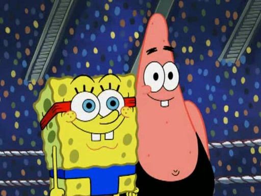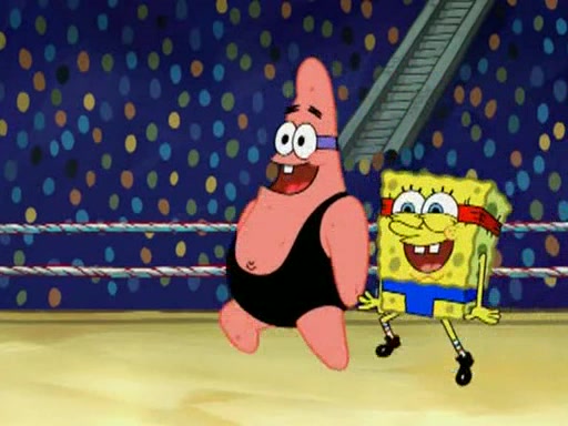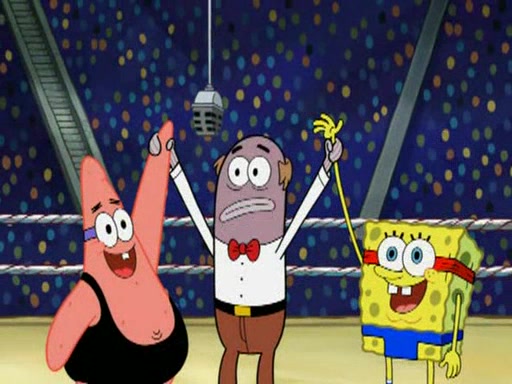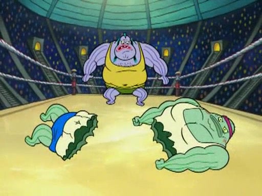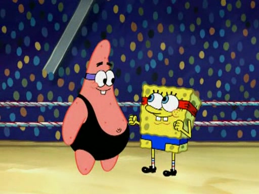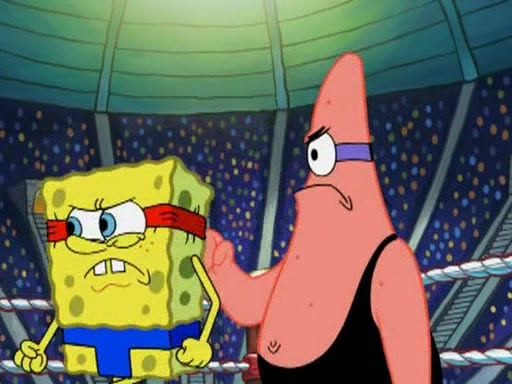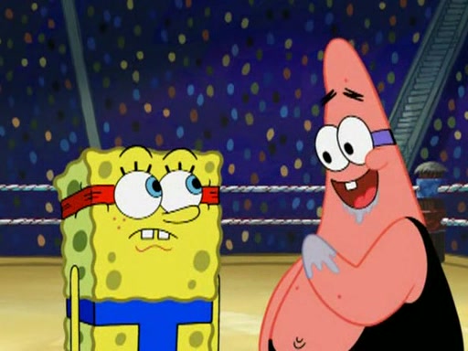 SpongeBob and Patrick are announced to be the "fresh meat" of the champions. They get almost killed in every which way by their opponents (which includes being liquefied and thrown repeatedly). SpongeBob and Patrick soon fall asleep and (while they are unconscious) the opponents decide to kill them with their deadly finishing move. Mr. Krabs is scared that they will die and he won't get the million clams. At the last minute, SpongeBob and Patrick end up winning, thanks to Patrick's "Iron Buns" (which crack the champions into pieces).