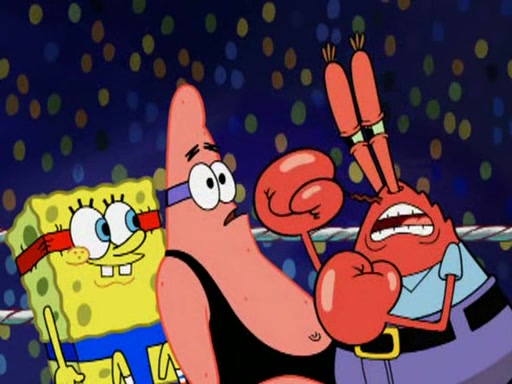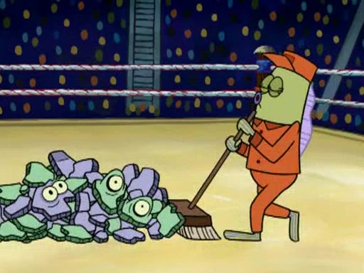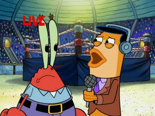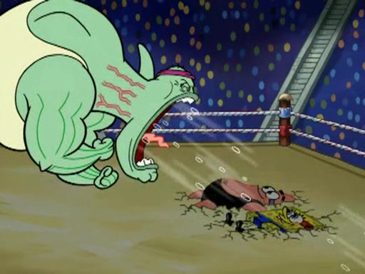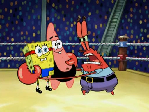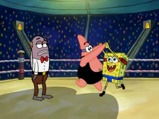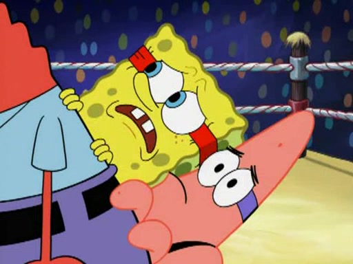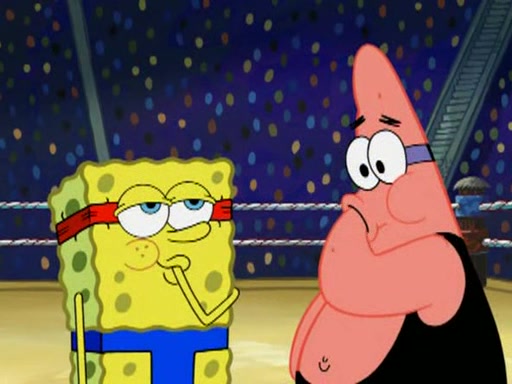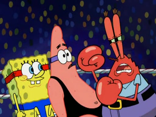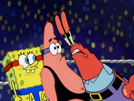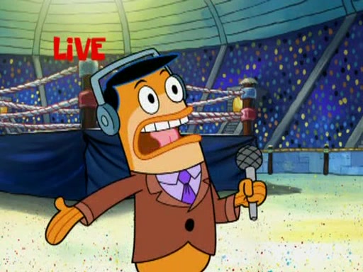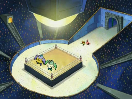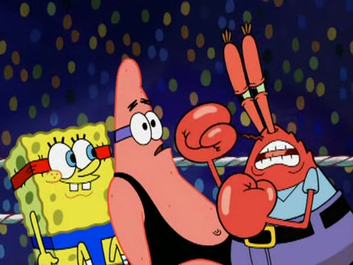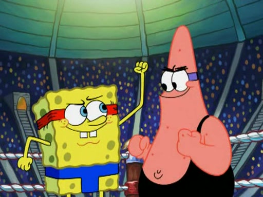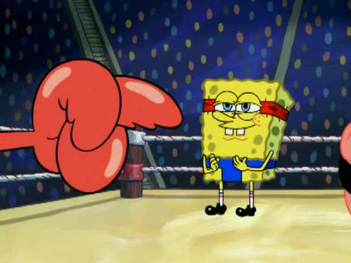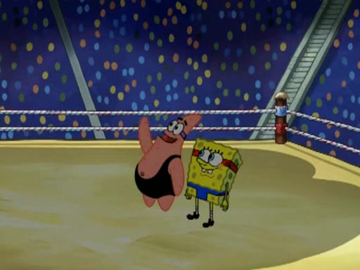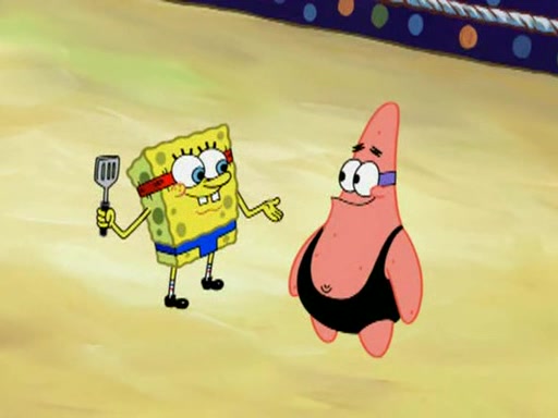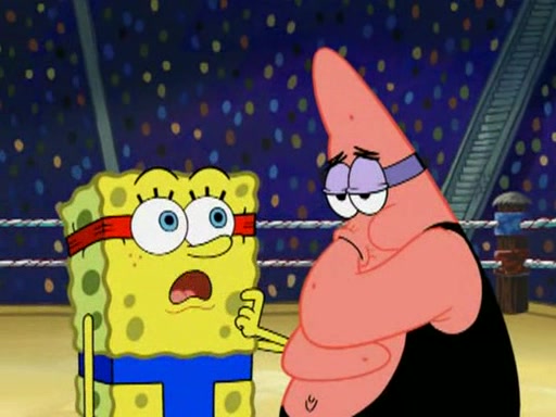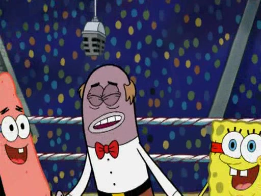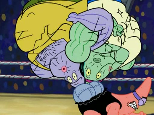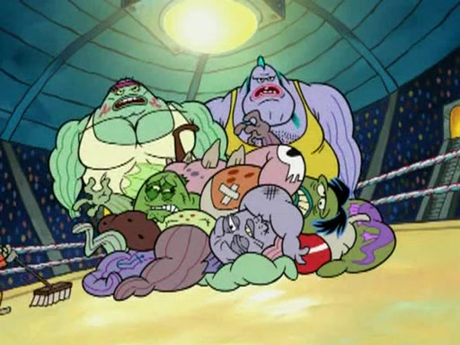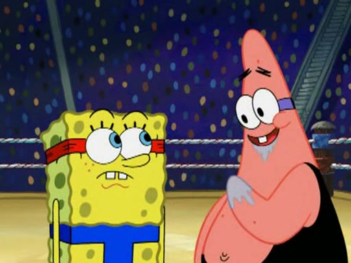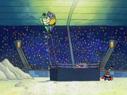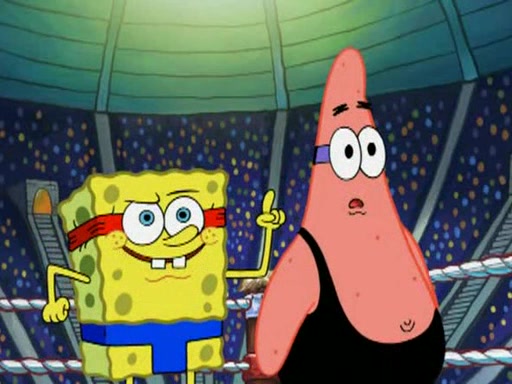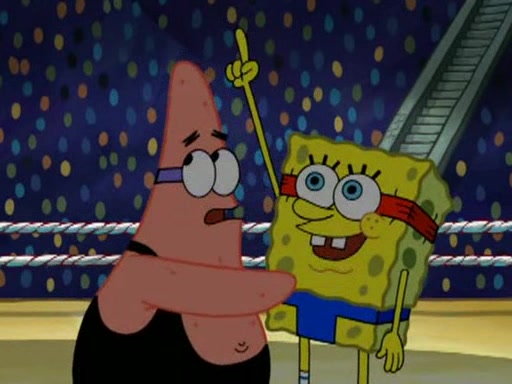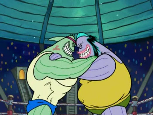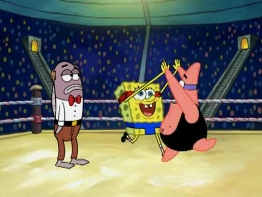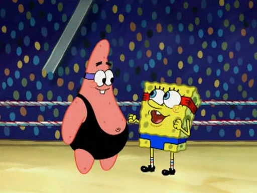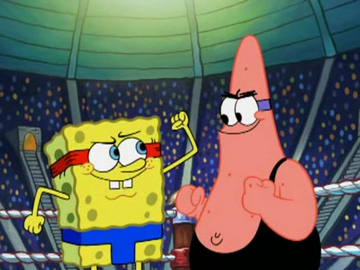 SpongeBob and Patrick are announced to be the "fresh meat" of the champions. They get almost killed in every which way by their opponents (which includes being liquefied and thrown repeatedly). SpongeBob and Patrick soon fall asleep and (while they are unconscious) the opponents decide to kill them with their deadly finishing move. Mr. Krabs is scared that they will die and he won't get the million clams. At the last minute, SpongeBob and Patrick end up winning, thanks to Patrick's "Iron Buns" (which crack the champions into pieces).