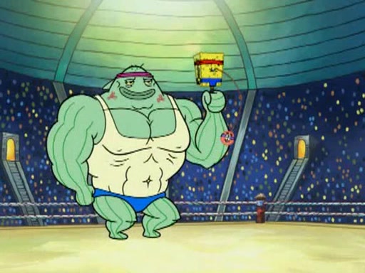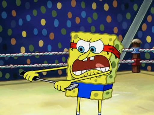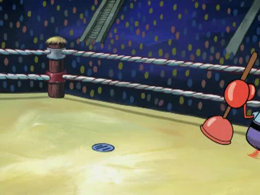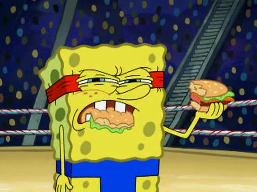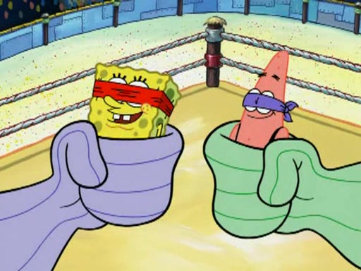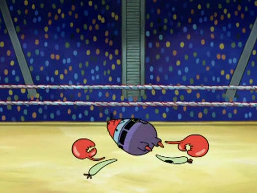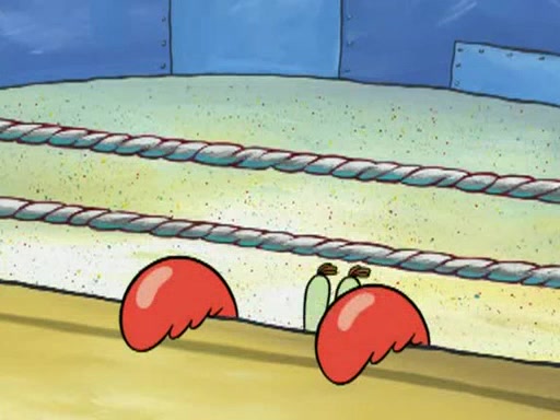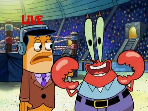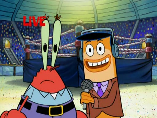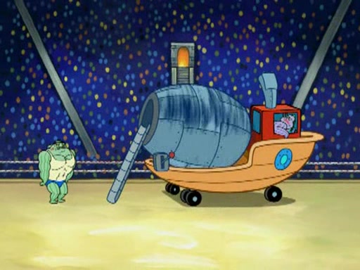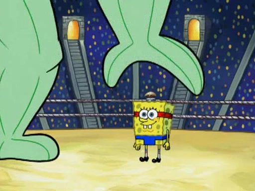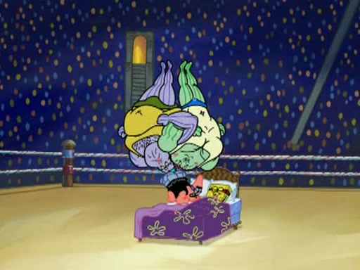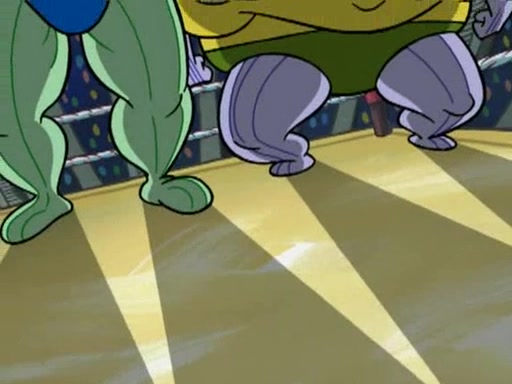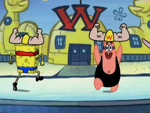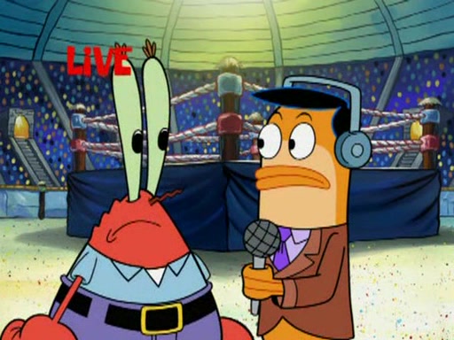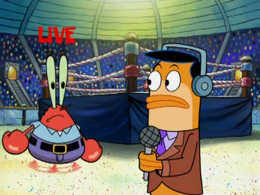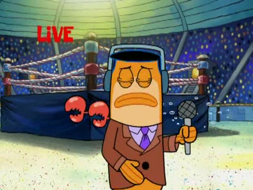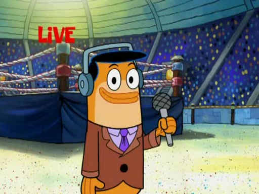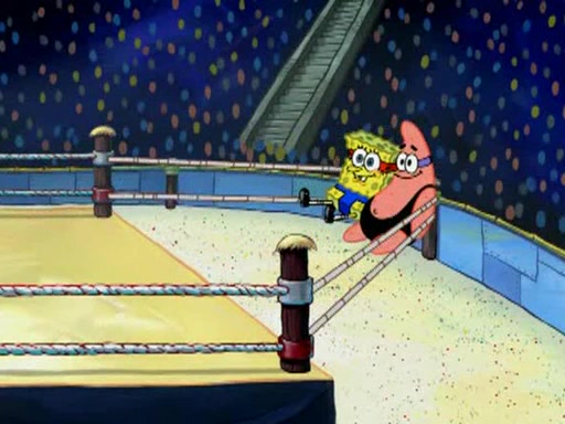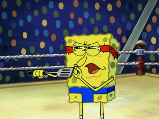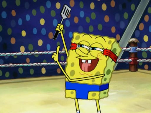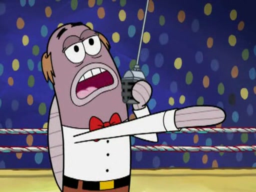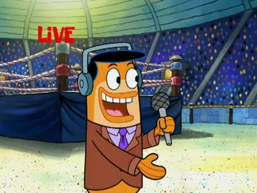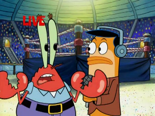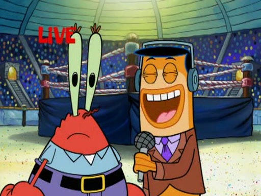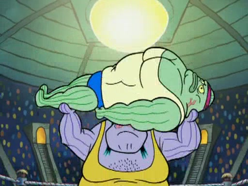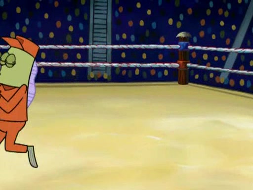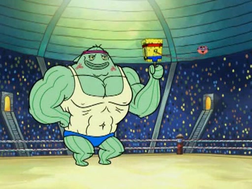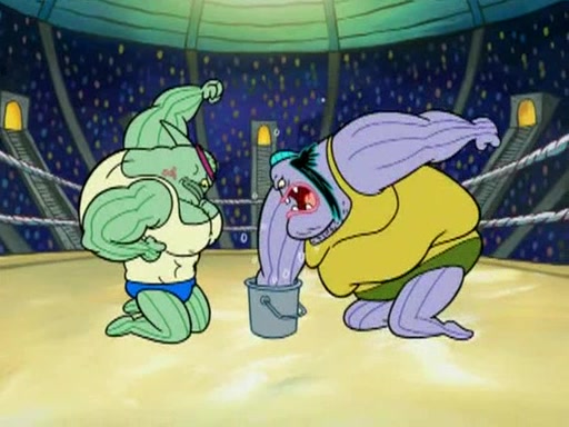 SpongeBob and Patrick are announced to be the "fresh meat" of the champions. They get almost killed in every which way by their opponents (which includes being liquefied and thrown repeatedly). SpongeBob and Patrick soon fall asleep and (while they are unconscious) the opponents decide to kill them with their deadly finishing move. Mr. Krabs is scared that they will die and he won't get the million clams. At the last minute, SpongeBob and Patrick end up winning, thanks to Patrick's "Iron Buns" (which crack the champions into pieces).