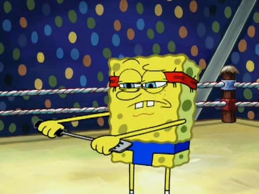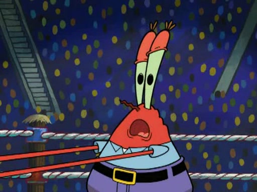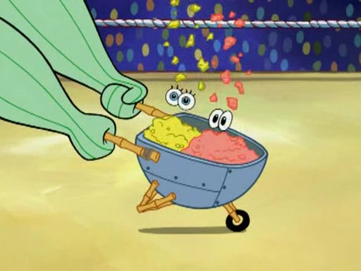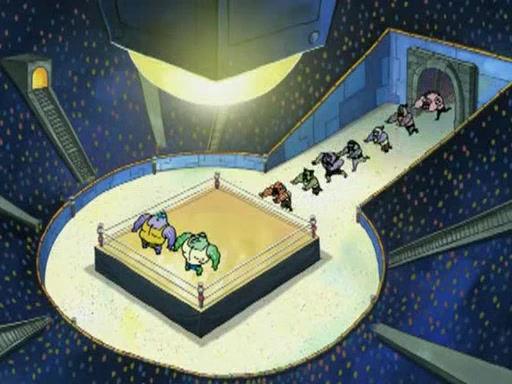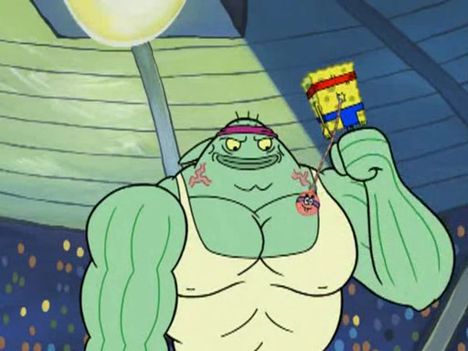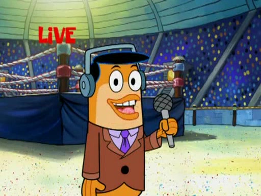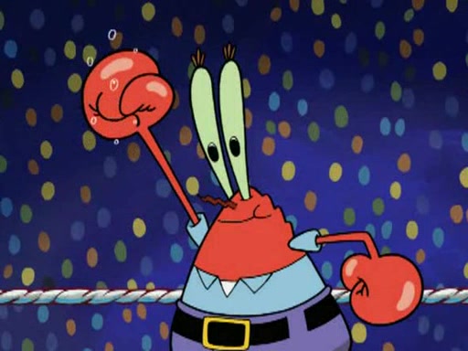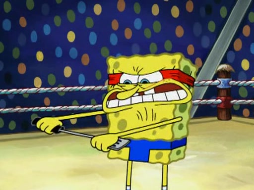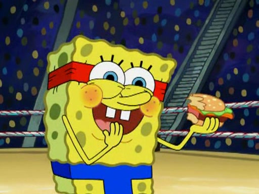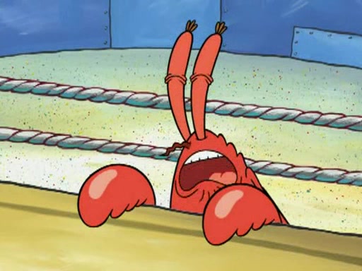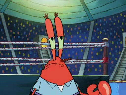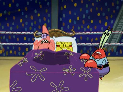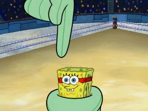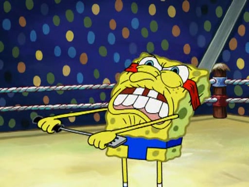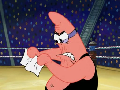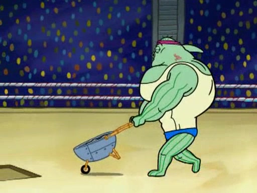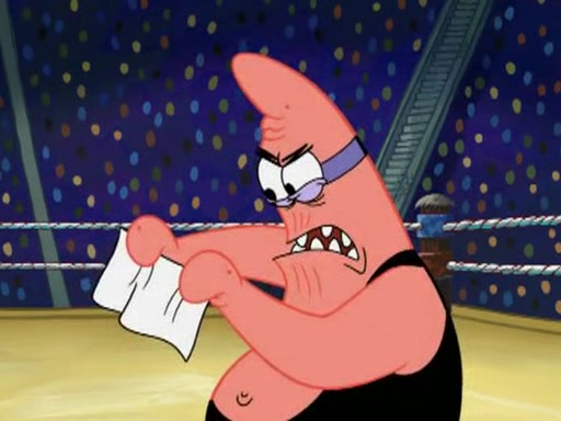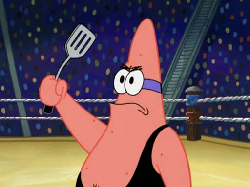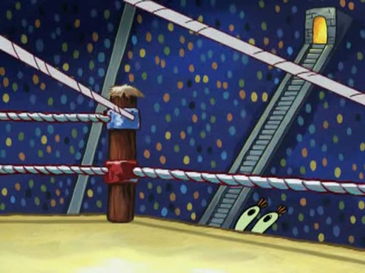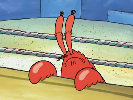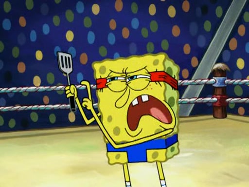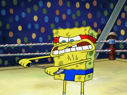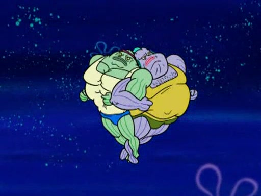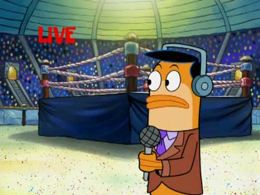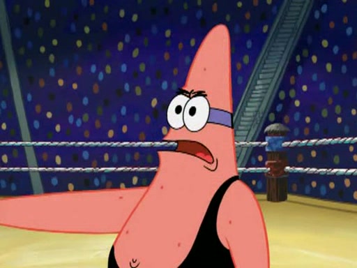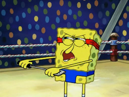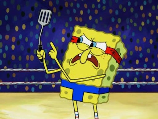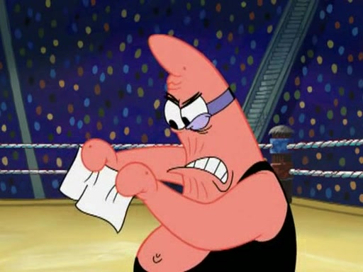 SpongeBob and Patrick are announced to be the "fresh meat" of the champions. They get almost killed in every which way by their opponents (which includes being liquefied and thrown repeatedly). SpongeBob and Patrick soon fall asleep and (while they are unconscious) the opponents decide to kill them with their deadly finishing move. Mr. Krabs is scared that they will die and he won't get the million clams. At the last minute, SpongeBob and Patrick end up winning, thanks to Patrick's "Iron Buns" (which crack the champions into pieces).