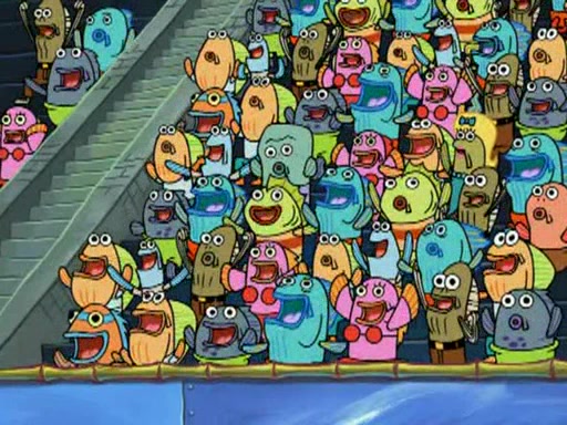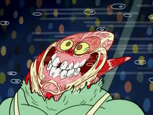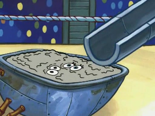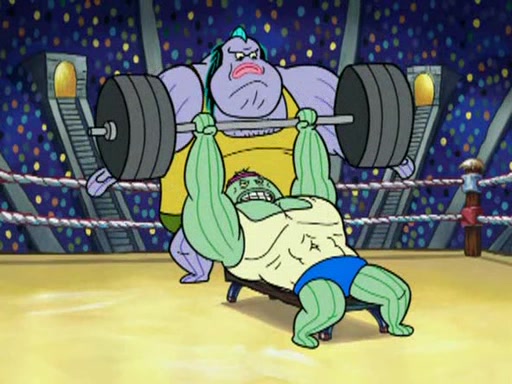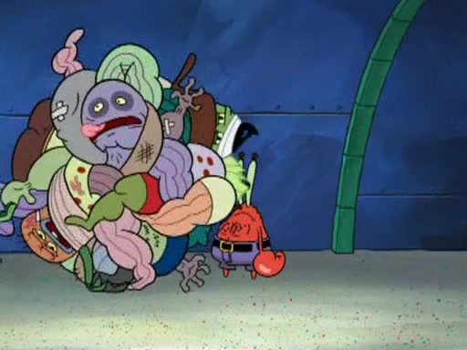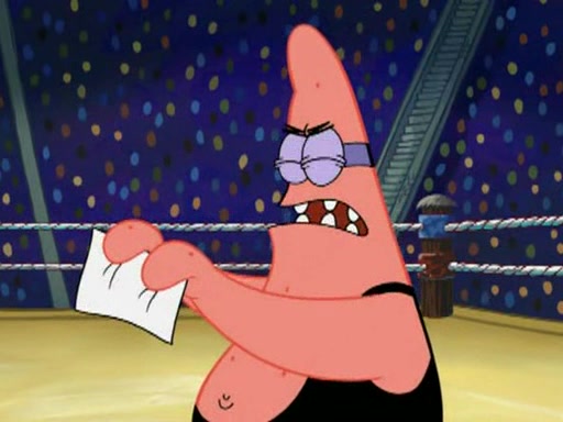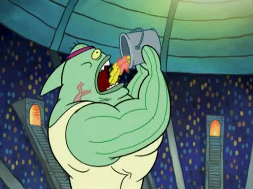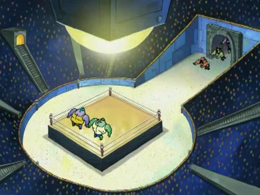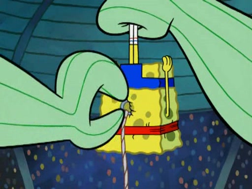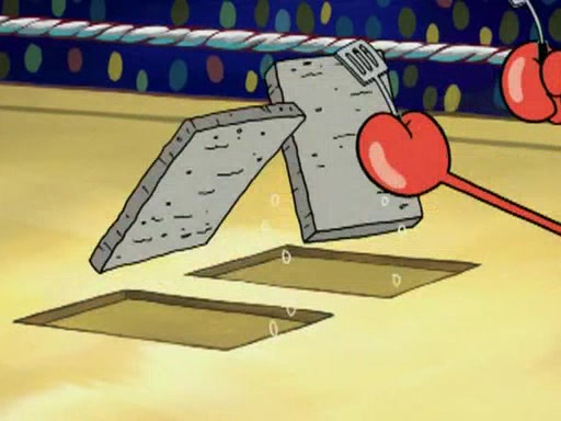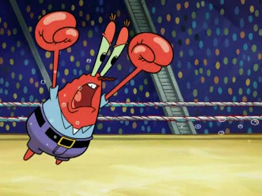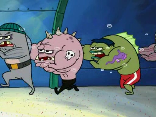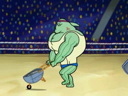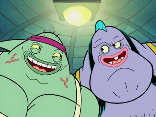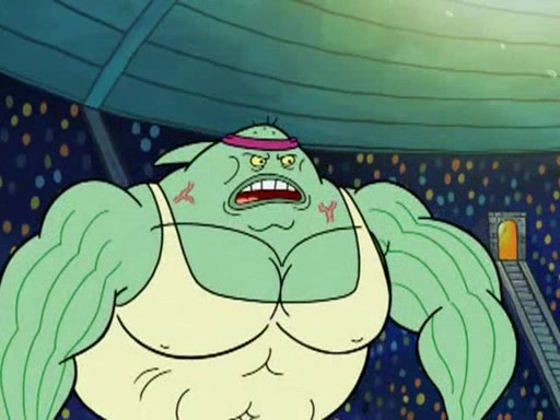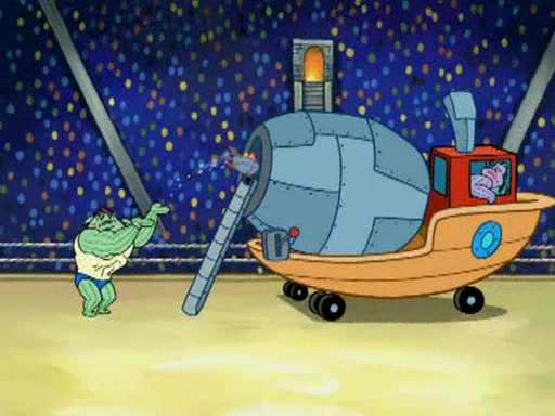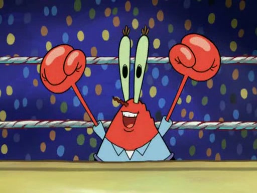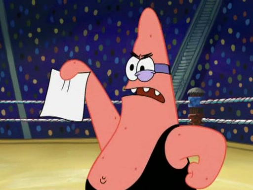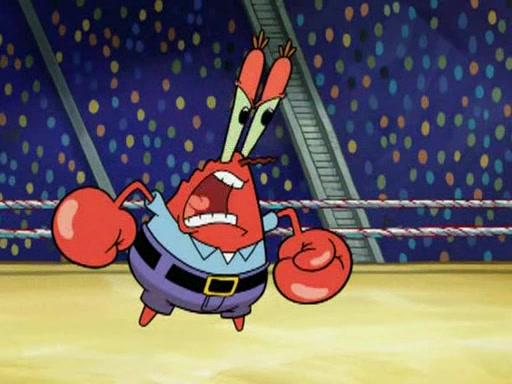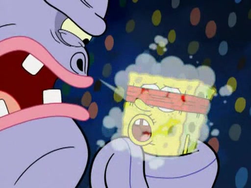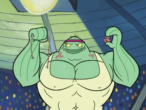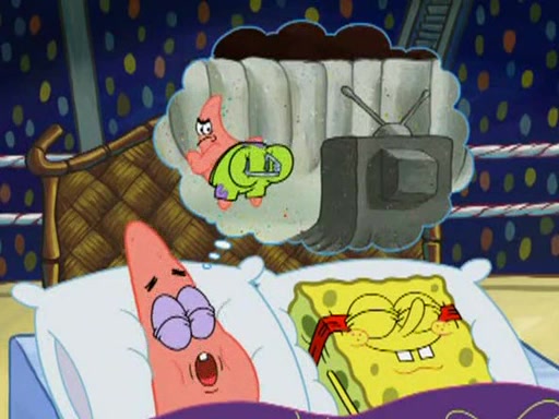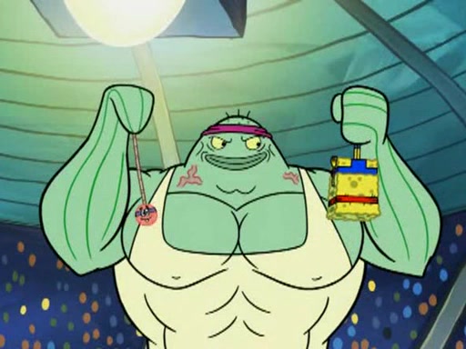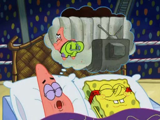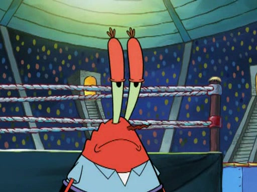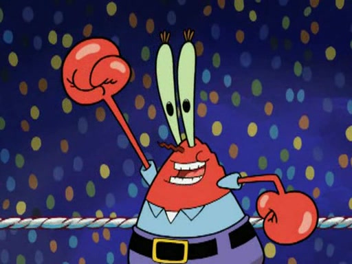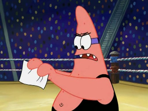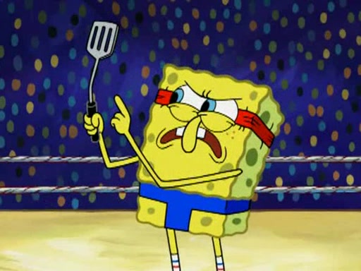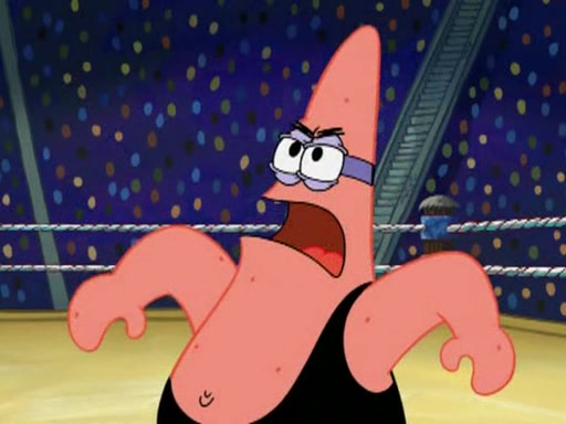 SpongeBob and Patrick are announced to be the "fresh meat" of the champions. They get almost killed in every which way by their opponents (which includes being liquefied and thrown repeatedly). SpongeBob and Patrick soon fall asleep and (while they are unconscious) the opponents decide to kill them with their deadly finishing move. Mr. Krabs is scared that they will die and he won't get the million clams. At the last minute, SpongeBob and Patrick end up winning, thanks to Patrick's "Iron Buns" (which crack the champions into pieces).