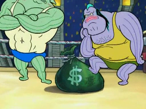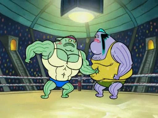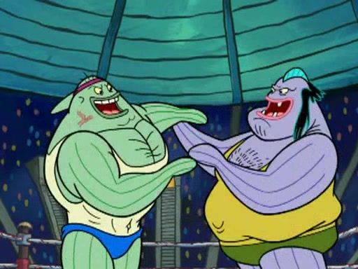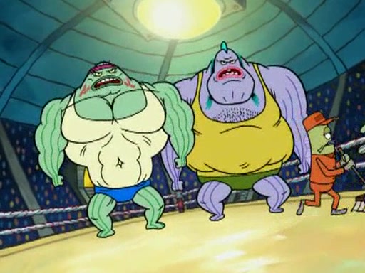 This episode starts when a wrestling tournament is being held in Bikini Bottom. Perch Perkins announces that the prize is one million dollars. Mr. Krabs overhears this and is very excited to get the money (which he implies is going to be easy). Mr. Krabs runs to the back of the line to defeat the two huge and strong fish known as the "undefeated world heavyweight champions." When he sees how badly people are getting hurt from trying to beat the champions, he has second thoughts on entering this wrestling tournament. He then has an idea of making SpongeBob and Patrick beat them.