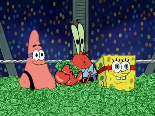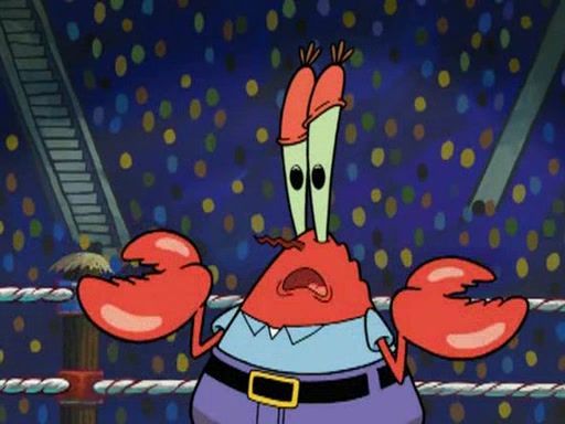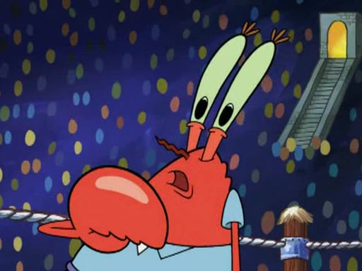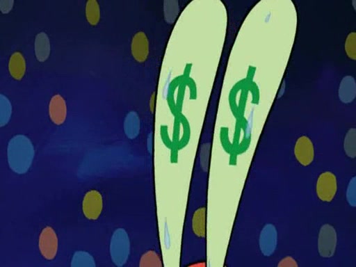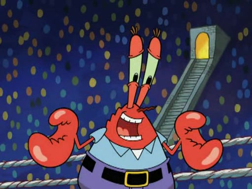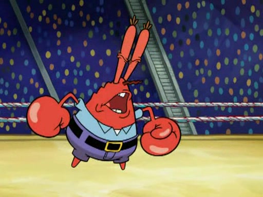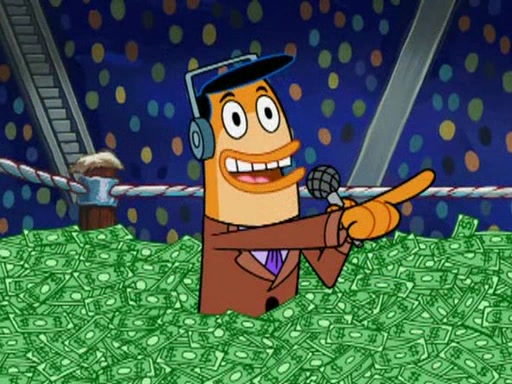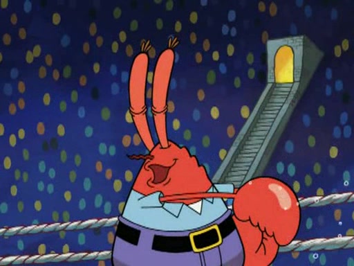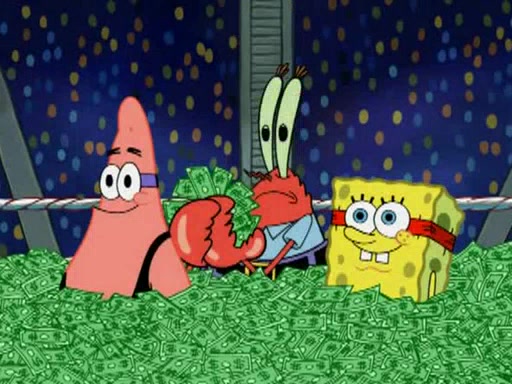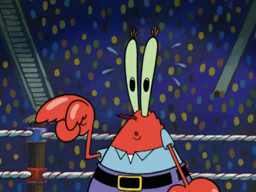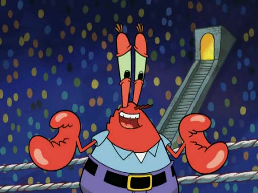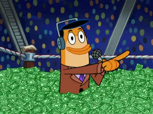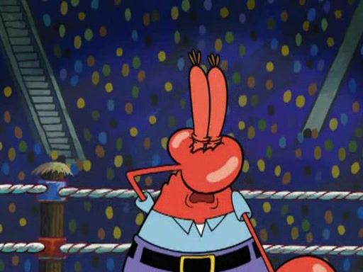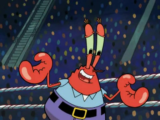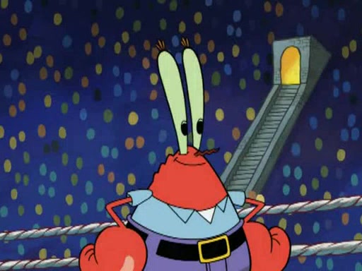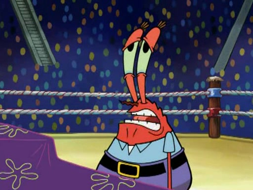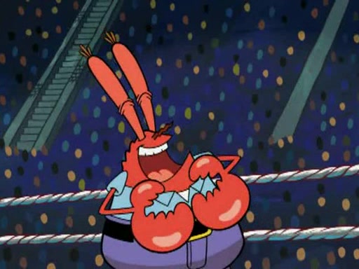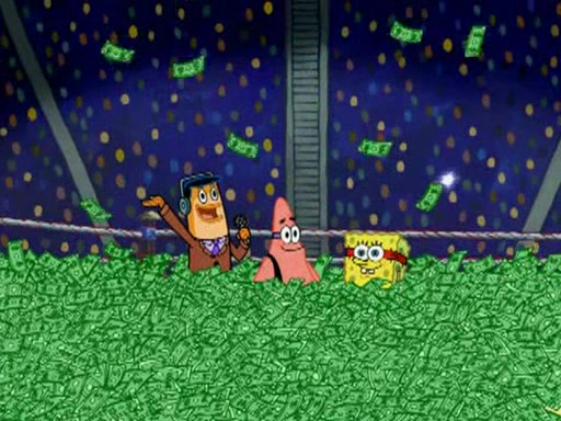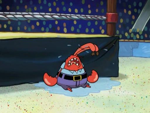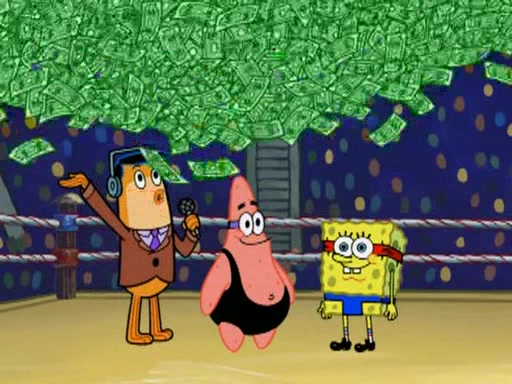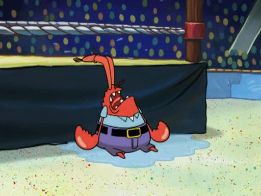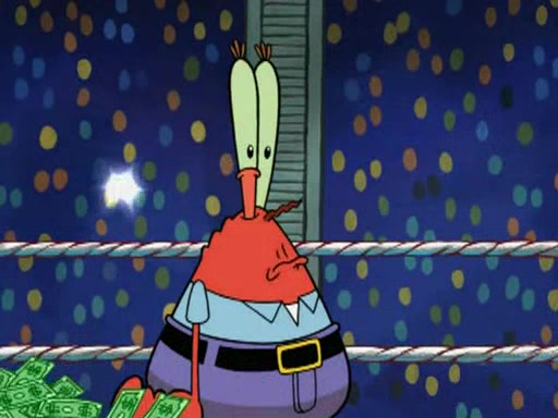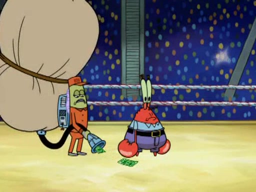 Mr. Krabs is very excited, thinking the money is his but, there was another prize which was Wrestling camp, only to find, to his dismay, SpongeBob and Patrick choose to go to the wrestling camp instead. As a man uses a vacuum to suck all of the money away from Mr. Krabs, he turns into pieces as SpongeBob places the wrestling camp hat on him.