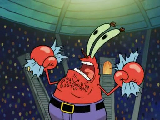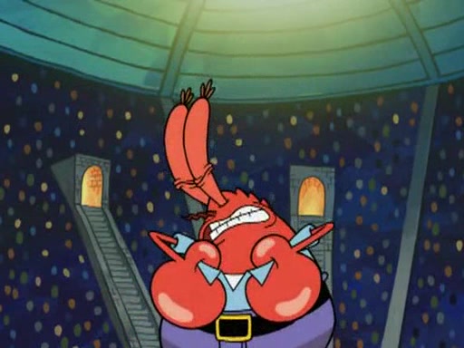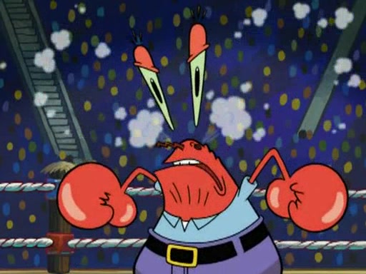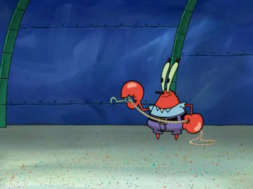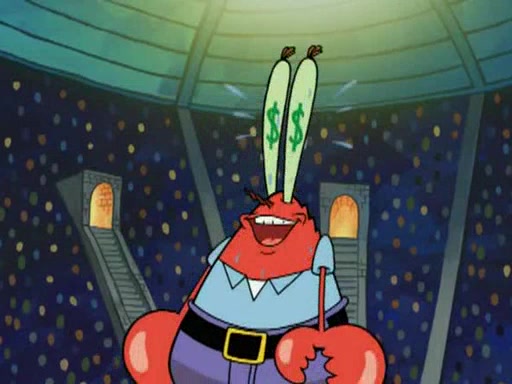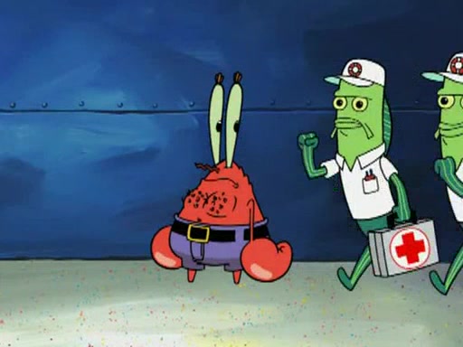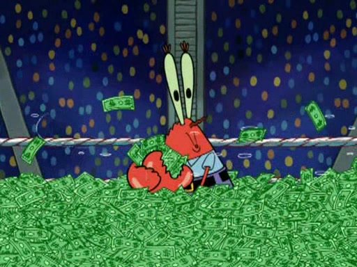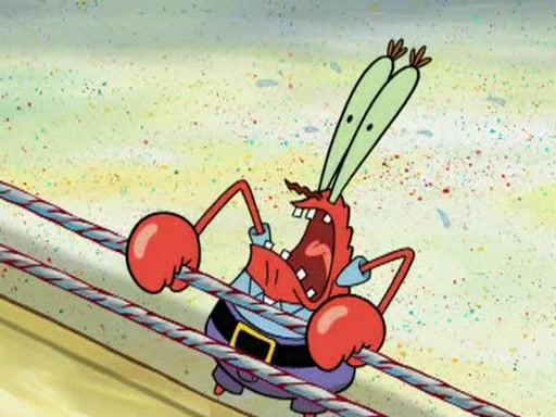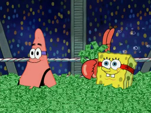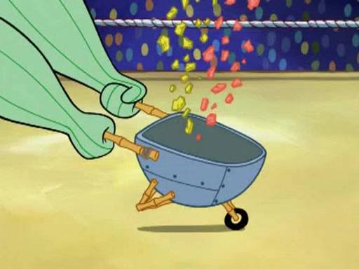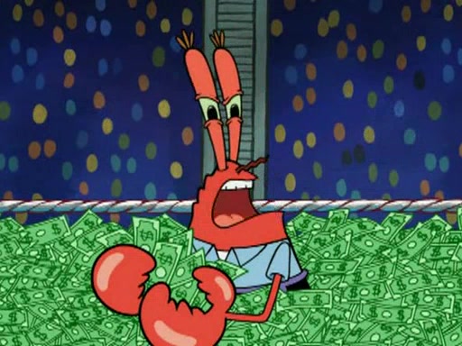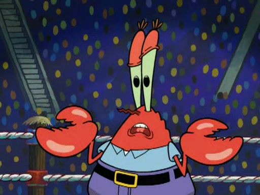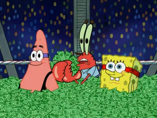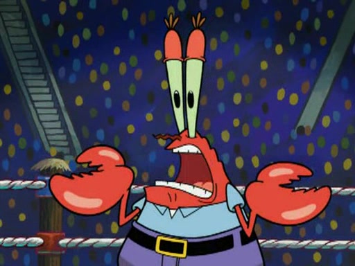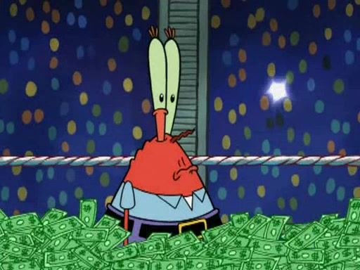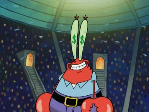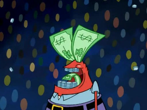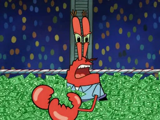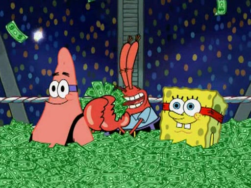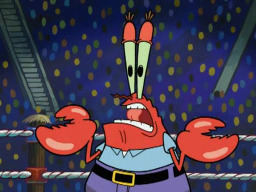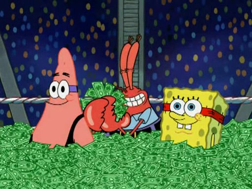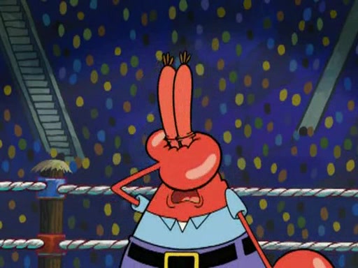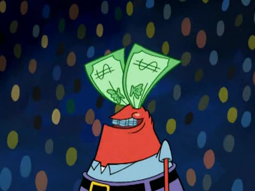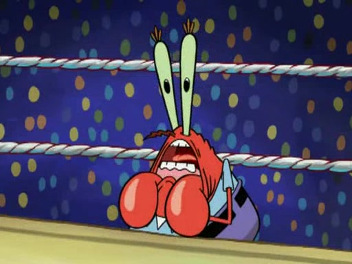 Mr. Krabs is very excited, thinking the money is his but, there was another prize which was Wrestling camp, only to find, to his dismay, SpongeBob and Patrick choose to go to the wrestling camp instead. As a man uses a vacuum to suck all of the money away from Mr. Krabs, he turns into pieces as SpongeBob places the wrestling camp hat on him.