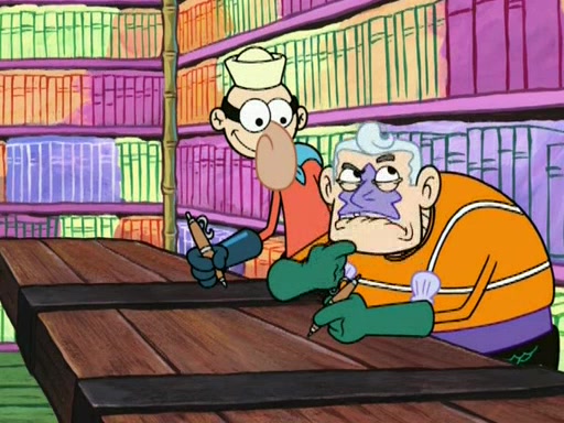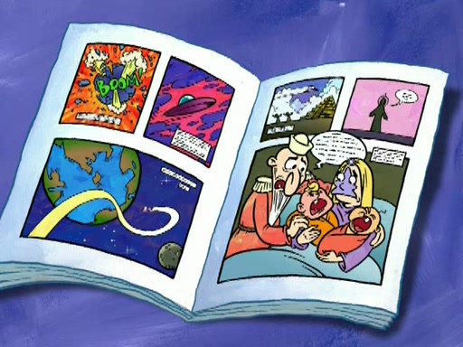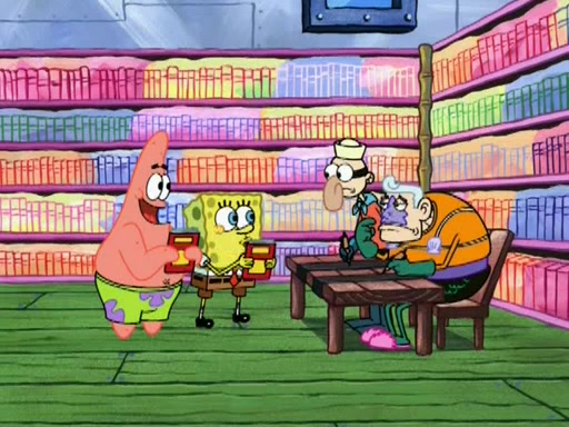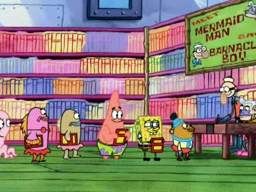 After watching an episode of Mermaid Man and Barnacle Boy, SpongeBob and Patrick see a commercial for the new book telling their origin and that they will be signing the book starting at 8 o'clock. SpongeBob is unhappy due to the fact that he has to go to boating school. Patrick suggests calling in sick, but SpongeBob doesn't want his perfect attendance record to end. They concoct a plan that SpongeBob will pretend to go to the bathroom but will sneak to the comic book store.